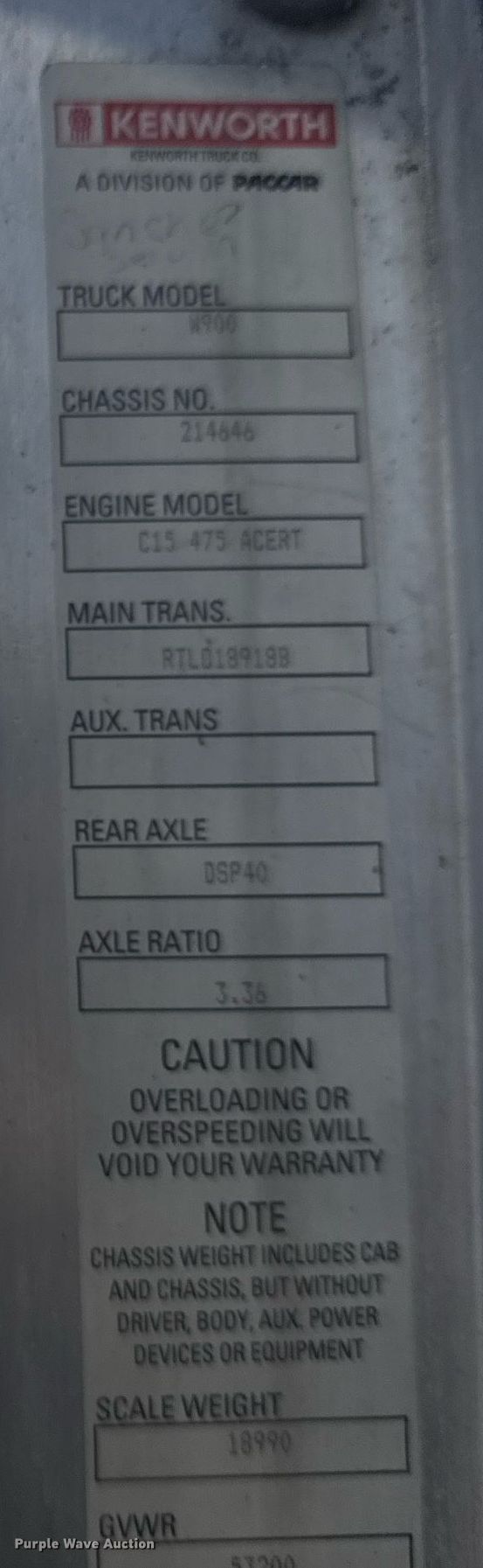 Purple Wave is selling a used Truck Tractor in Oklahoma. This item is a 2007 Kenworth W900 semi truck with the following: Miles: 1,674,069 on odometer, Hours: 54,840 on meter, VIN: 1XKWDB9X57J214646
