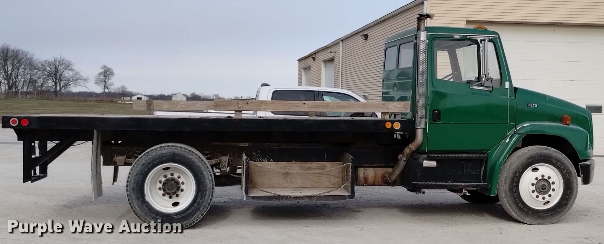 Purple Wave is selling a used Flat Bed Truck in Indiana. This item is a 1993 Freightliner FL70 dump flatbed truck with the following: Miles: 15,325 on odometer, VIN: 1FV6HFAA2PL481721, Unit #: 100116