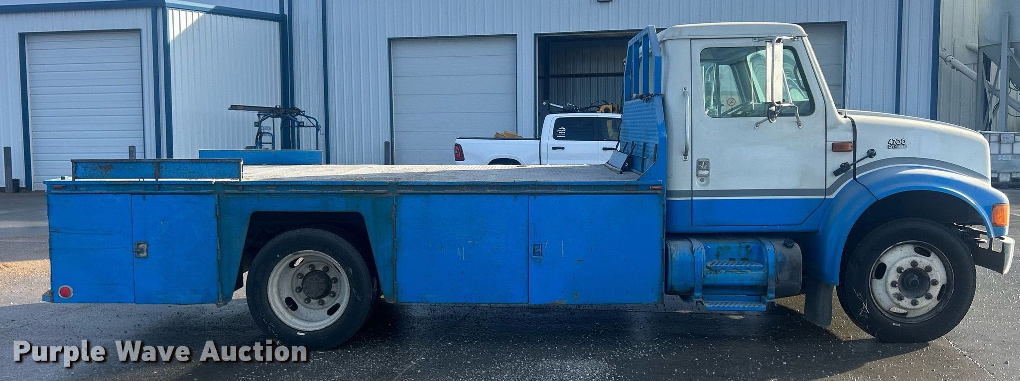 This 2001 International 4700 flatbed truck will sell to the highest bidder regardless of price.