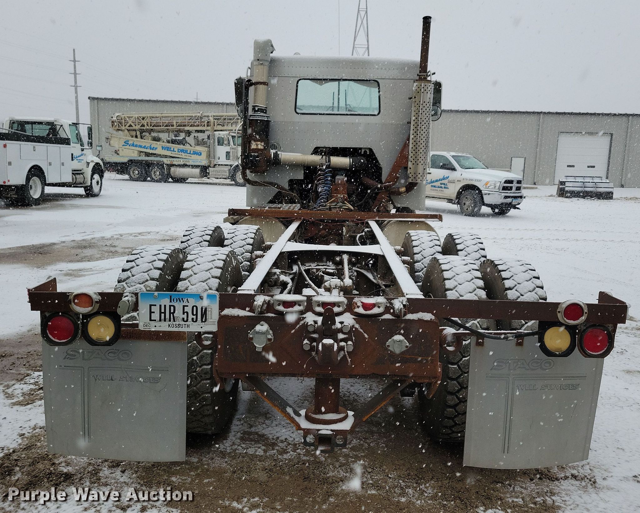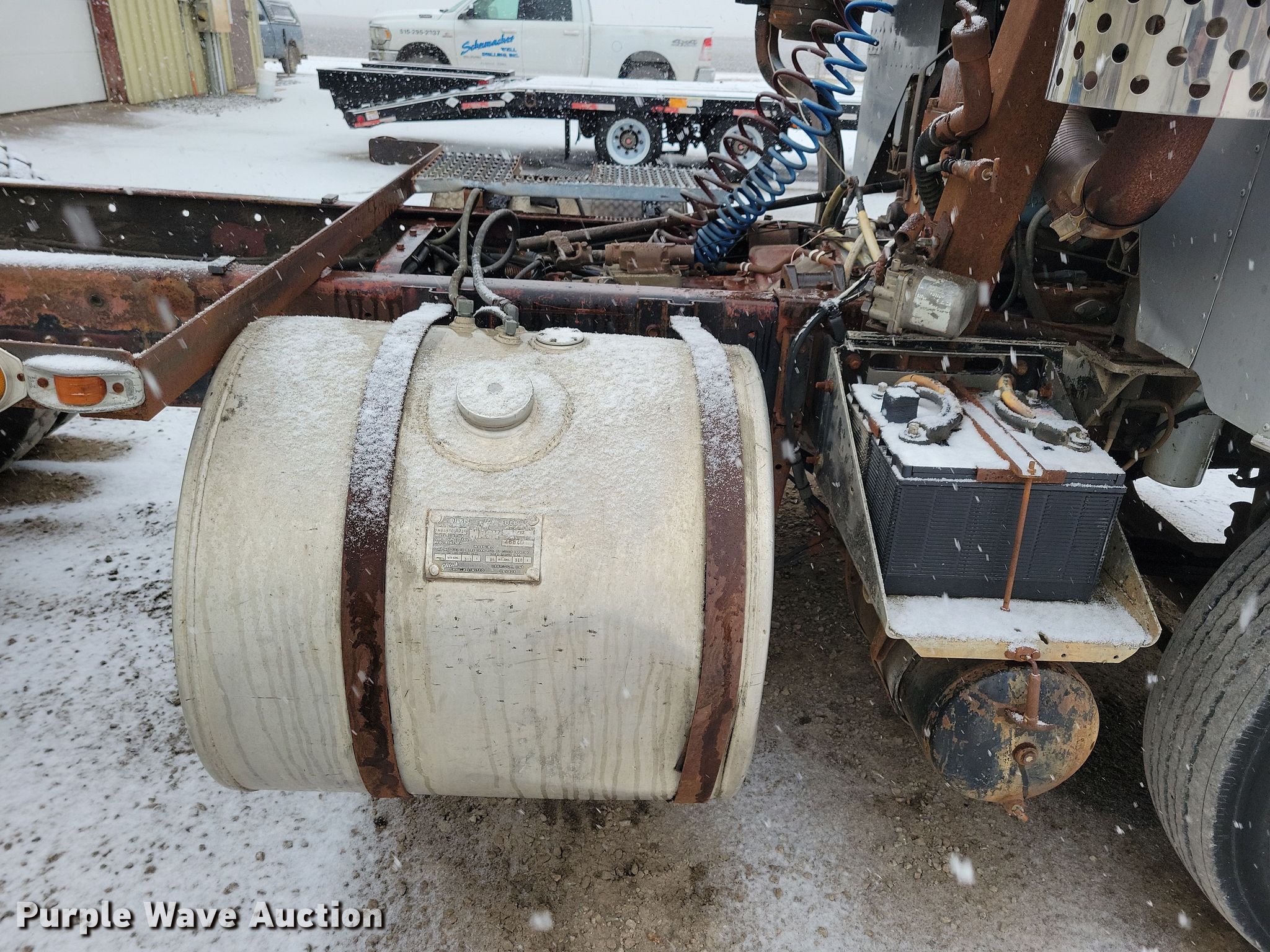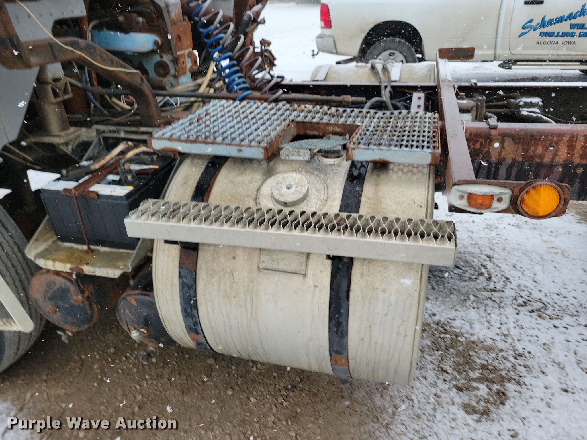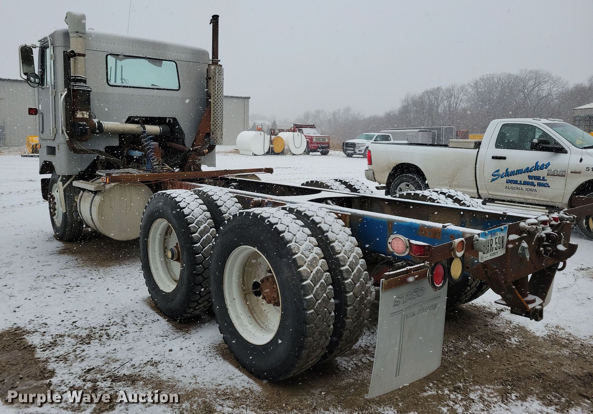 1983 Mack WS700 Cruise-Liner semi truck. Miles: 82,367 on odometer Actual mileage unknown, Hours: 3,802 on meter Actual hours unknown, VIN: 1M2Y209C1DM002182. Engine Displacement: 11.0L, Cylinders: 6, Fuel type: Diesel. Transmission Manual, Speed: 5, plus 2. Chassis Axles: Tandem, Suspension: Spring, Brakes: Air, Truck chassis: 18' 5". Interior Heat. Features Fuel tank: Dual. Tires Size: Same. Notes Possible bad starter solenoid, Unknown operating condition cab jack. Iowa title. Title distribution may be delayed up to 14 days from verification of funds. Schumacher Well Drilling. Algona, IA 50511