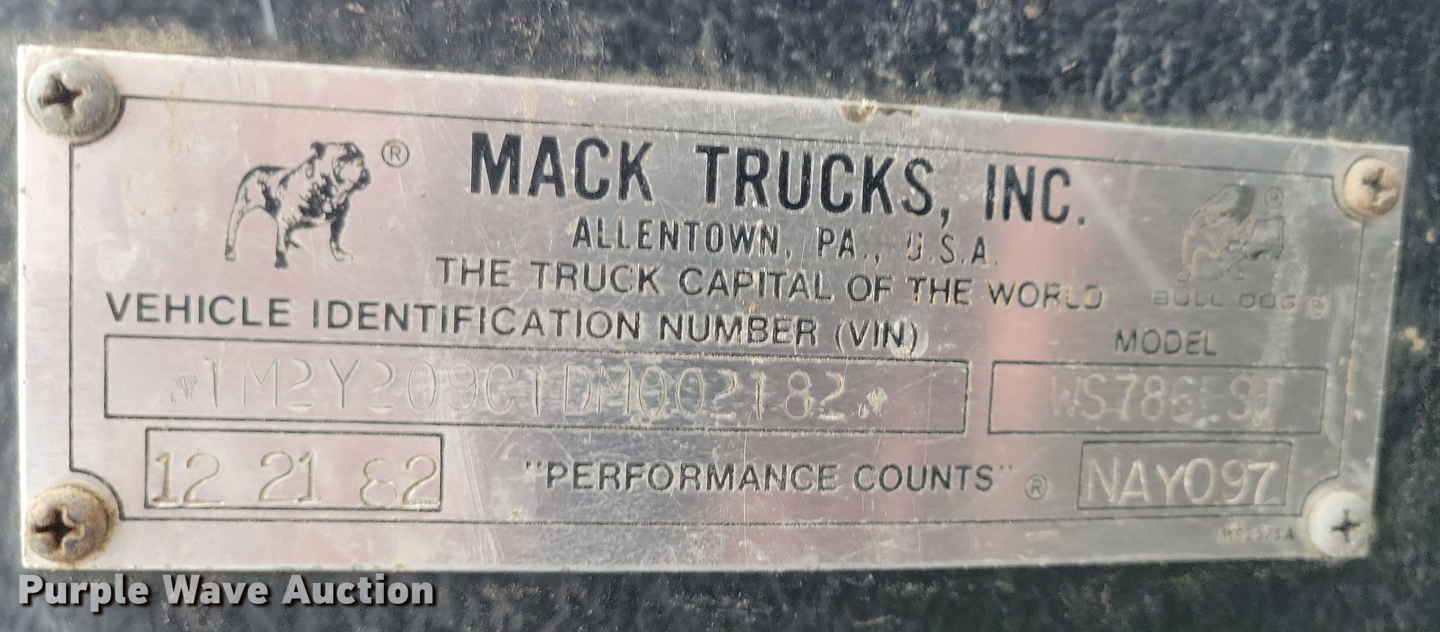 Purple Wave is selling a used Truck Tractor in Iowa. This item is a 1983 Mack WS700 Cruise-Liner semi truck with the following: Miles: 82,367 on odometer, Actual mileage unknown, Hours: 3,802 on meter, Actual hours unknown, VIN: 1M2Y209C1DM002182