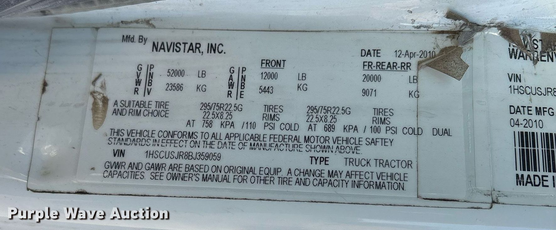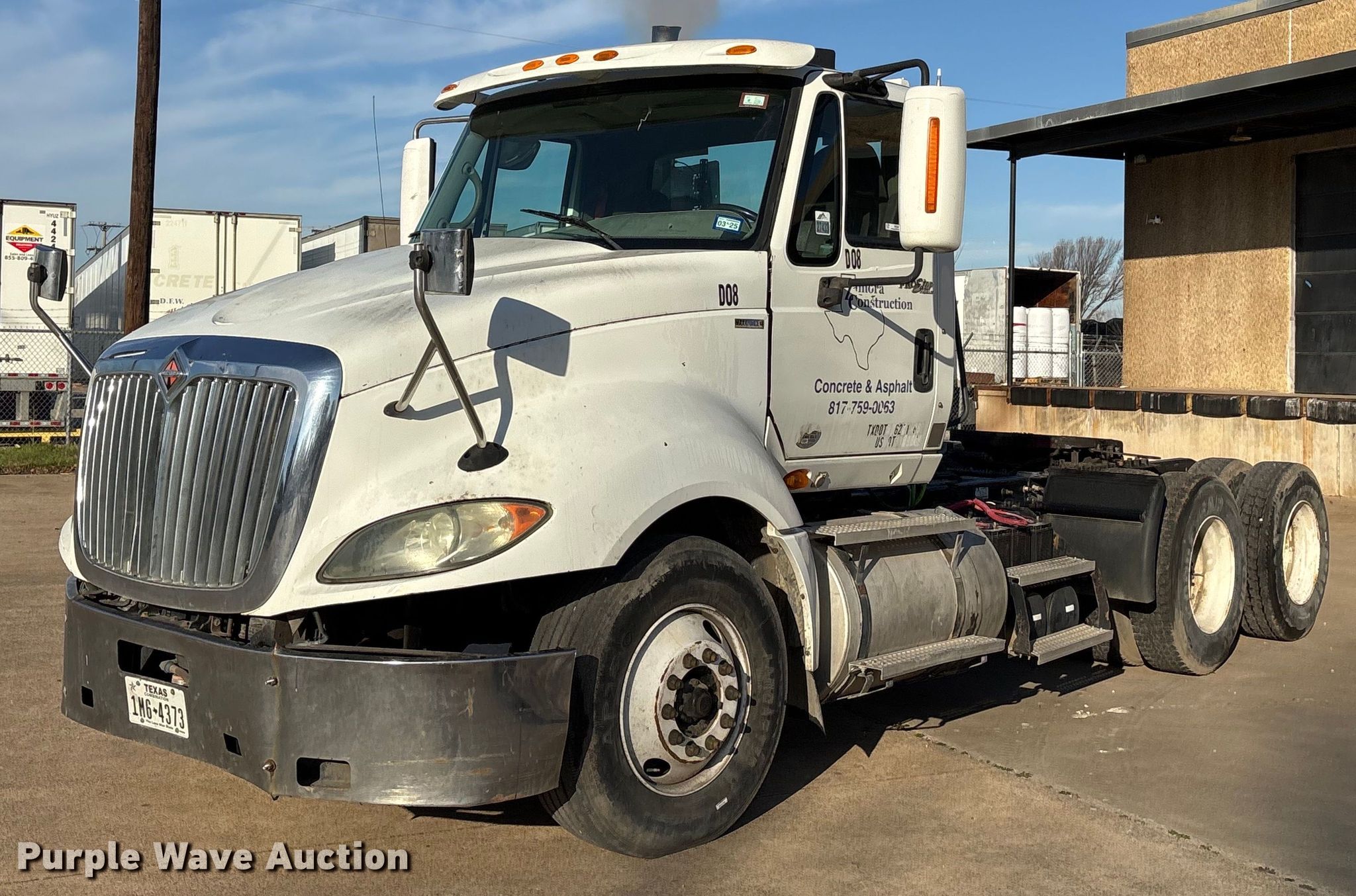 Purple Wave is selling a used Truck Tractor in Texas. This item is a 2011 International ProStar semi truck with the following: Miles: 458,833 on odometer, Hours: 15,495 on meter, Miles or hours may vary, unit still in use, VIN: 1HSCUSJR8BJ359059, Unit #: D08