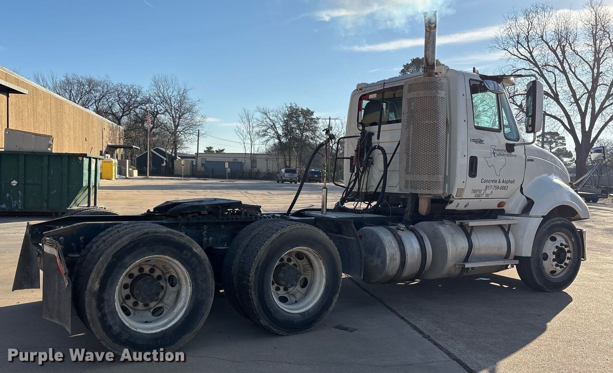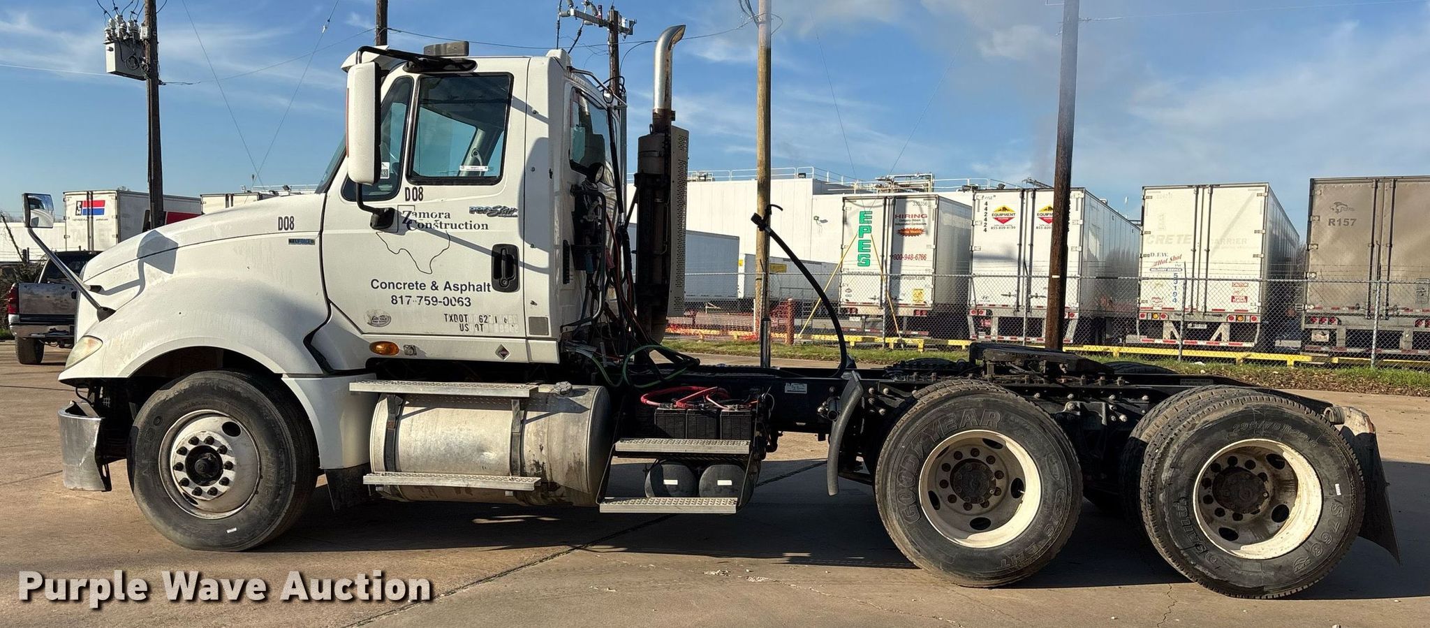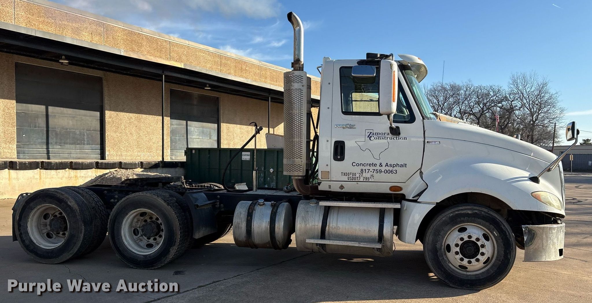 2011 International ProStar semi truck. Miles: 458,833 on odometer, Hours: 15,495 on meter, Miles or hours may vary, unit still in use, VIN: 1HSCUSJR8BJ359059, Unit #: D08. Engine International, Displacement: 12.4L, Cylinders: 6, Fuel type: Diesel, Engine brake. Transmission Eaton Fuller, Manual, Speed: 10. Chassis Axles: Tandem, Differential lock: Inter-axle, Suspension: Air Dump valves, Brakes: Air, PTO, Wet kit, GVWR: 52,000 lbs FAWR: 12,000 lbs, IAWR: 20,000 lbs, RAWR: 20,000 lbs. Interior AC, Heat, Heated mirrors, Power windows, Power locks, Cruise control, Air ride cab. Features Deck plate: Aluminum, Fifth wheel type: Air operated, Sliding, Fuel tank: Dual. Tires Size: 295/75R22.5. Notes Dash warning indicator: ABS, Electrical fault, Windshield chipped or cracked. Texas title. Title distribution may be delayed up to 14 days from verification of funds. ZAMORA CONSTRUCTION LLC. Fort Worth, TX 76111