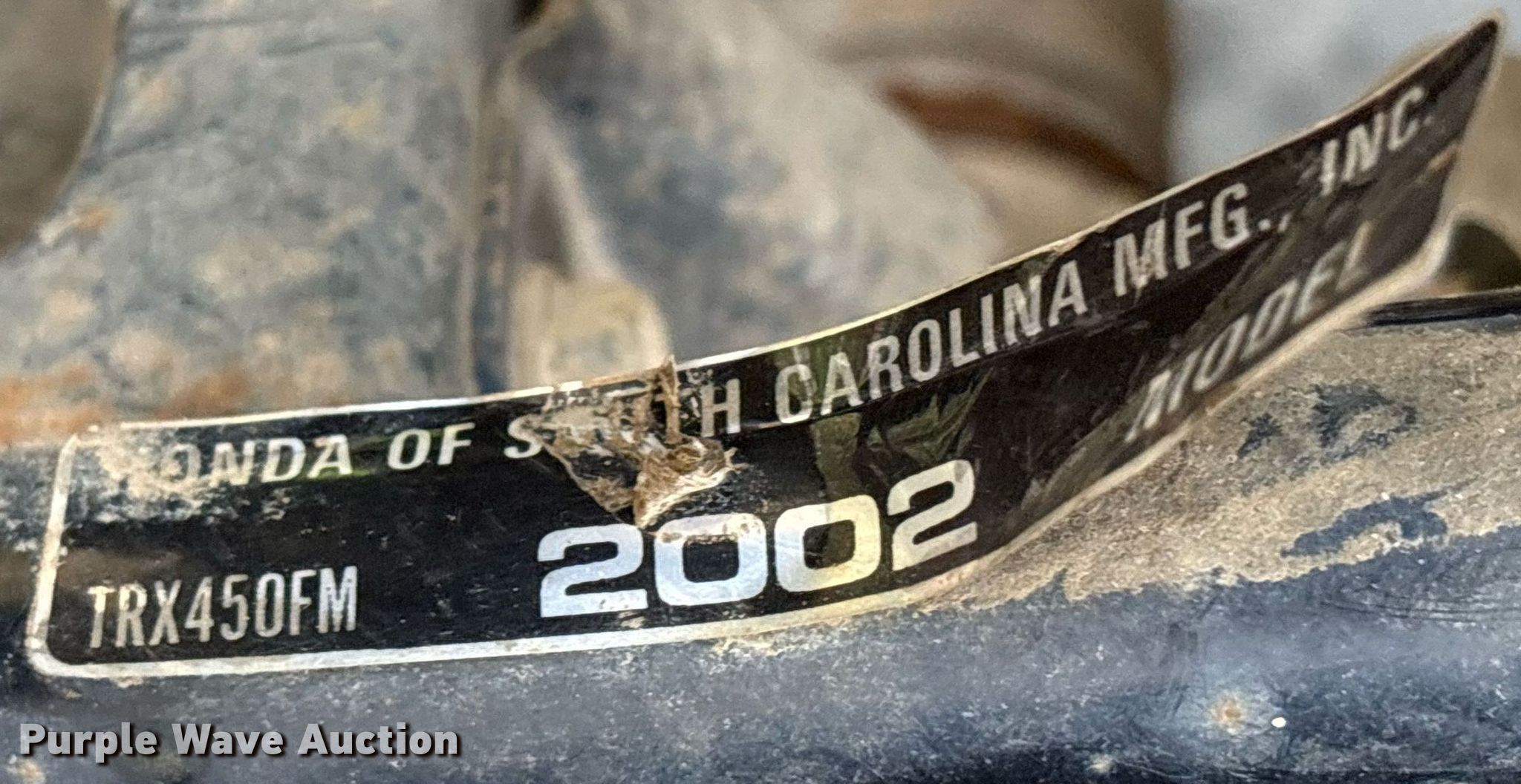 Purple Wave is selling a used ATV in Oklahoma. This item is a 2002 Honda TRX450FM ATV with the following: Miles: 602 on odometer, VIN: 478TE220924306156