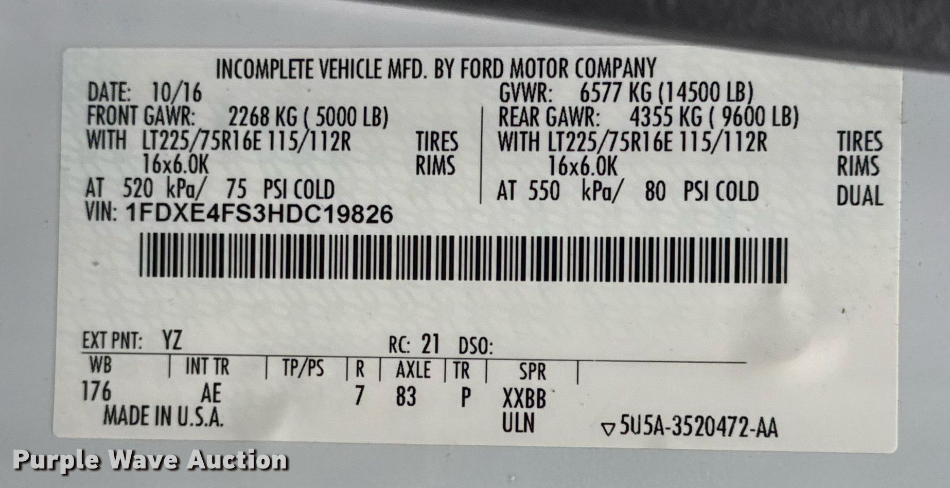 - VIN: 1FDXE4FS3HDC19826
