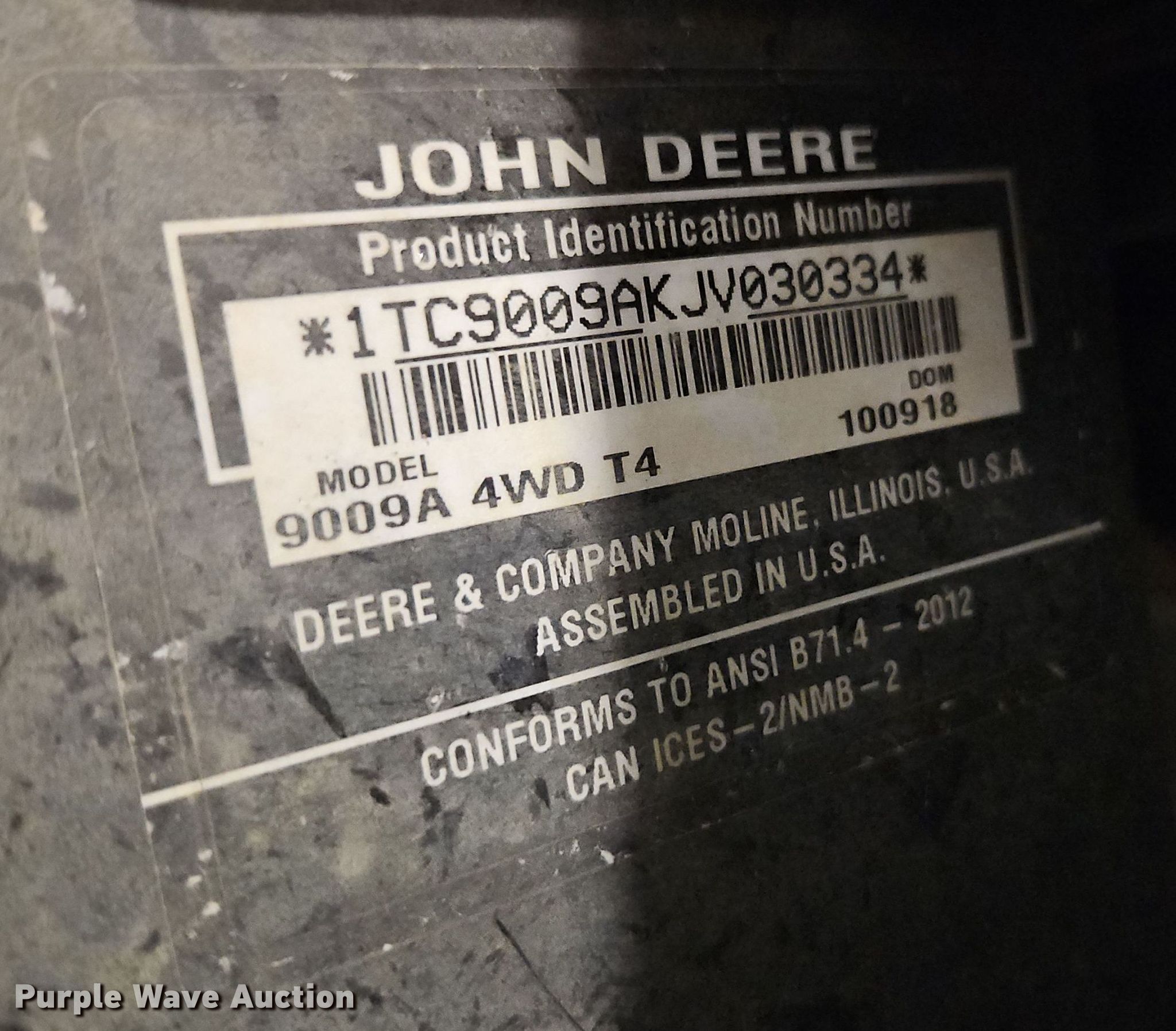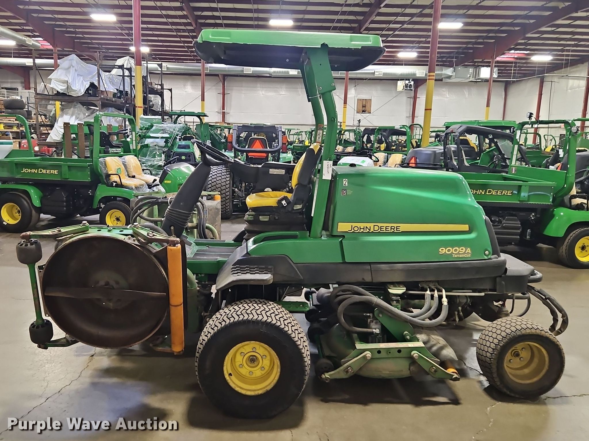 Purple Wave is selling a used Commercial Turf Mower in Kansas. This item is a John Deere 9009A Terrain Cut ZTR lawn mower with the following: Hours: 2,491 on meter, Cutting width: 108", Serial: 1TC9009AKJV030334