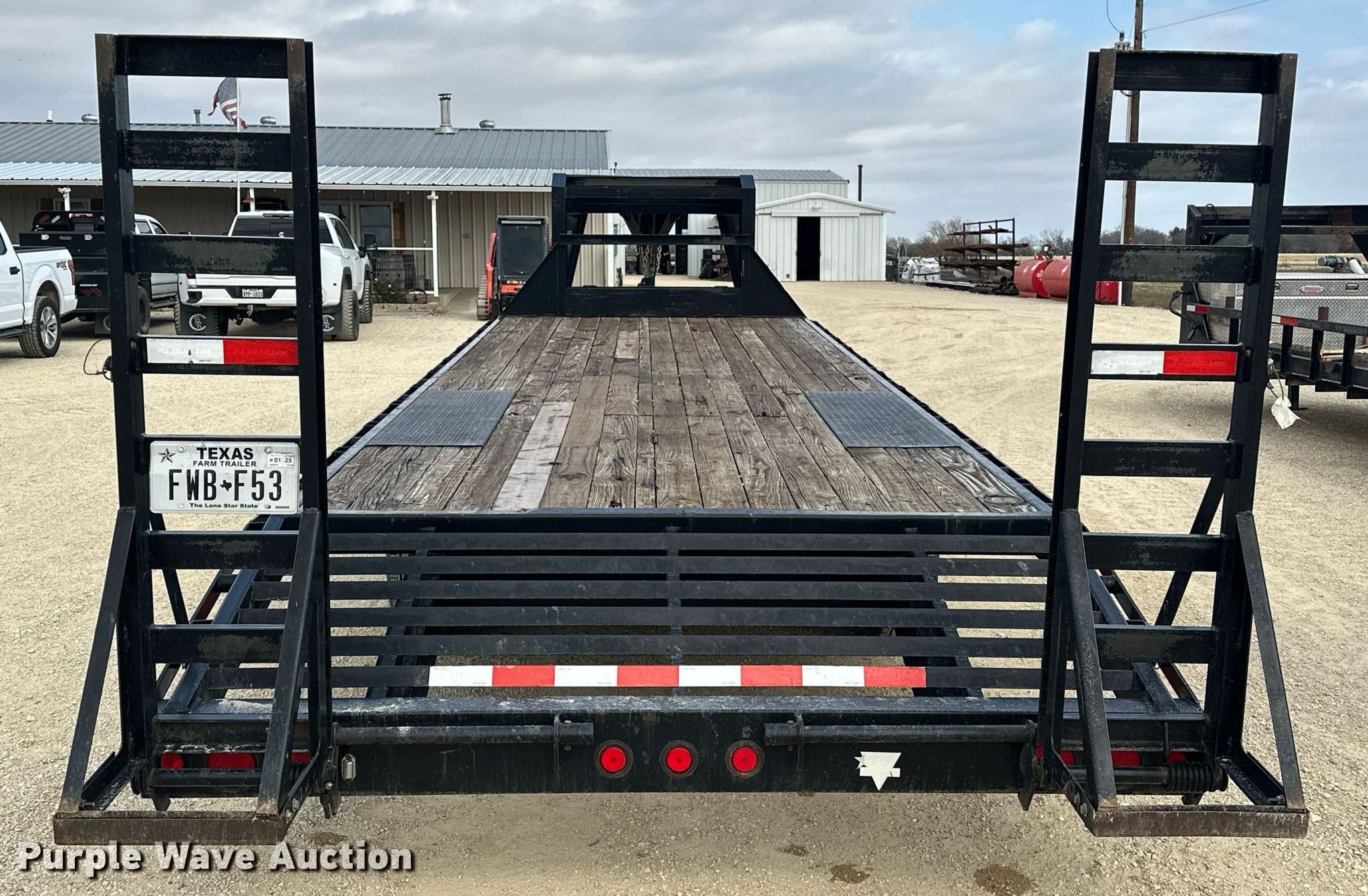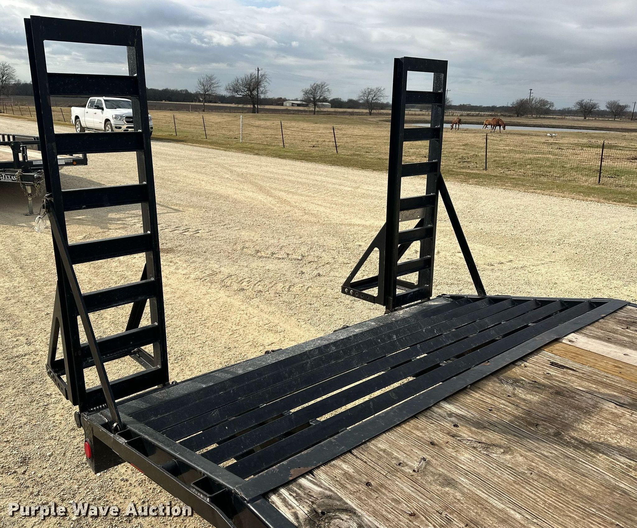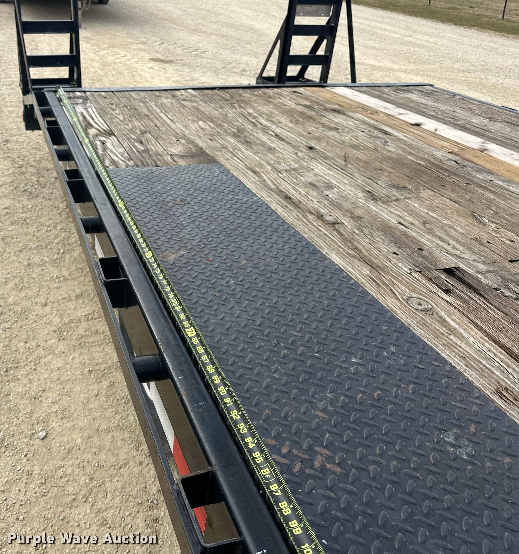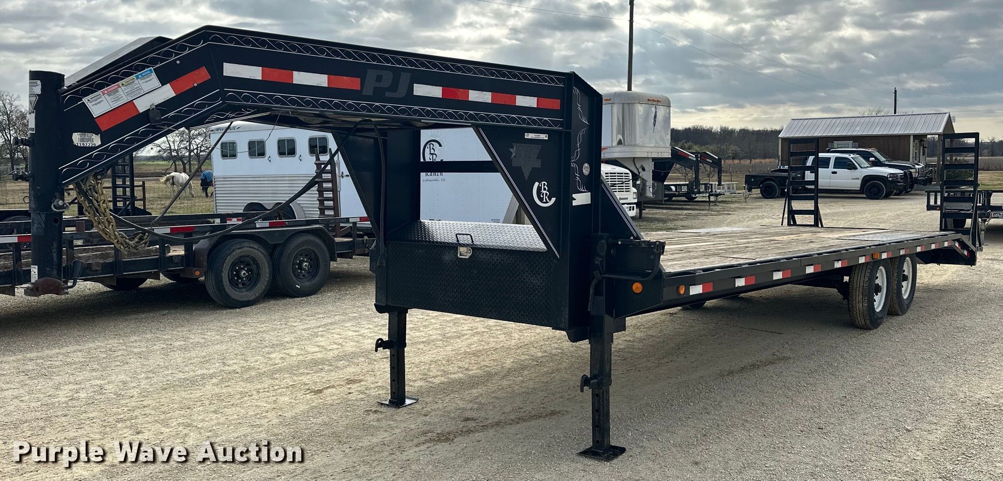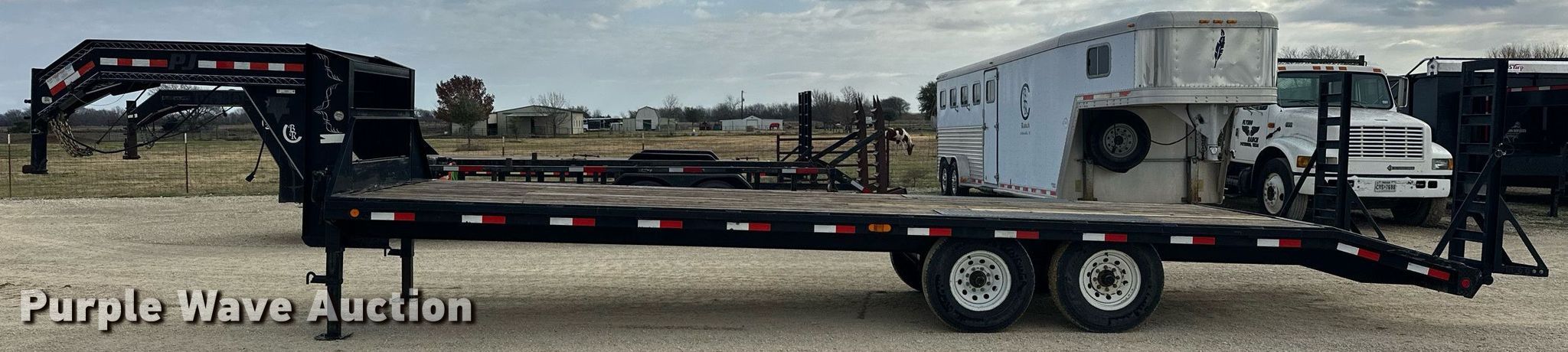 2013 PJ equipment trailer. VIN: 4P5F82626D1192229. Dimensions Overall: 35' L x 96" W, Deck: 23' L x 91" W, Tail length: 40", Ramps: Manual Length: 5'. Features Deck type: Steel. Chassis Hitch: Gooseneck, Landing gear: Dual, Suspension: Spring, Brakes: Electric, Axles: Tandem, GVWR: 15,680 lbs, GAWR: 7,000 lbs. Tires Steel wheels, Size: ST235/85R16. Texas title. Title distribution may be delayed up to 30 days from verification of funds. Billy Self. Collinsville, TX 76233