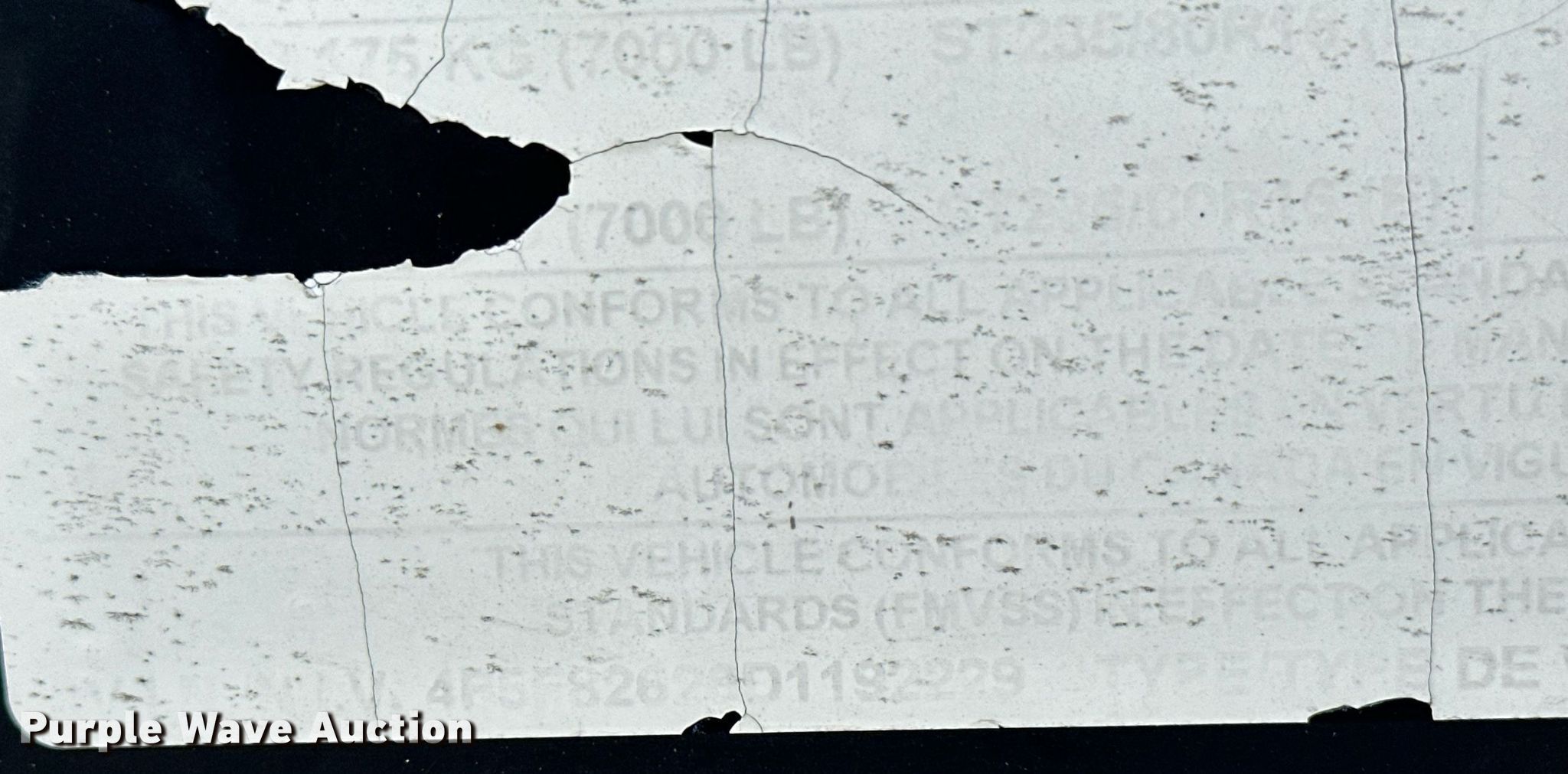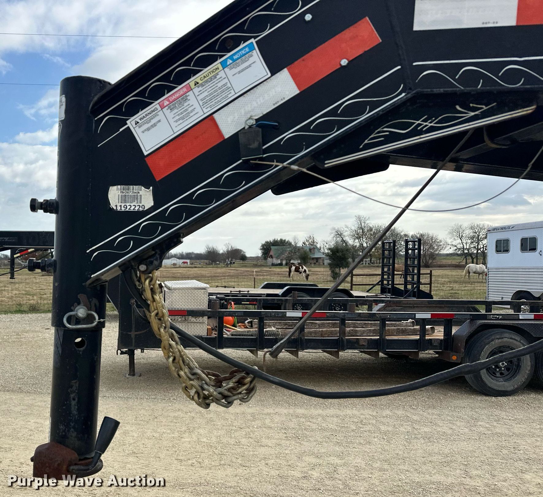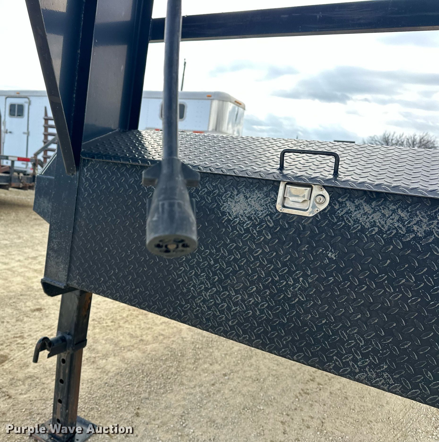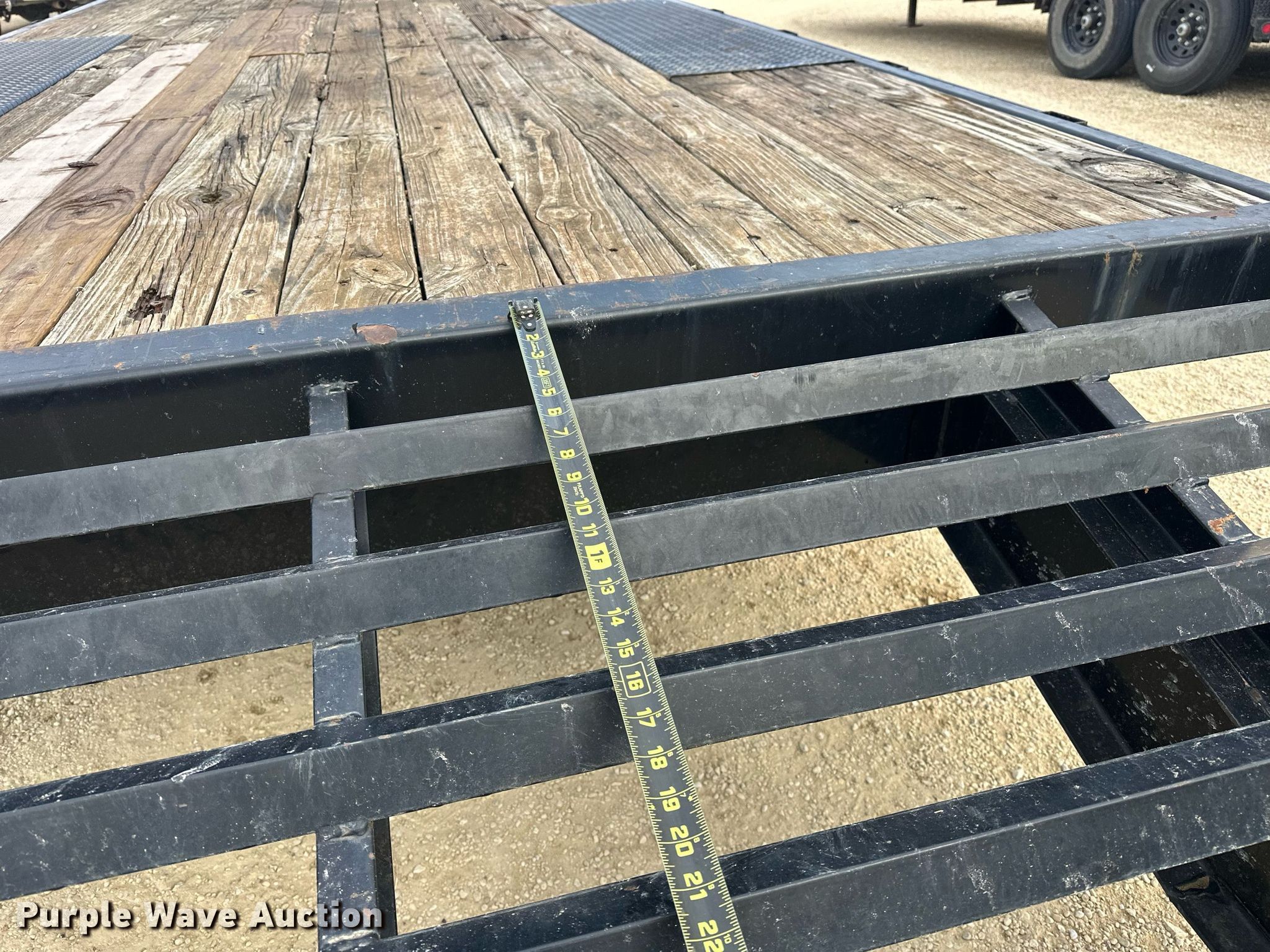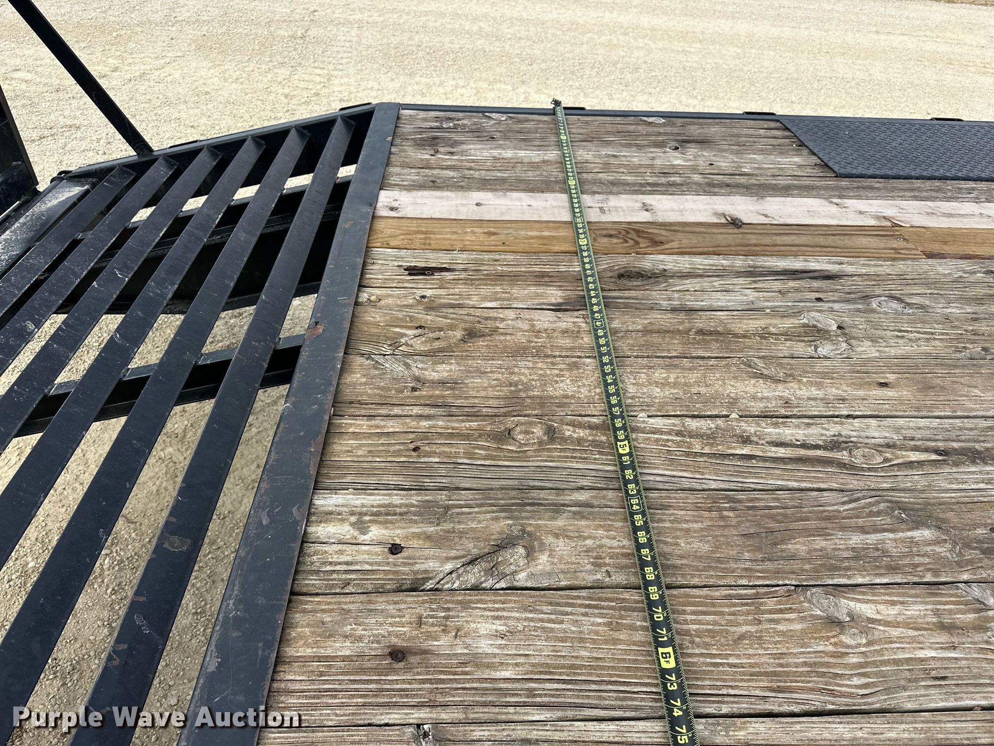 2013 PJ equipment trailer. VIN: 4P5F82626D1192229. Dimensions Overall: 35' L x 96" W, Deck: 23' L x 91" W, Tail length: 40", Ramps: Manual Length: 5'. Features Deck type: Steel. Chassis Hitch: Gooseneck, Landing gear: Dual, Suspension: Spring, Brakes: Electric, Axles: Tandem, GVWR: 15,680 lbs, GAWR: 7,000 lbs. Tires Steel wheels, Size: ST235/85R16. Texas title. Title distribution may be delayed up to 30 days from verification of funds. Billy Self. Collinsville, TX 76233