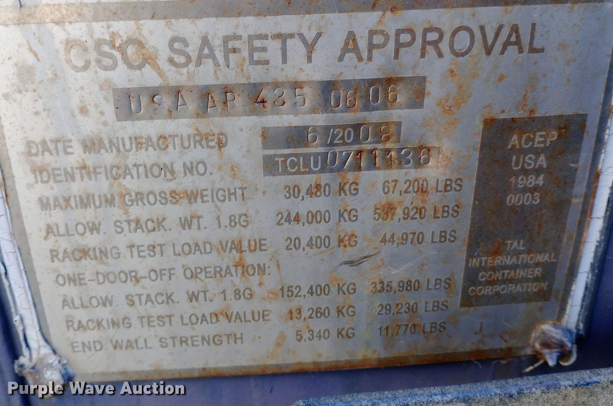 Purple Wave is selling a used Storage or Shipping Container in Kansas. This item is a Shipping container with the following: 20' L x 96" W x 103" H