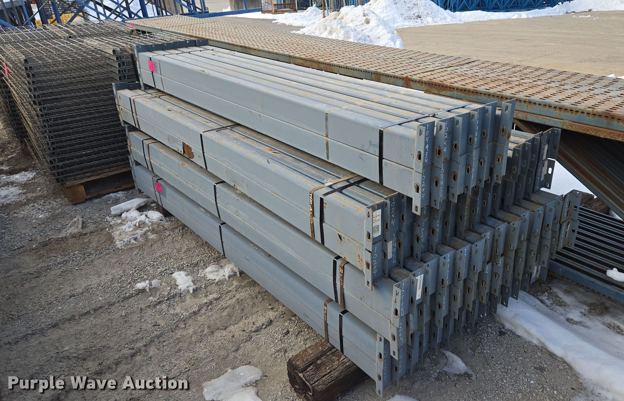 Purple Wave is selling a used Pallet Racking in Missouri. This item is a T-Bolt pallet racking with the following: Unit #: 868851, (10) 336" x 36" uprights, (96) 102" x 4" beams, (80) 54" x 36" wire decks
