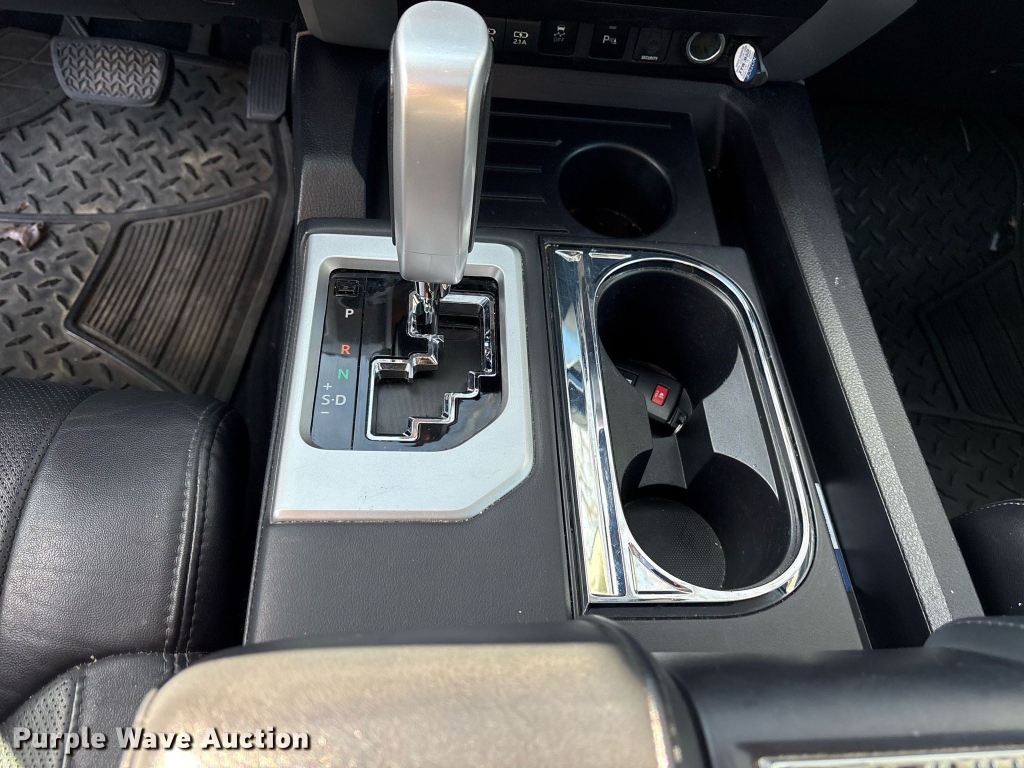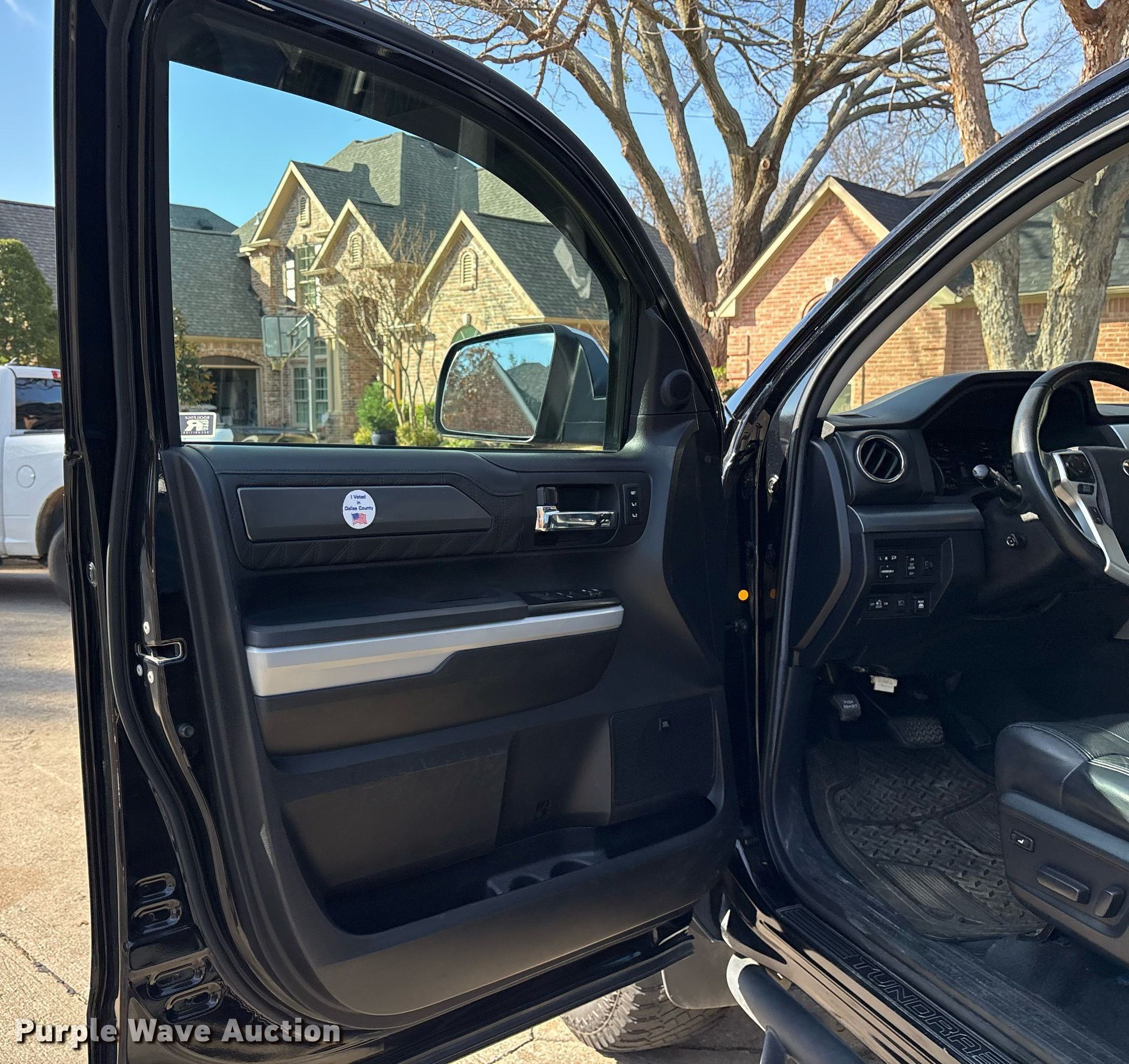 2021 Toyota Tundra Platinum CrewMax pickup truck. Miles: 89,601 on odometer, Miles or hours may vary, unit still in use, VIN: 5TFAY5F15MX992935. Engine Displacement: 5.7L V8 DOHC, Cylinders: 8, Fuel type: Gas. Transmission Automatic, Four wheel drive. Interior AC, Heat, Seat: Heated, Cooled, Power driver, Power passenger, Heated mirrors, Power windows, Power locks, Cruise control, Backup camera, Powered sunroof. Tires Size: LT295/70R18, Size: 35x12.5R18. Texas rebuilt salvage title. Title distribution may be delayed up to 14 days from verification of funds. Coppell, TX 75019