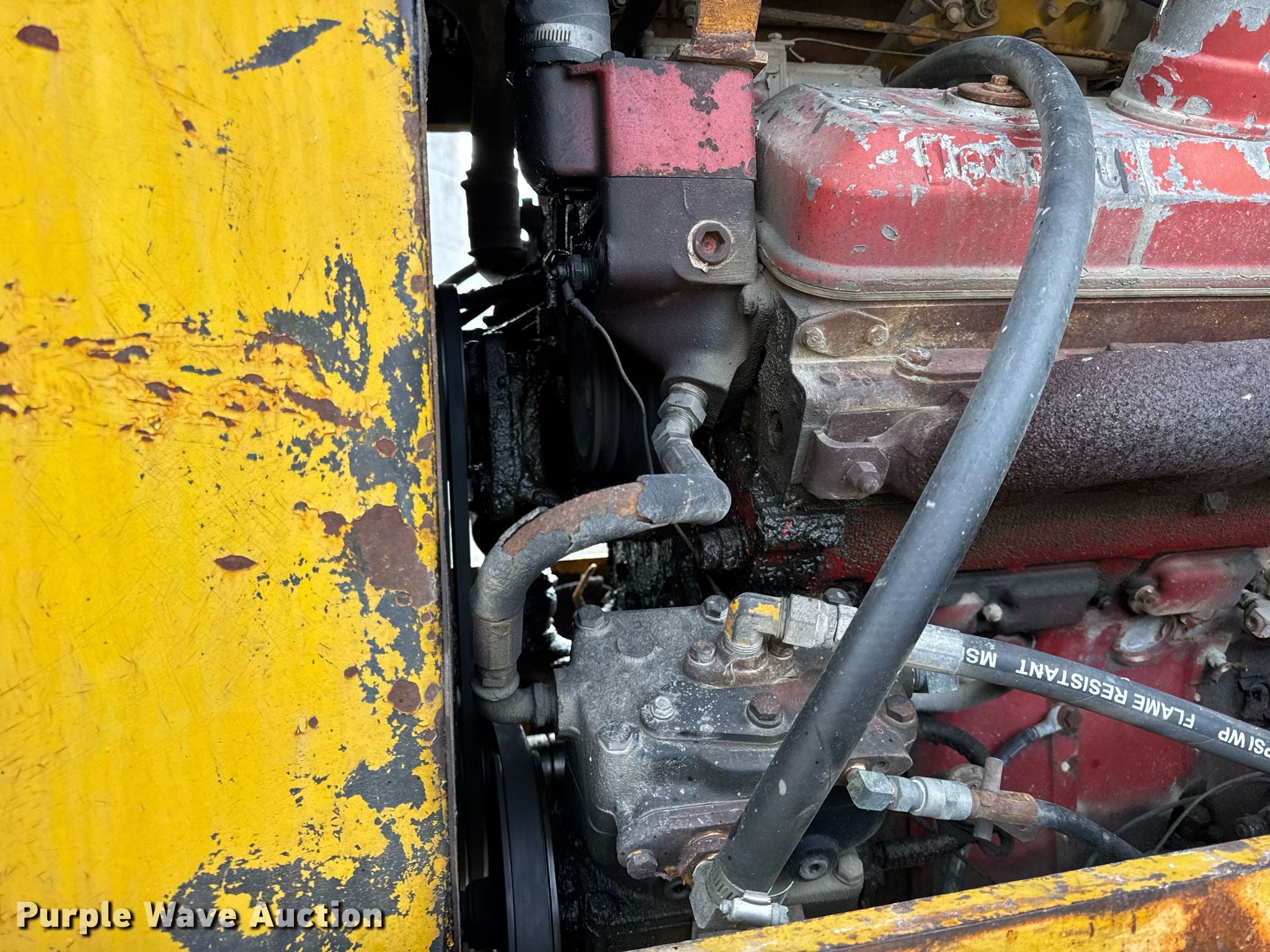 1976 Michigan 125B wheel loader. Hours: 1,018 on meter, Serial: 441A163FS0. Engine Detriot Diesel, Cylinders: 8, Fuel type: Diesel. Transmission Powershift, 4F - 4R. Operators station Enclosed cab, Heat, Bucket controls: Two-lever. Features Bucket Width: 118". Tires Size: 23.5-25. Notes Engine issues, oil leak , Non-operational brakes, Dead battery. Keystone Cooperative. Goshen, IN 46526