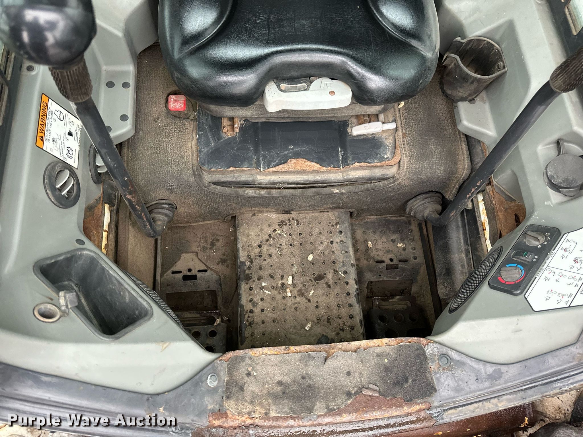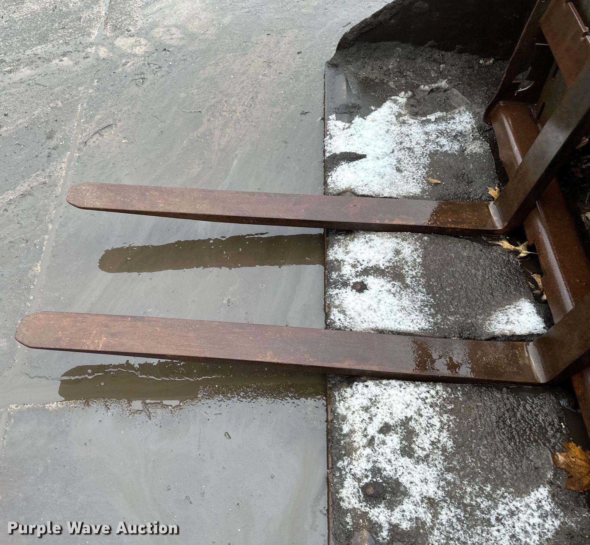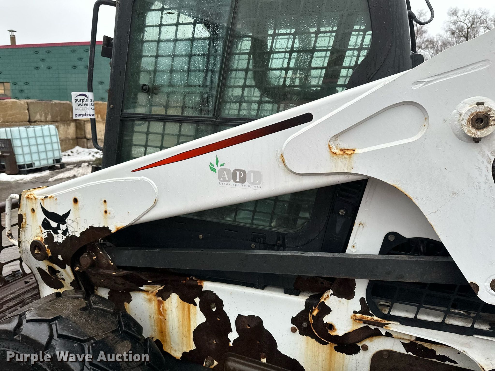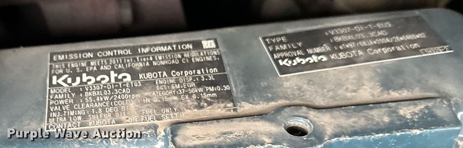 2012 Bobcat S650 skid steer loader. Hours: 2,659 on meter, Serial: A3NV16222. Engine Kubota V3307-DI-T-EU3, Displacement: 3.3L, Cylinders: 4, Fuel type: Diesel. Transmission Hydrostatic, Two speed travel. Operators station Enclosed cab, AC, Heat, Bucket control: Foot, Electronic Monitoring System panel. Features Auxiliary hydraulics, Auxiliary electrical outlet, Quick coupler: Hydraulic, Bucket Width: 73", Cutting edge: Bolt-on, Forks Length: 48". Tires Size: 12-16.6. APL Landscape, Inc. Minneapolis, MN 55420