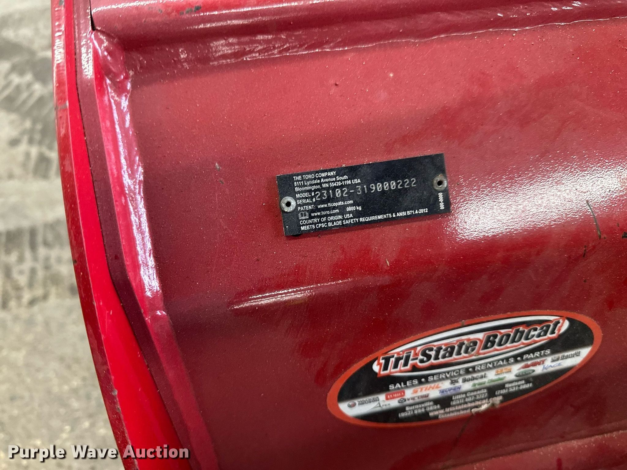 Purple Wave is selling a used Skid Steer Attach. in Minnesota. This item is a Toro compact utility loader soil cultivator with the following: Serial: 23102-319000222, Width: 36", Compact utility loader not included