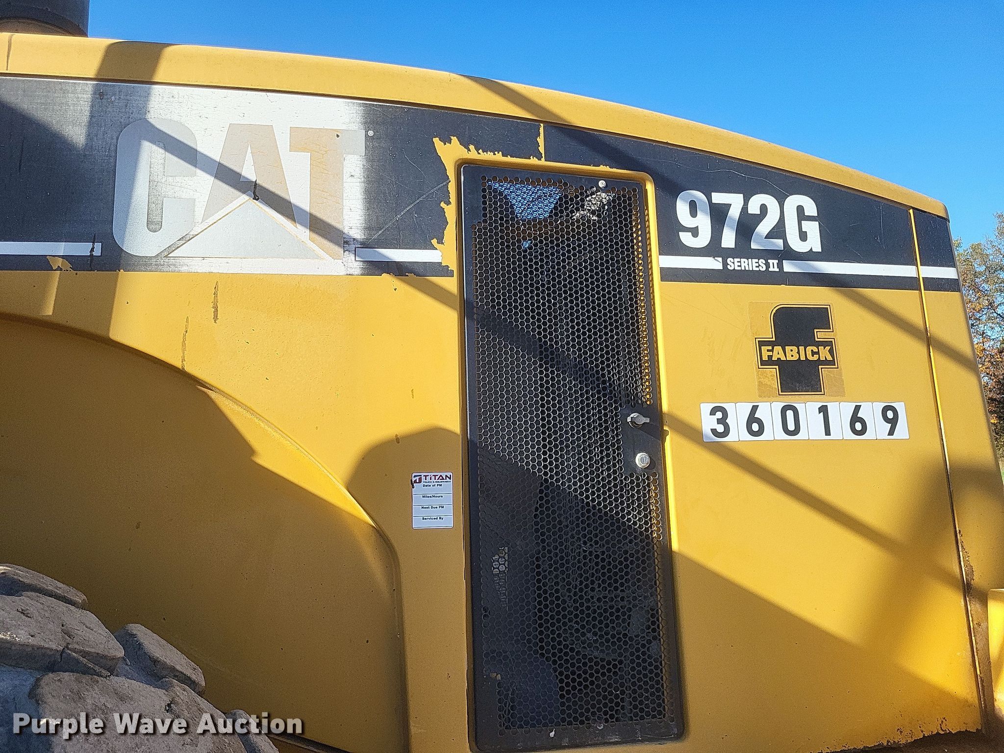 Purple Wave is selling a used Wheel Loader in Missouri. This item is a 2004 Caterpillar 972G Series II wheel loader with the following: Hours: 33,221 on meter, Serial: CAT0972GPANY00387, Unit #: 360169