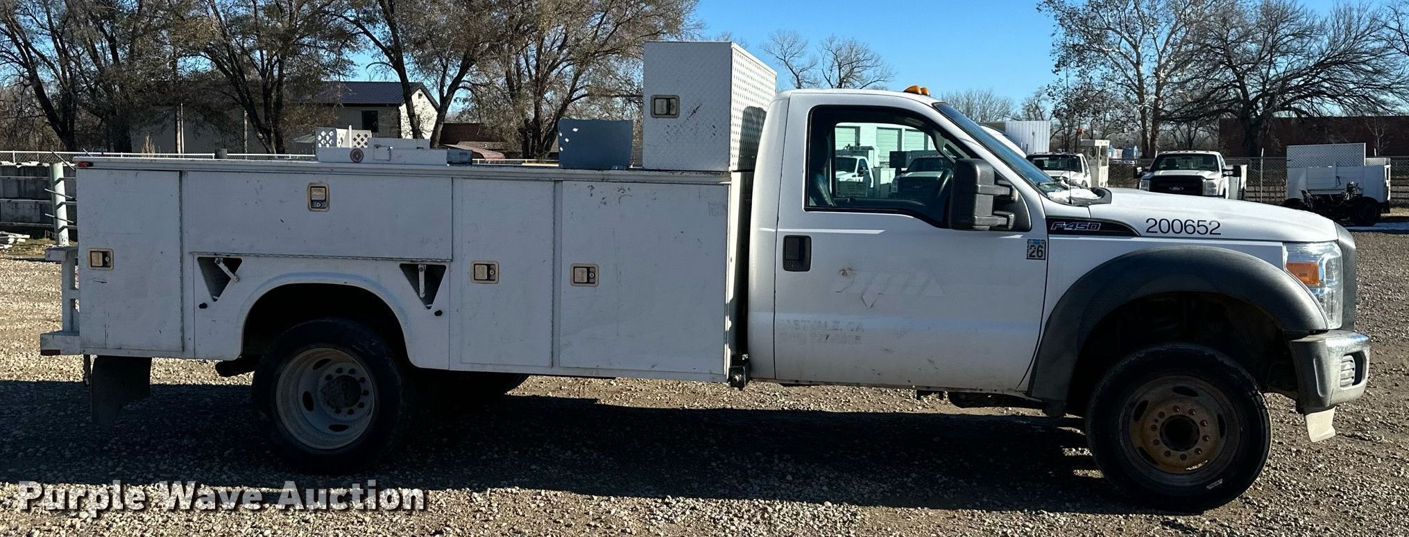 Purple Wave is selling a used Service Truck in Kansas. This item is a 2011 Ford F450 Super Duty utility / service truck with the following: Miles: 123,389 on odometer, VIN: 1FDTF4GY7BEC17447, Unit #: 200652