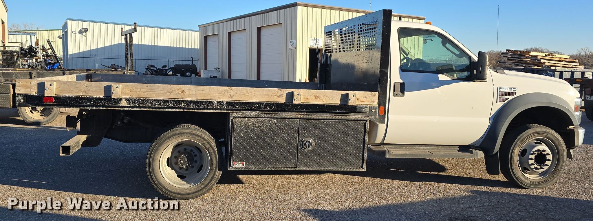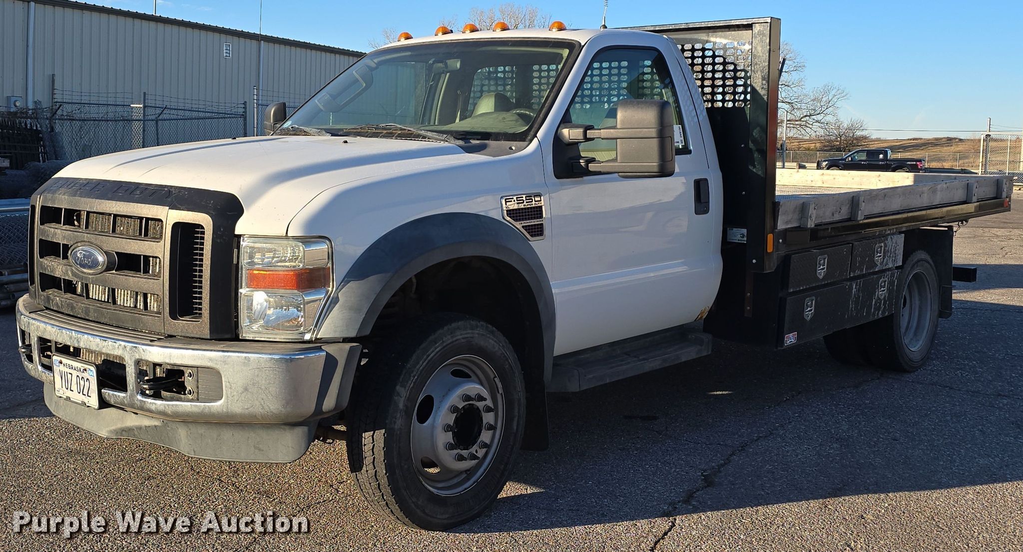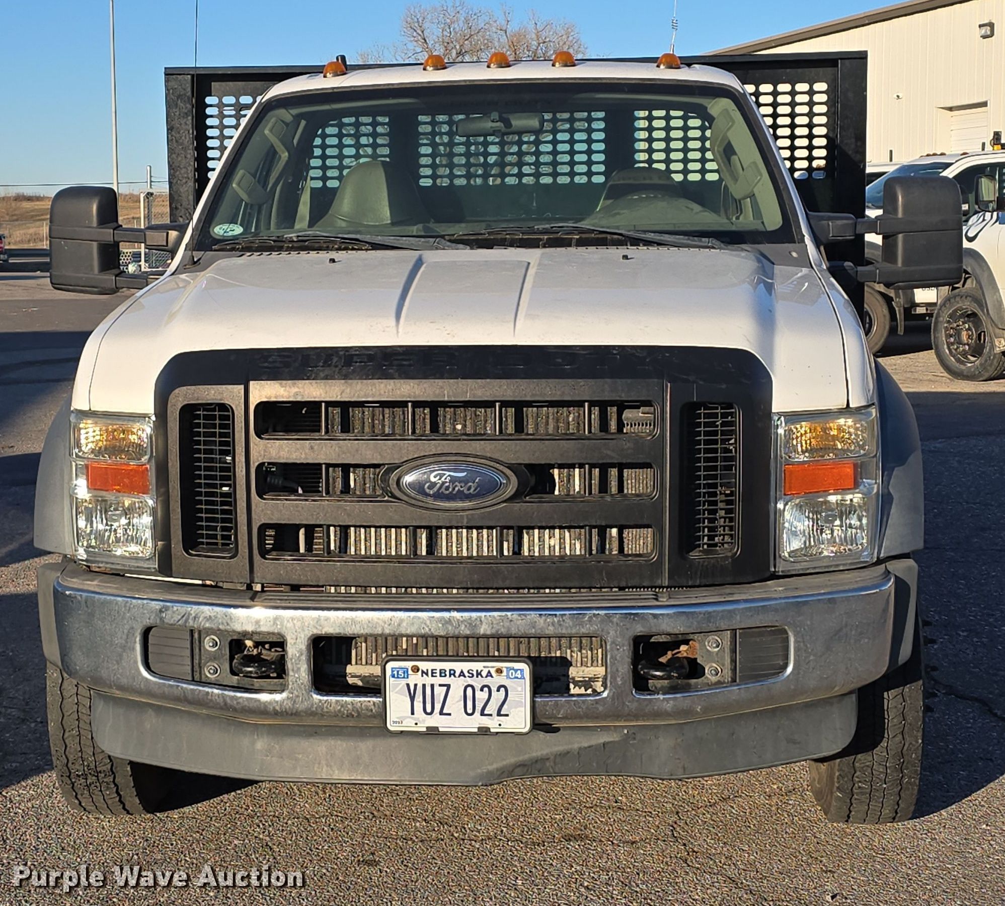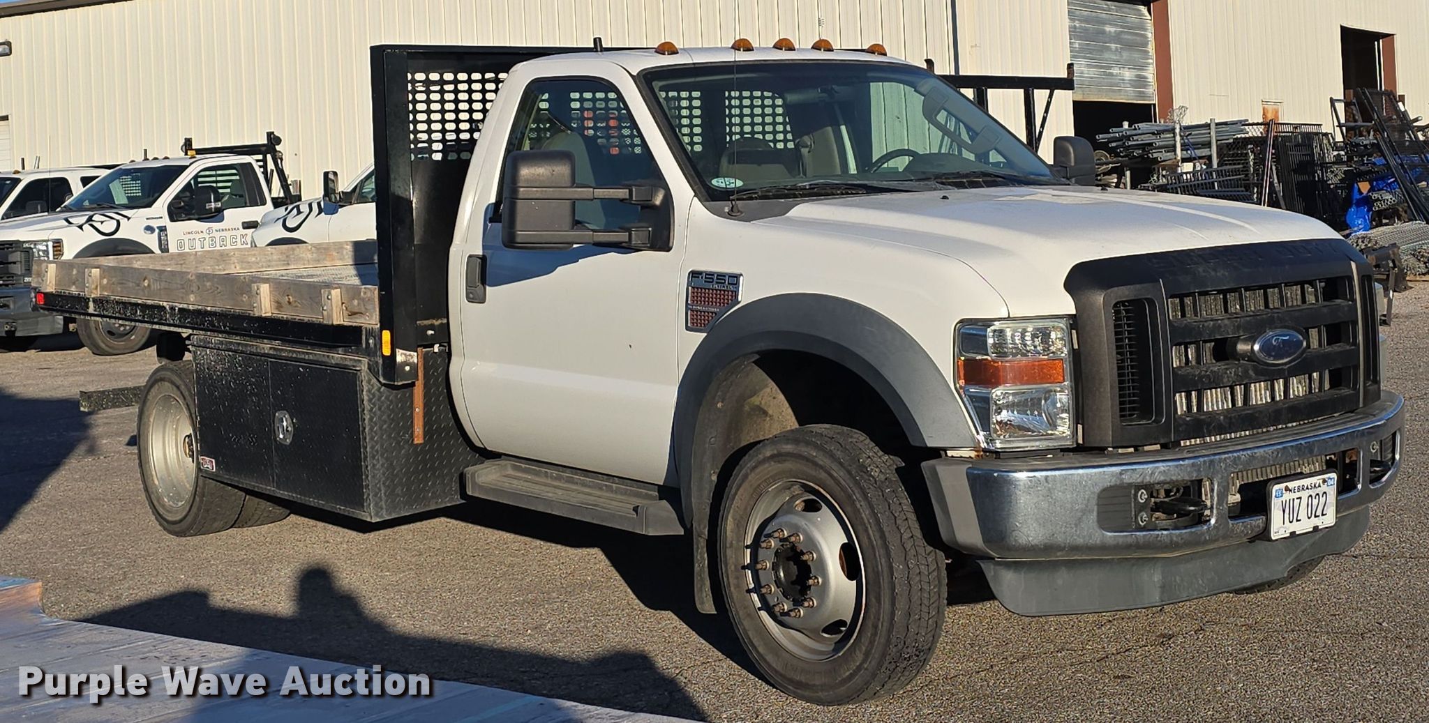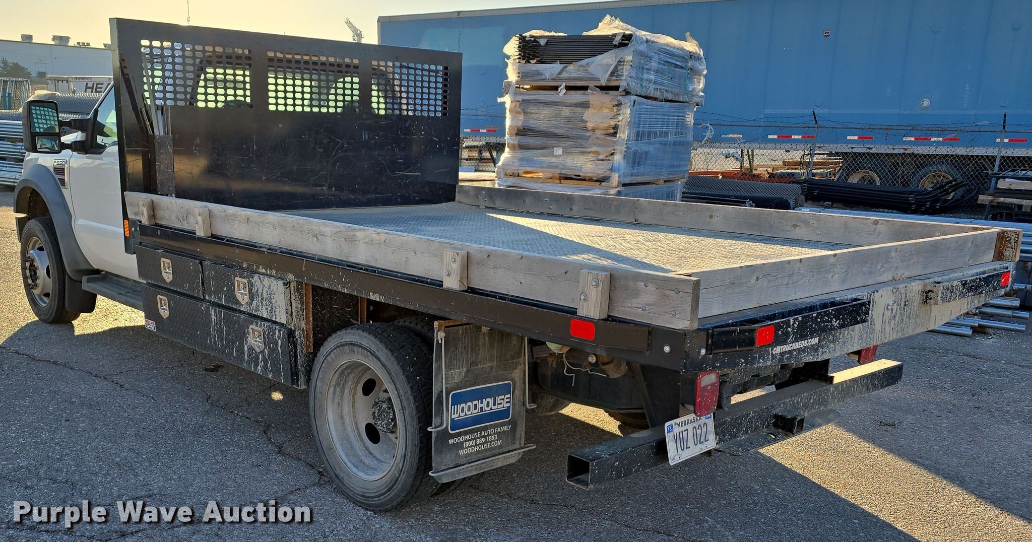 This 2008 Ford F550 Super Duty XL flatbed truck will sell to the highest bidder regardless of price.