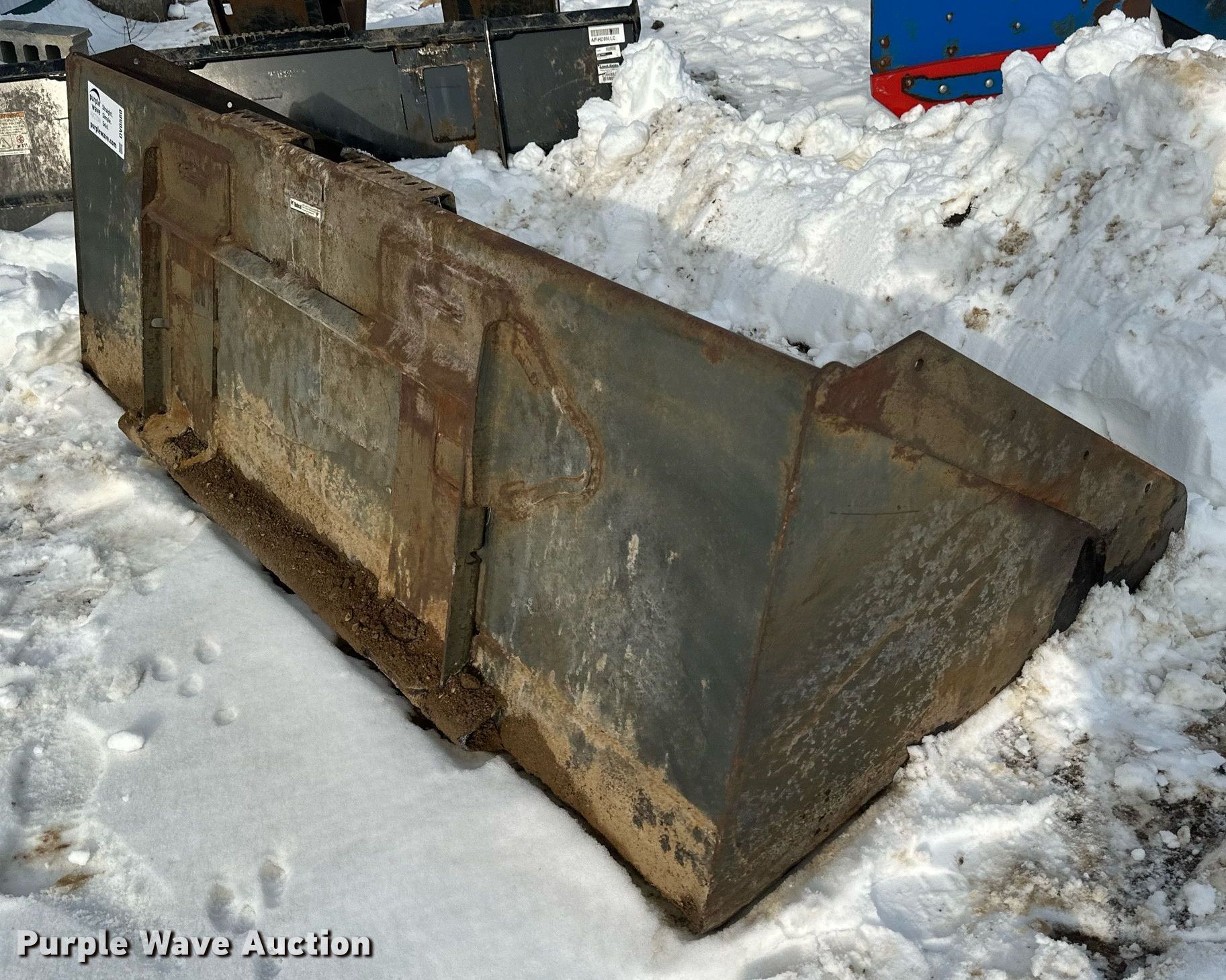 Purple Wave is selling a used Skid Steer Attach. in Minnesota. This item is a 86" W skid steer bucket with the following: Cutting edge: Bolt-on