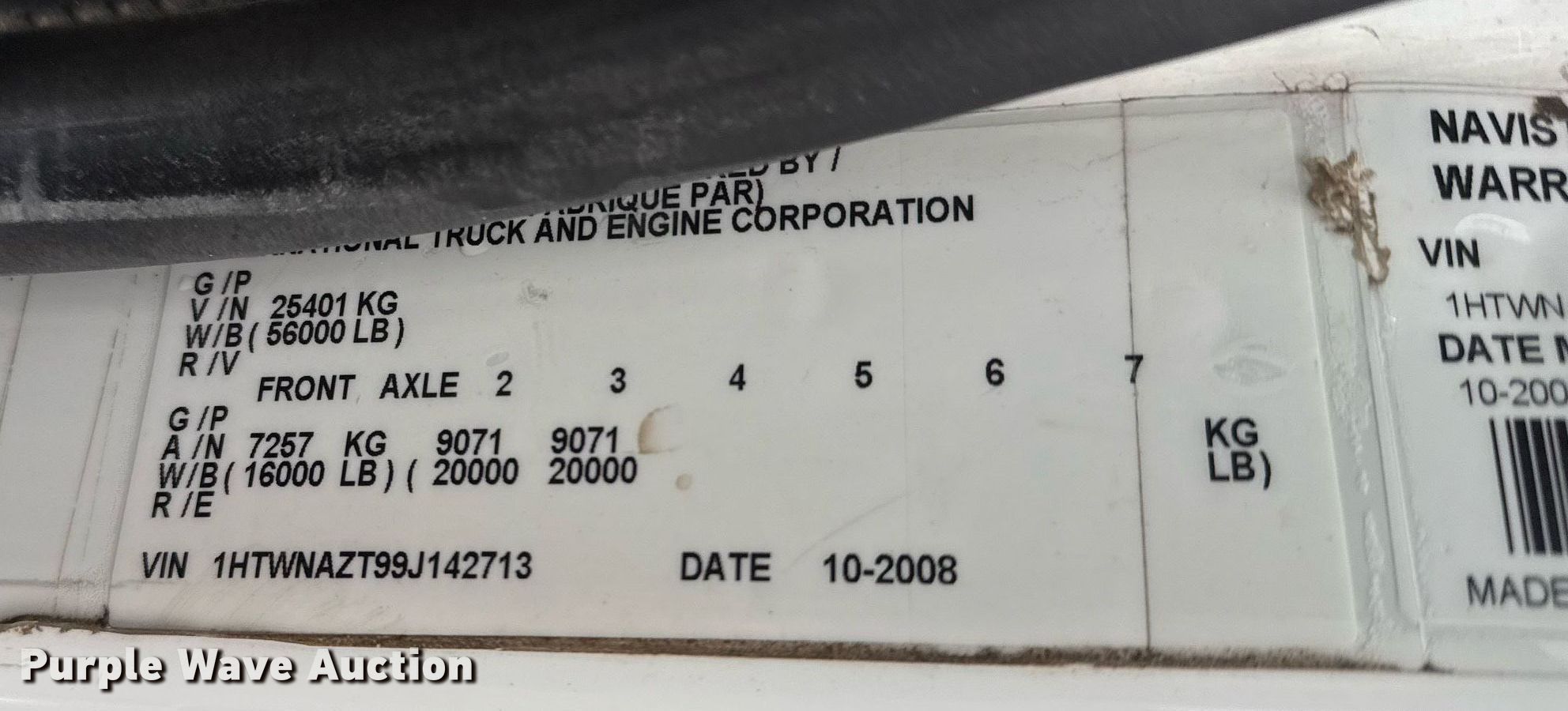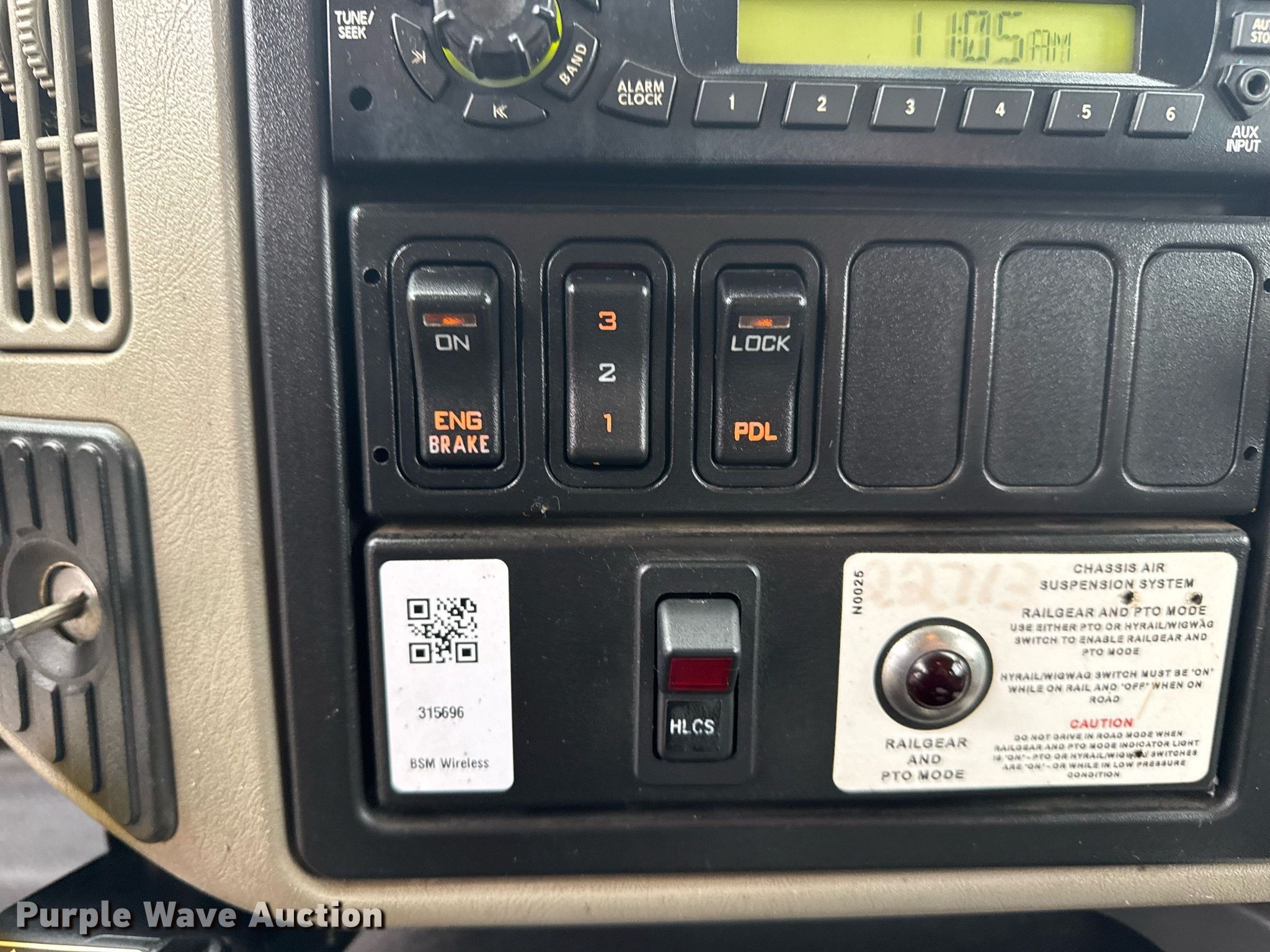 2009 International 7500 Crew Cab crane truck. Miles: 151,035 on odometer, Hours: 14,760 on meter, VIN: 1HTWNAZT99J142713. Engine Displacement: 9.3L, Cylinders: 6, Fuel type: Diesel, Engine brake. Transmission Eaton Fuller 8LL, Manual, Speed: 10. Chassis Hi-rail system, Axles: Tandem, Differential lock: Inter-axle, Suspension: Air, Brakes: Air, PTO, GVWR: 56,000 lbs FAWR: 16,000 lbs, IAWR: 20,000 lbs, RAWR: 20,000 lbs. Interior AC, Heat, Heated mirrors, Cruise control, Auxiliary controls, Brake controller. Features Utility bed 13' 5" L x 96" W, Crane 2008 Palfinger PK15002 Serial: 100095017, Boom Telescopic, Knuckle, Maximum boom length: 55' Sections: 3, Boom controls Ground, Hose reels. Tires Front: 315/80R22.5, Rear: 11R22.5. Notes Hi-rail system wheels missing, Hood issues, shocks weak. Oklahoma title. Title distribution may be delayed up to 14 days from verification of funds. Collinsville, OK 74021