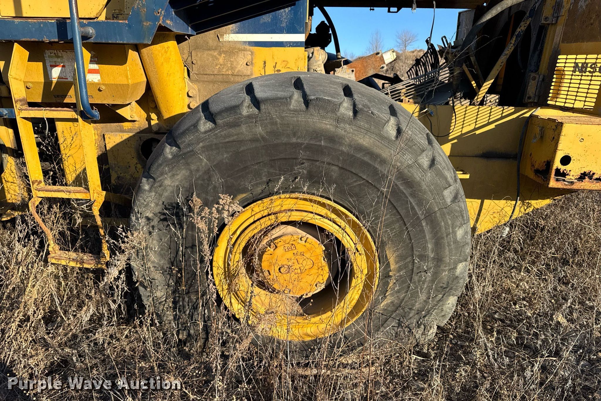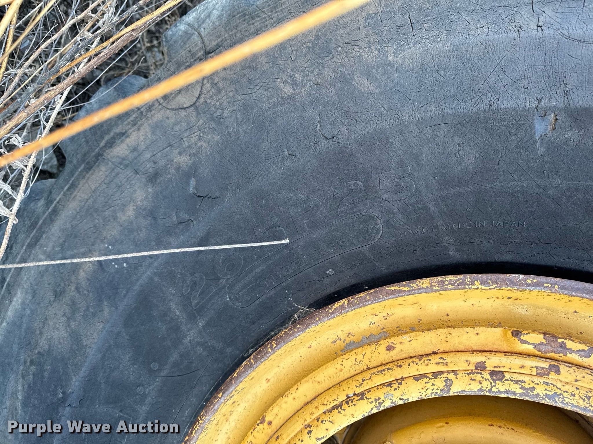 1990 Komatsu WA450-2 wheel loader. Hours: Unknown, Serial: A25035. Engine No engine. Transmission Powershift, 4F - 4R. Operators station Enclosed cab, Heat, Bucket controls: Two-lever. Tires Size: 26.5R25. Notes Battery missing, Parts missing, Dead battery, Non-operational unit Unit must be towed or hauled. BMC Aggregates LC. Mason City, IA 50401