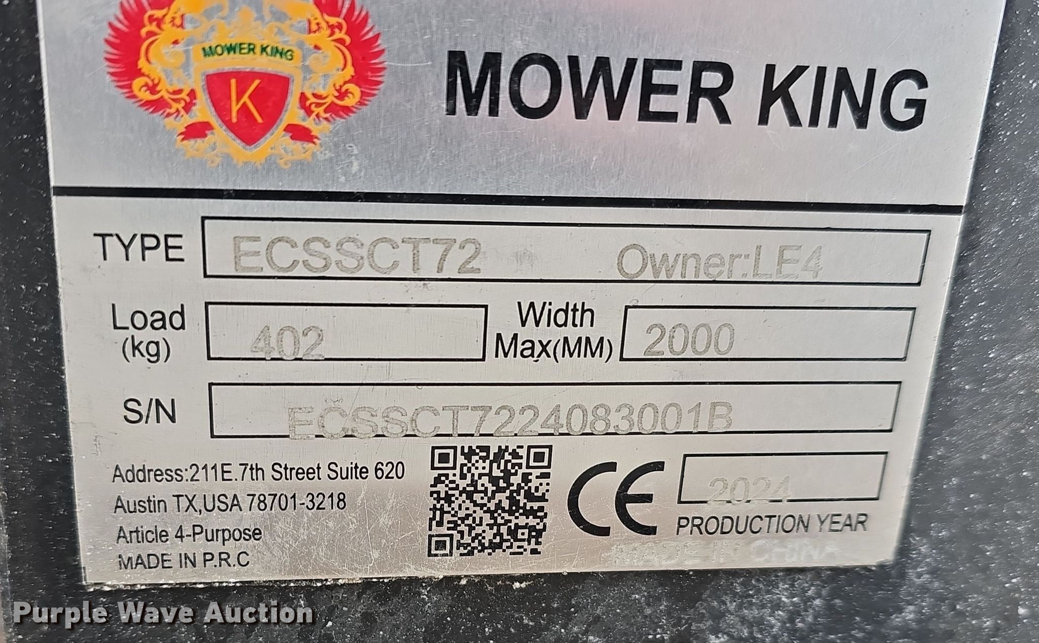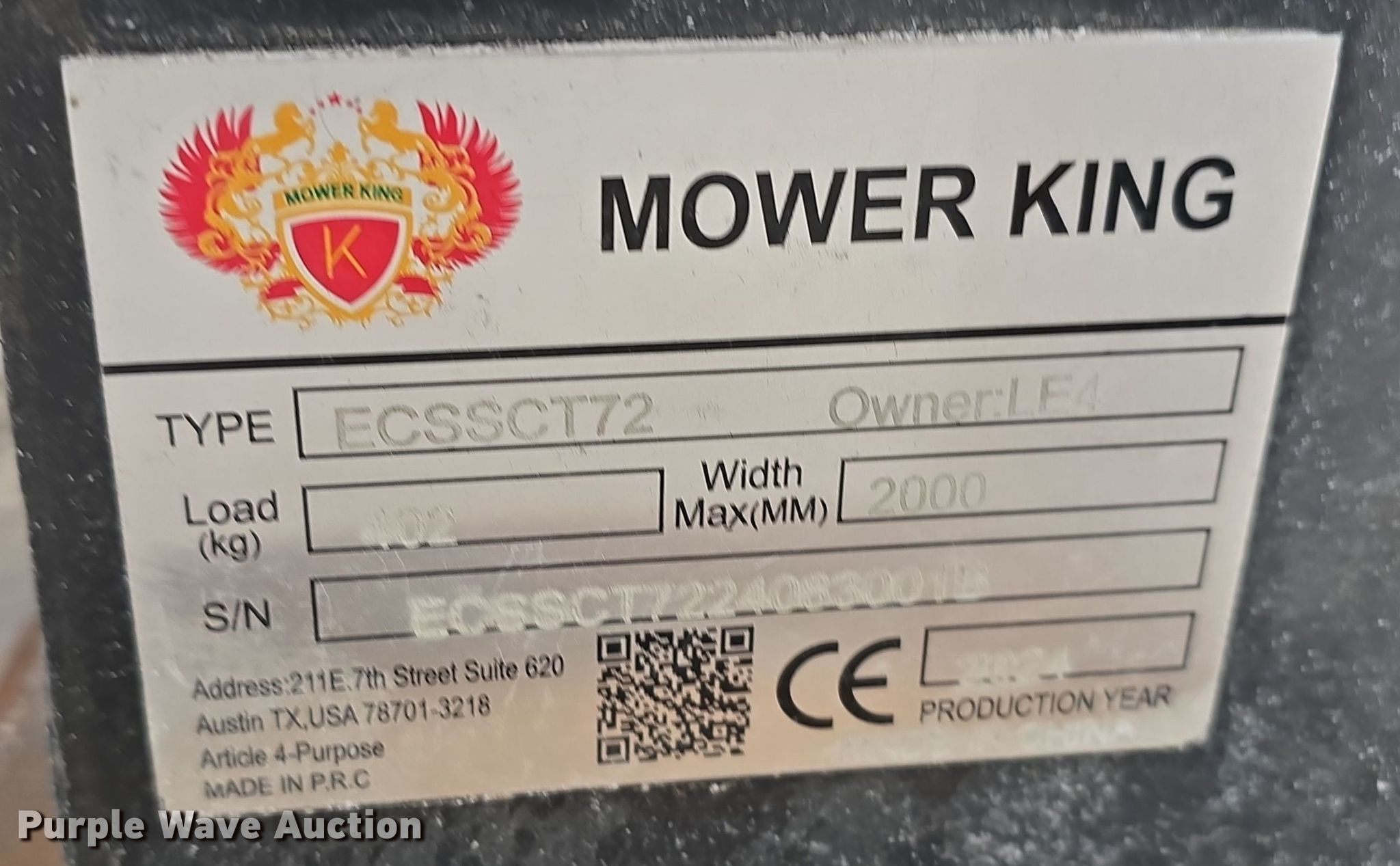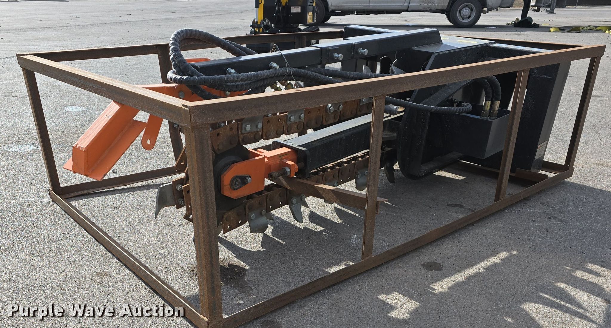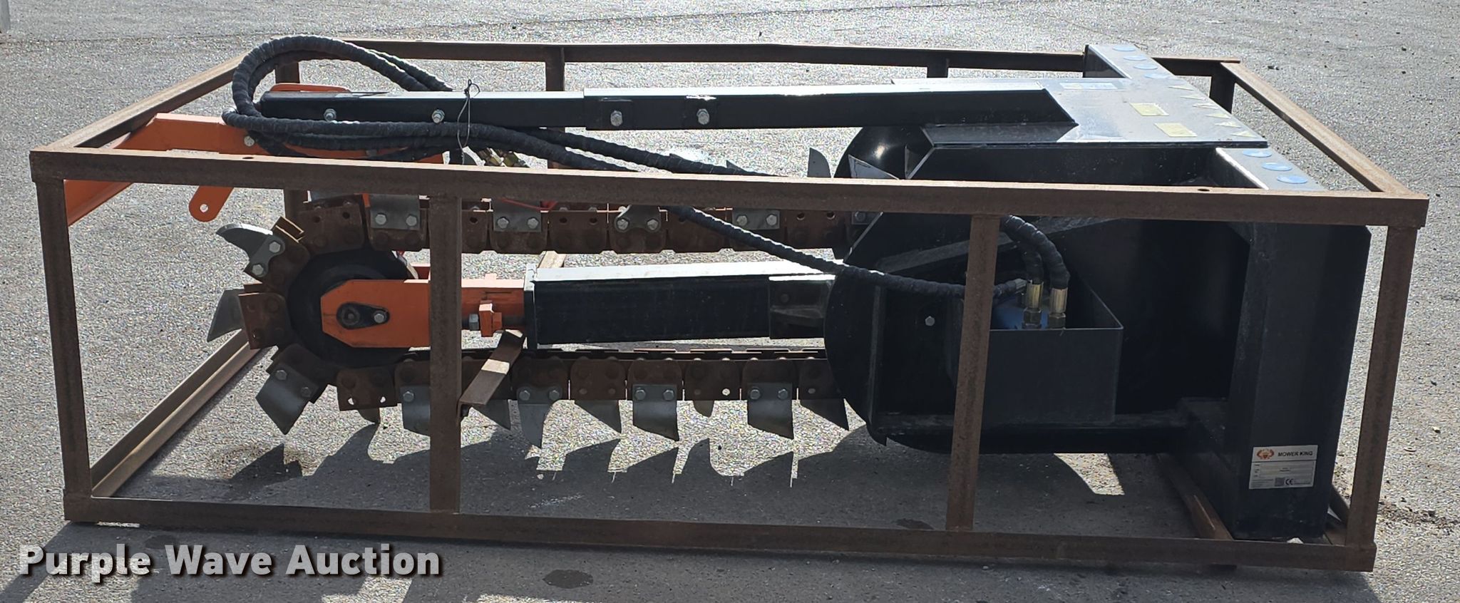 Purple Wave is selling a used Skid Steer Attach. in Nebraska. This item is a 2024 Mower King ECSSCT72 skid steer trencher with the following: Serial: ECSSCT72240830018, Estimated dig depth: 54", Width: 4"