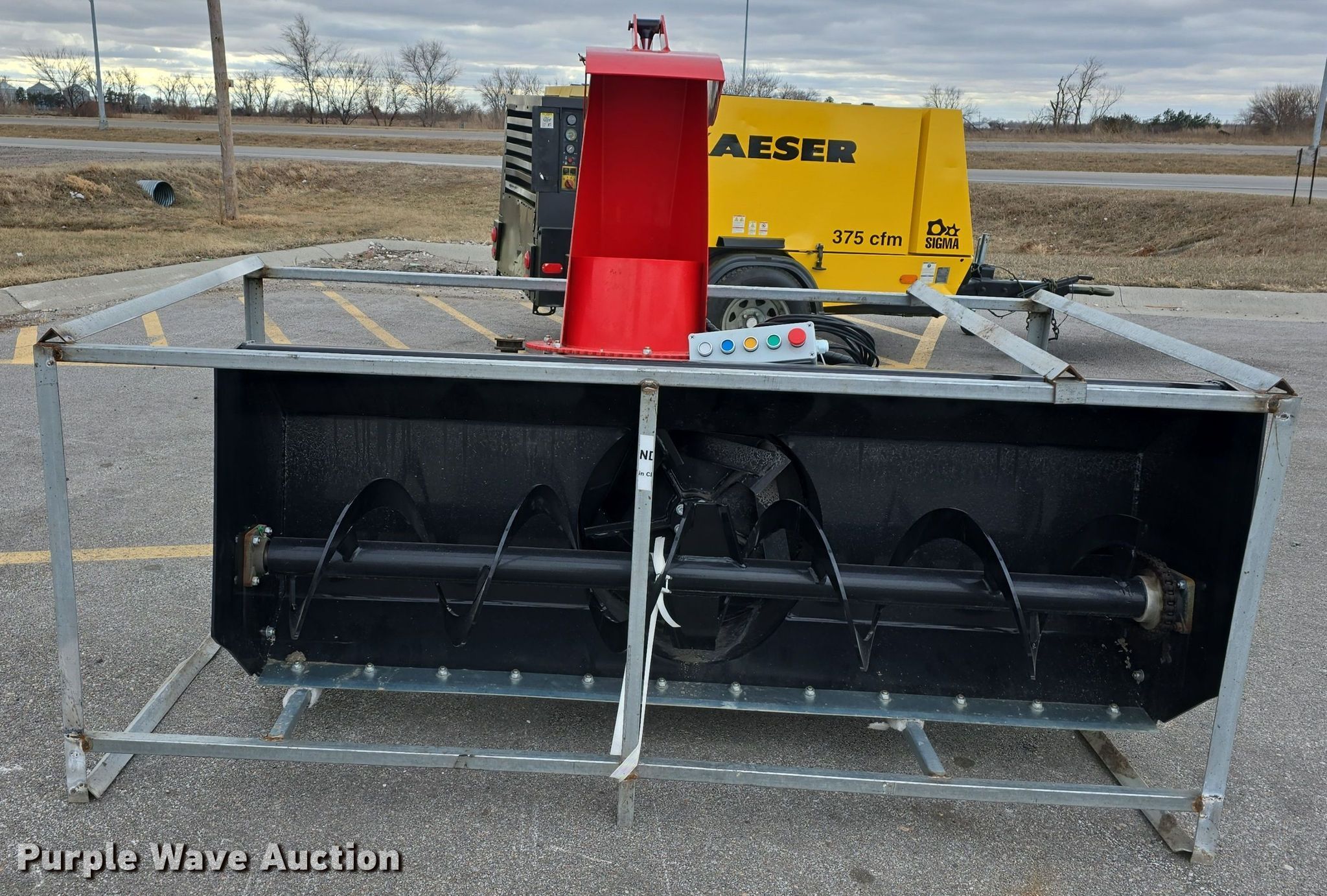This 2023 Landy HSB72 skid steer snow blower will sell to the highest bidder regardless of price.
