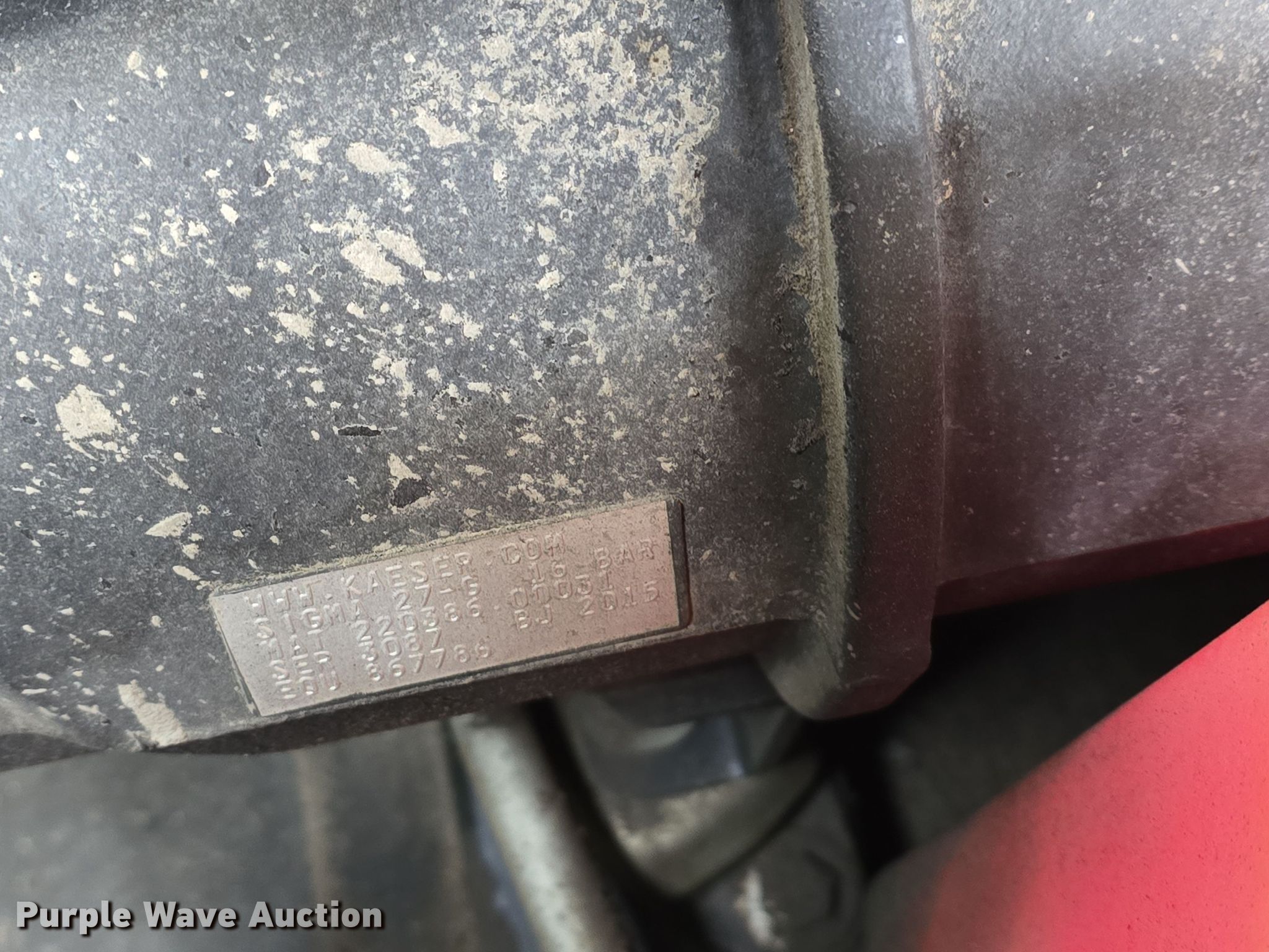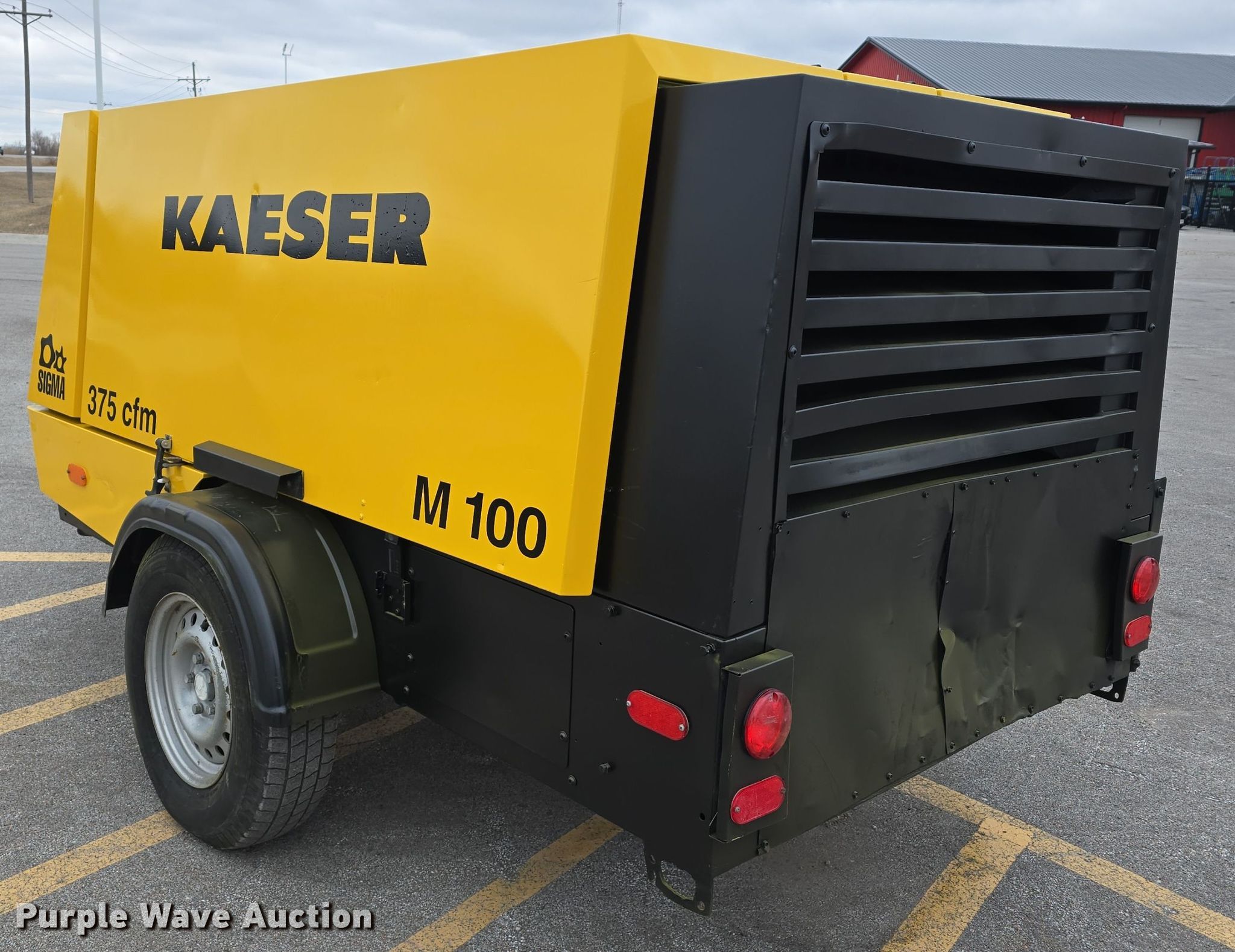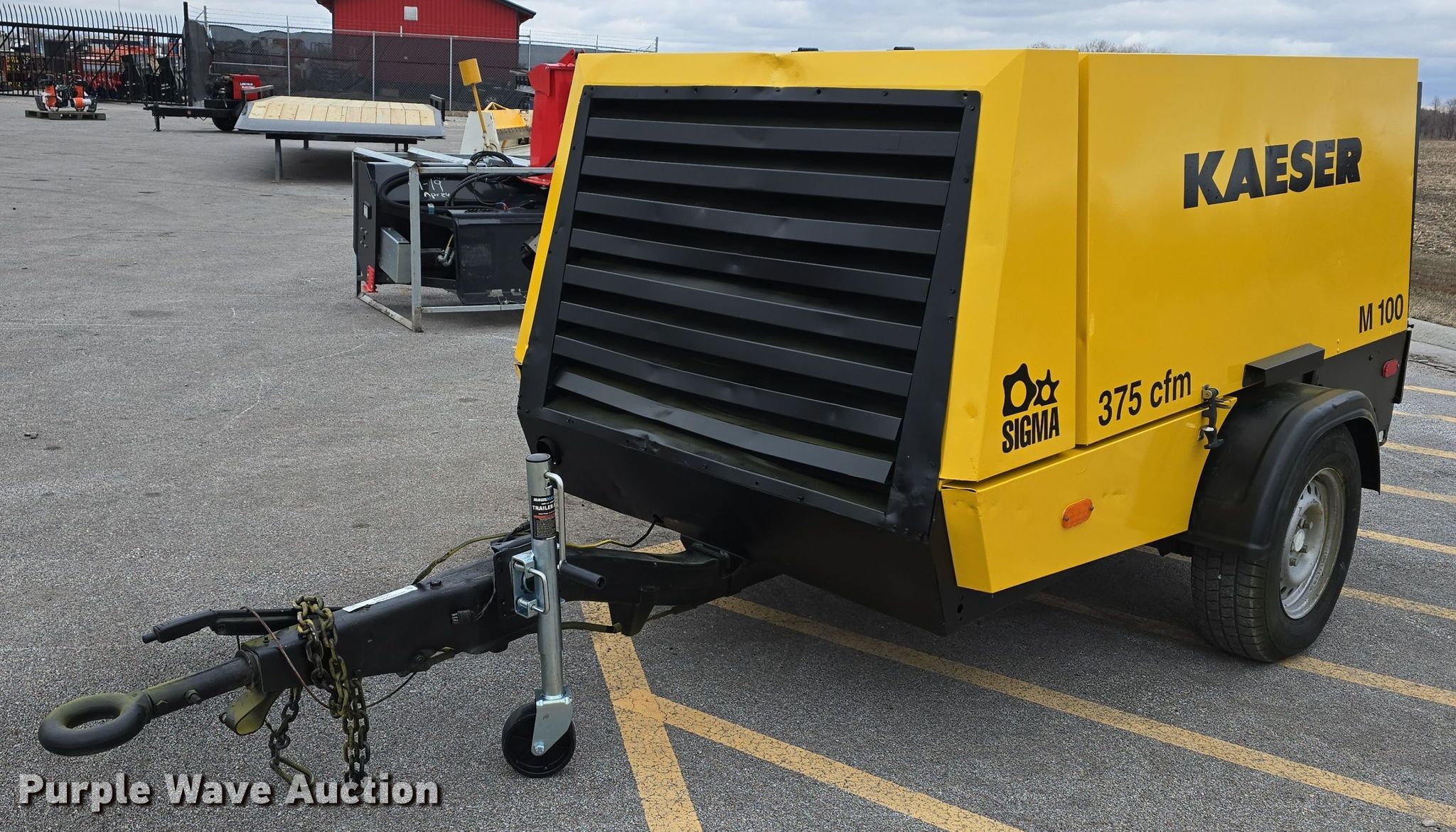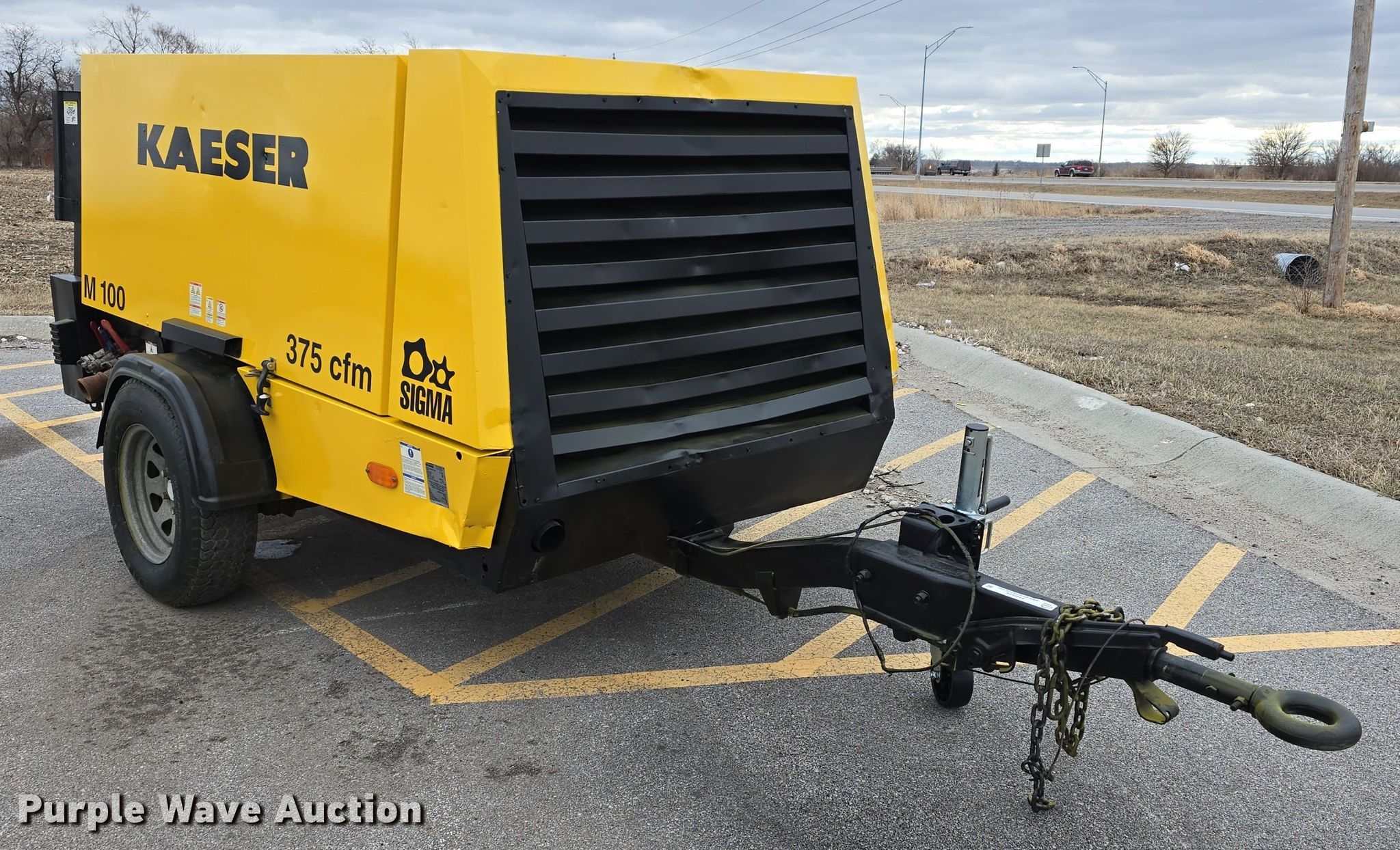 2015 Kaeser M100 air compressor. Hours: 2,626 on meter, VIN: WKA0F1601F5340937, Serial: 1358. Engine Kubota V3800, Serial: 2EQ5825, Cylinders: 4, Fuel type: Diesel, HP: 97.6. Features Air compressor Kaeser Sigma, CFM: 375, PSI: 232. Trailer 12.5' L x 70" W, Suspension: Spring, Axles: Single, Tire size: ST205/75D14, GVWR: 3,284 lbs, GAWR: 3,527 lbs. This is worksite support equipment and will not come with a title. Transfer of ownership documentation will be a bill of sale. Jordan Machinery/ S & N Auto Sales. Waterloo, NE 68069
