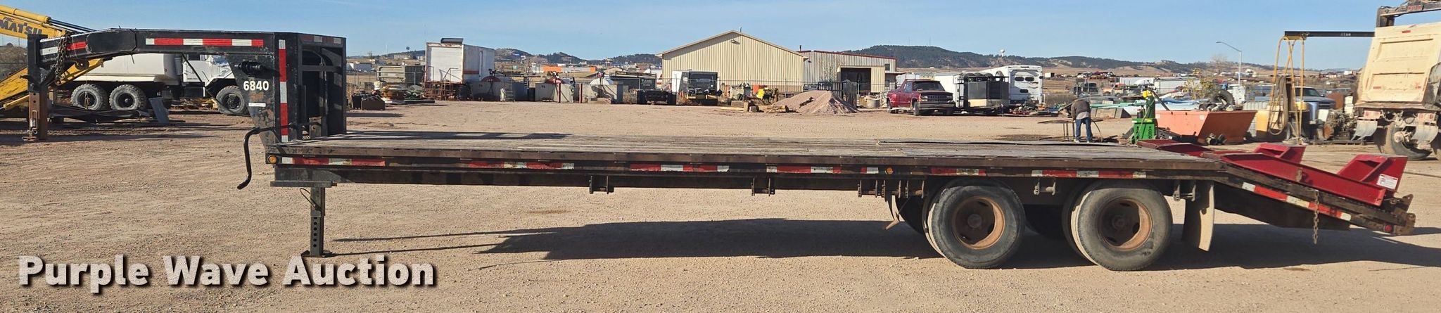 2011 Prairie equipment trailer. VIN: 1P95S3025B1199410, Unit #: 6840. Dimensions Overall: 39' 2" L x 102" W, Deck: 24' 10" L x 98" W, Tail length: 5' 4", Ramps: Manual Length: 4' 8". Features Deck type: Wood. Chassis Hitch: Gooseneck, Landing gear: Single, Brakes: Electric, Axles: Tandem. Tires Steel wheels, Size: 235/85R16. South Dakota title. LEi. Rapid City, SD 57701