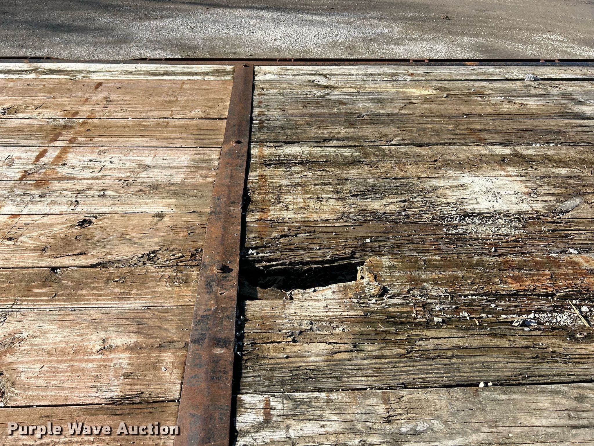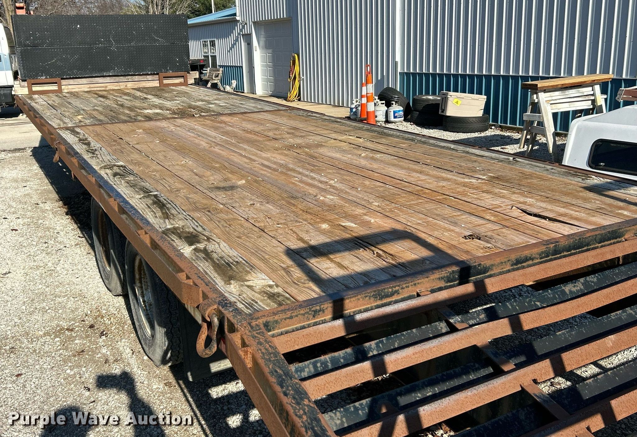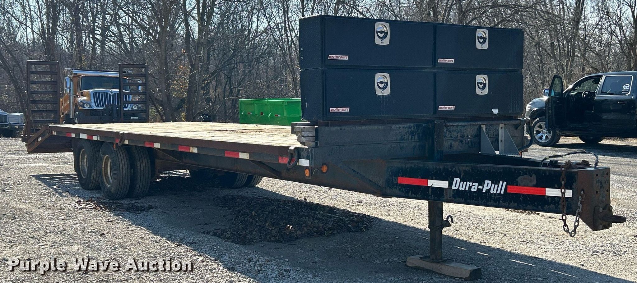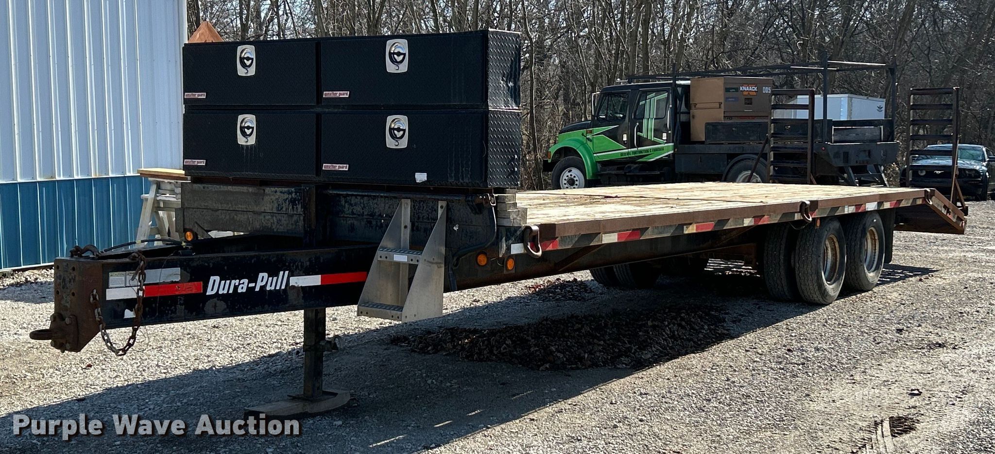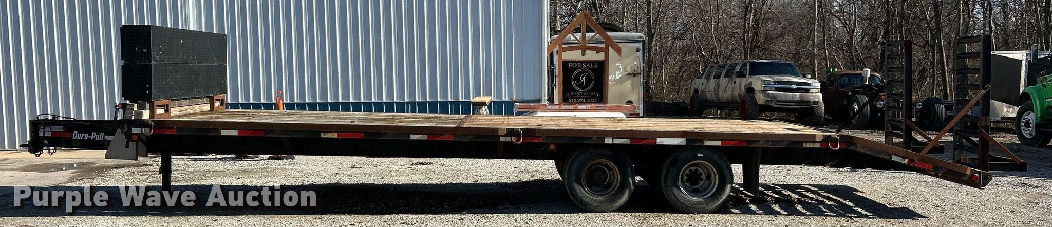 2008 Anderson Dura-Pull equipment trailer. VIN: 4YNBN31268C055891. Dimensions Overall: 36' L x 99" W, Deck: 26' L x 96" W, Tail length: 5', Ramps: Manual Length: 5'. Features Deck type: Wood. Chassis Hitch: Pintle, Landing gear: Single, Suspension: Spring, Brakes: Electric, Axles: Tandem. Tires Steel wheels, Size: 235/85R16. Notes Toolbox contents not included. Illinois title. Title distribution may be delayed up to 14 days from verification of funds. Innovative Construction Concepts. Caseyville, IL 62232