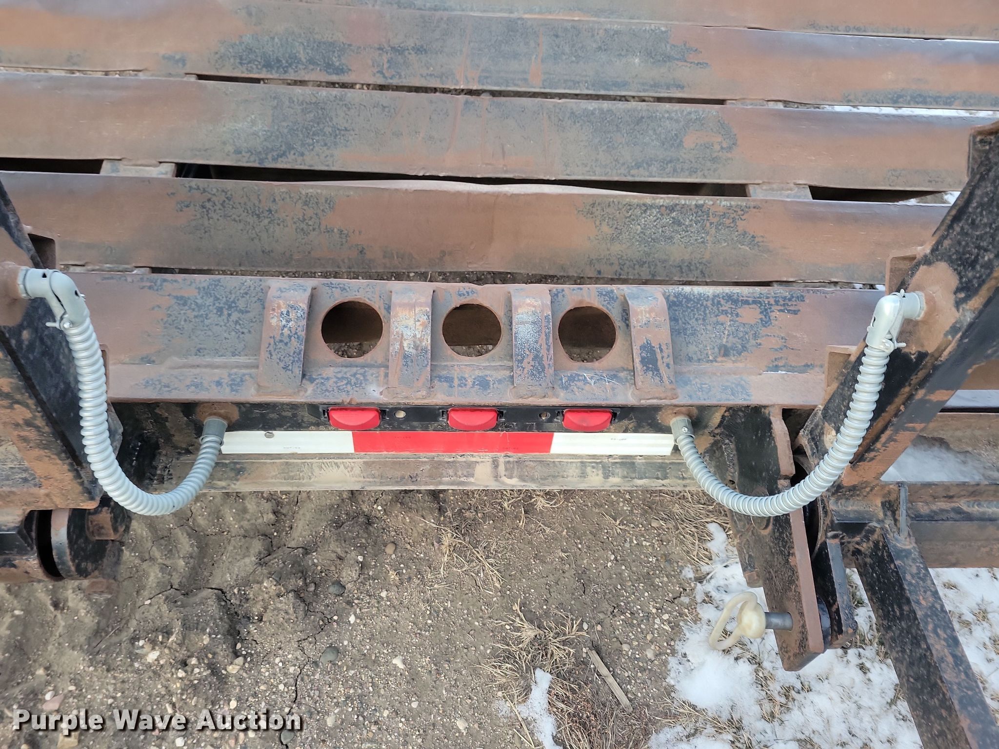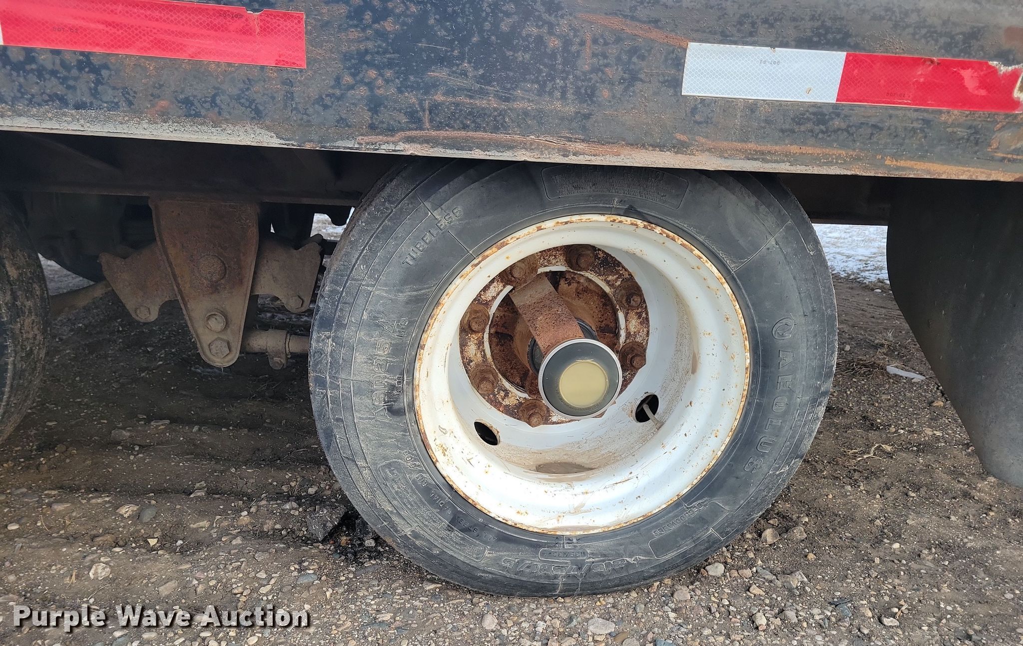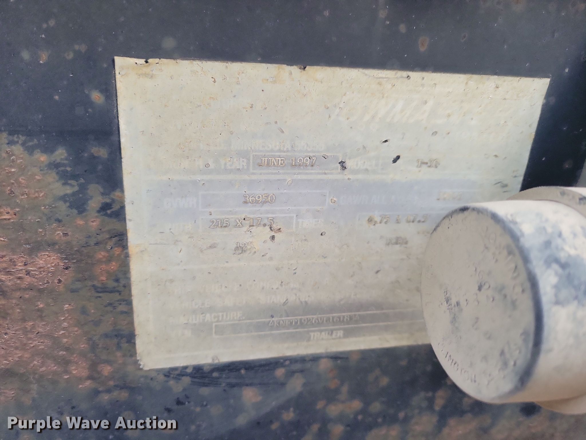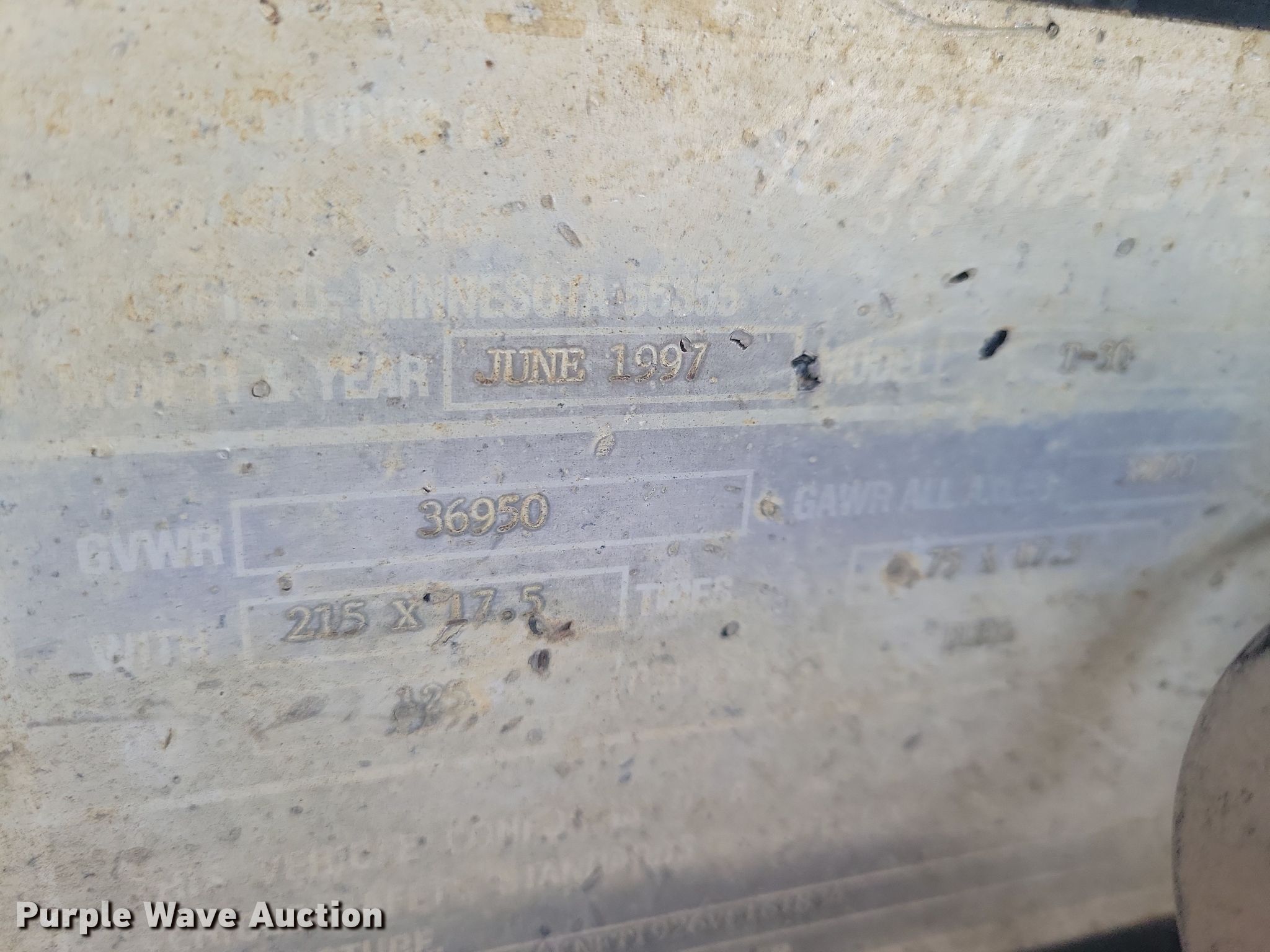 1997 Towmaster T30 equipment trailer. VIN: 4KNFT1926VL161834. Dimensions Overall: 32' L x 102" W, Deck: 19' L x 102" W, Deck height: 36", Tail length: 6', Ramps: Manual Length: 5'. Features Deck type: Wood. Chassis Hitch: Pintle, Landing gear: Single, Suspension: Spring, Brakes: Air, Axles: Tandem, GVWR: 36,950 lbs, GAWR: 15,000 lbs. Tires Steel wheels, Size: 215/75R17.5. Minnesota title. Nobles Cooperative Electric. Worthington, MN 56187