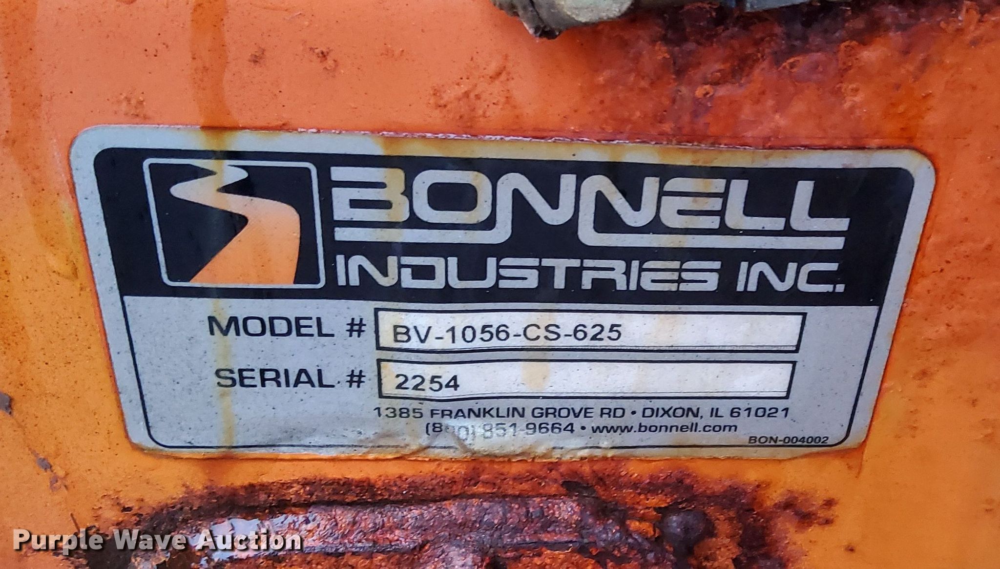Purple Wave is selling a used Truck Part and Attach. in Illinois. This item is a Bonnell BV-1056-CS-625 spreader with the following: Serial: 2254