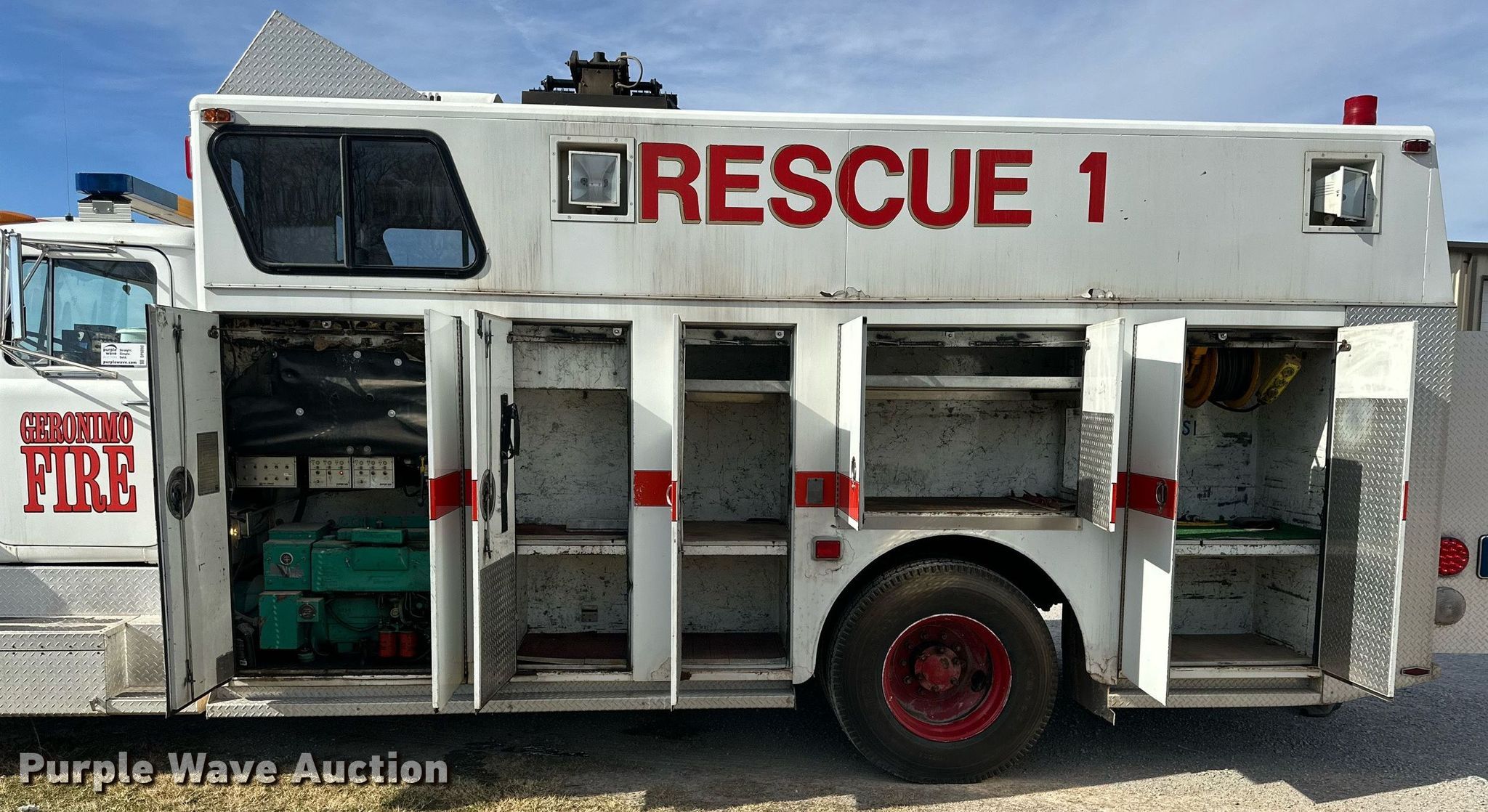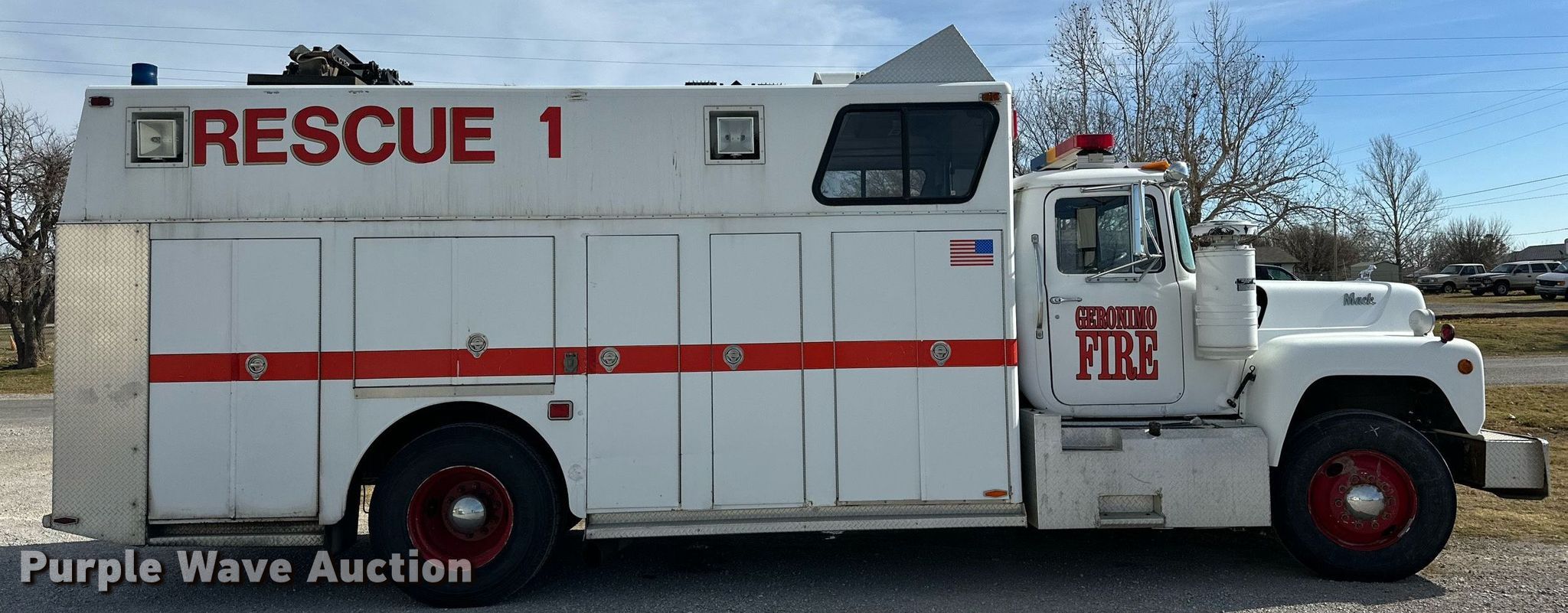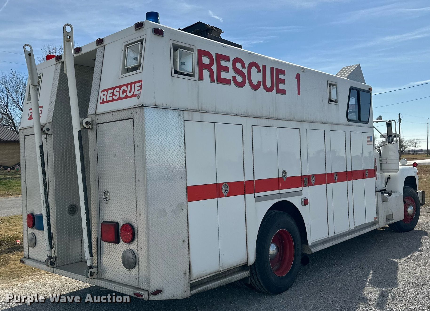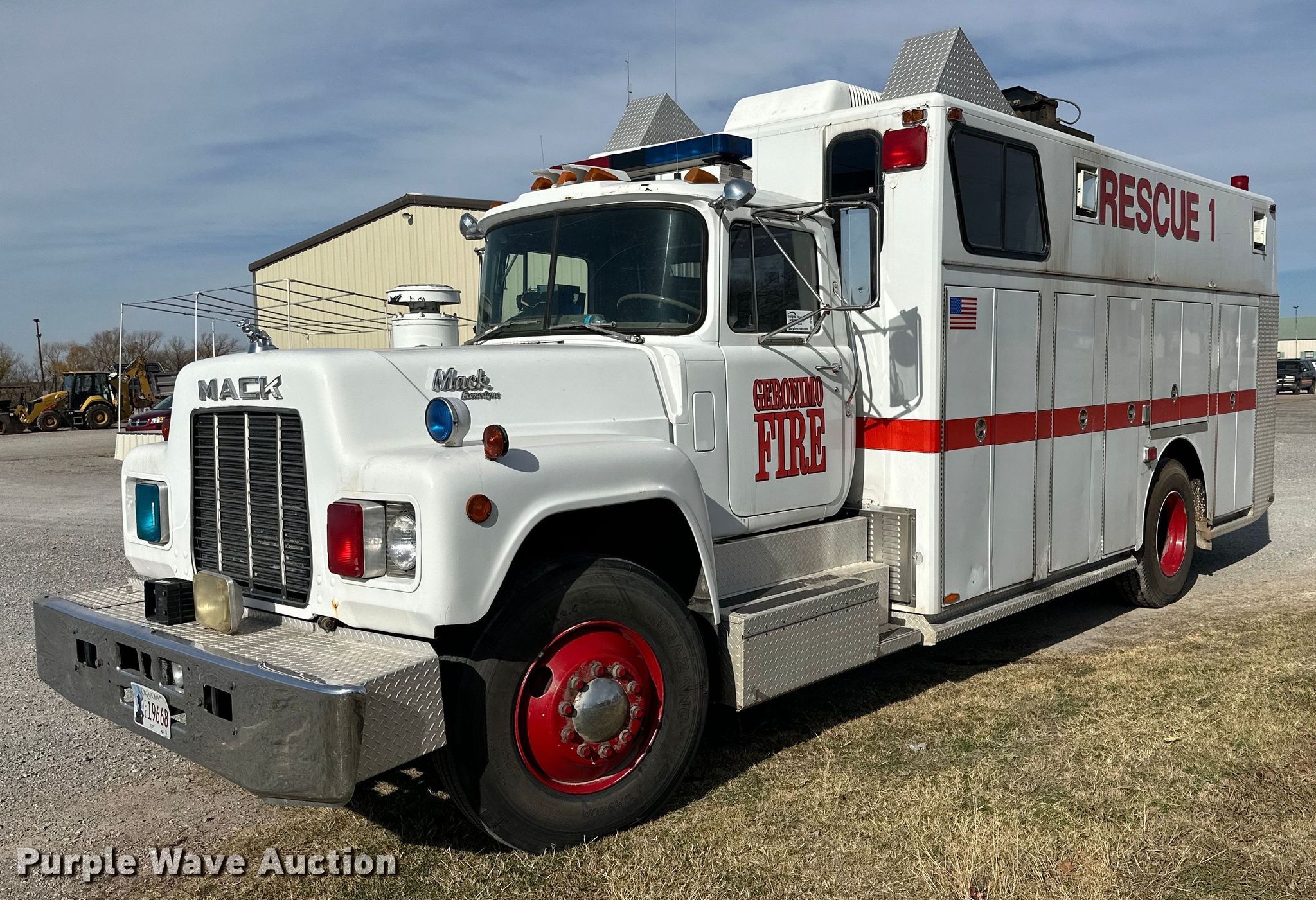 Purple Wave is selling a used Fire Truck or Emergency Vehicle in Oklahoma. This item is a 1983 Mack R686FC rescue vehicle with the following: Miles: 171,355 on odometer, Hours: 8,307 on meter, VIN: 1M2N168C3DA001031