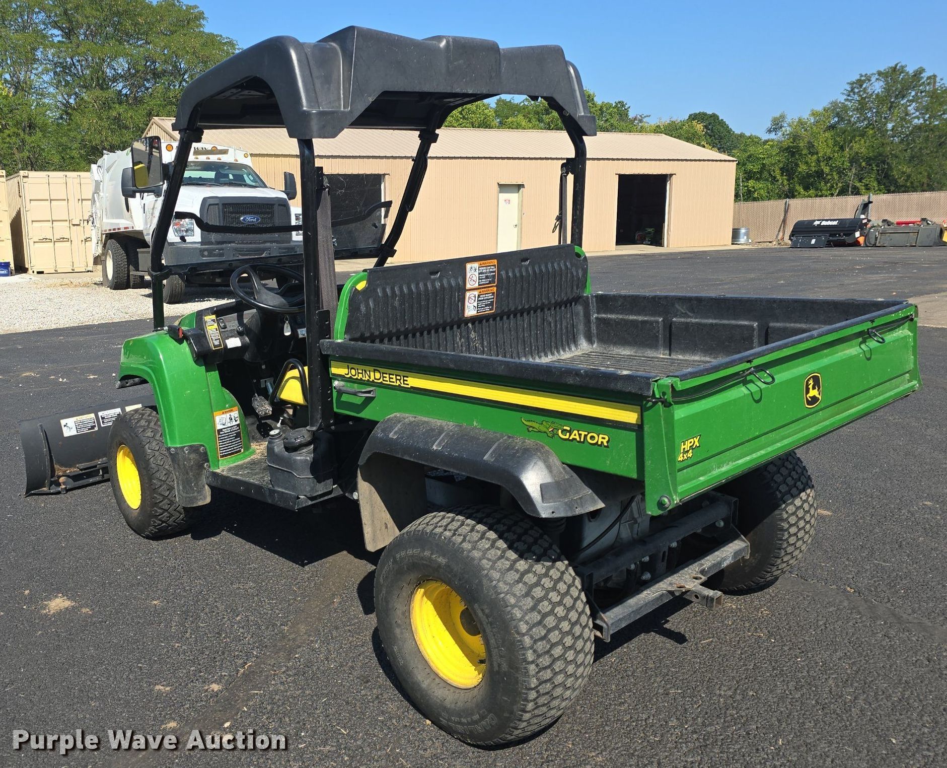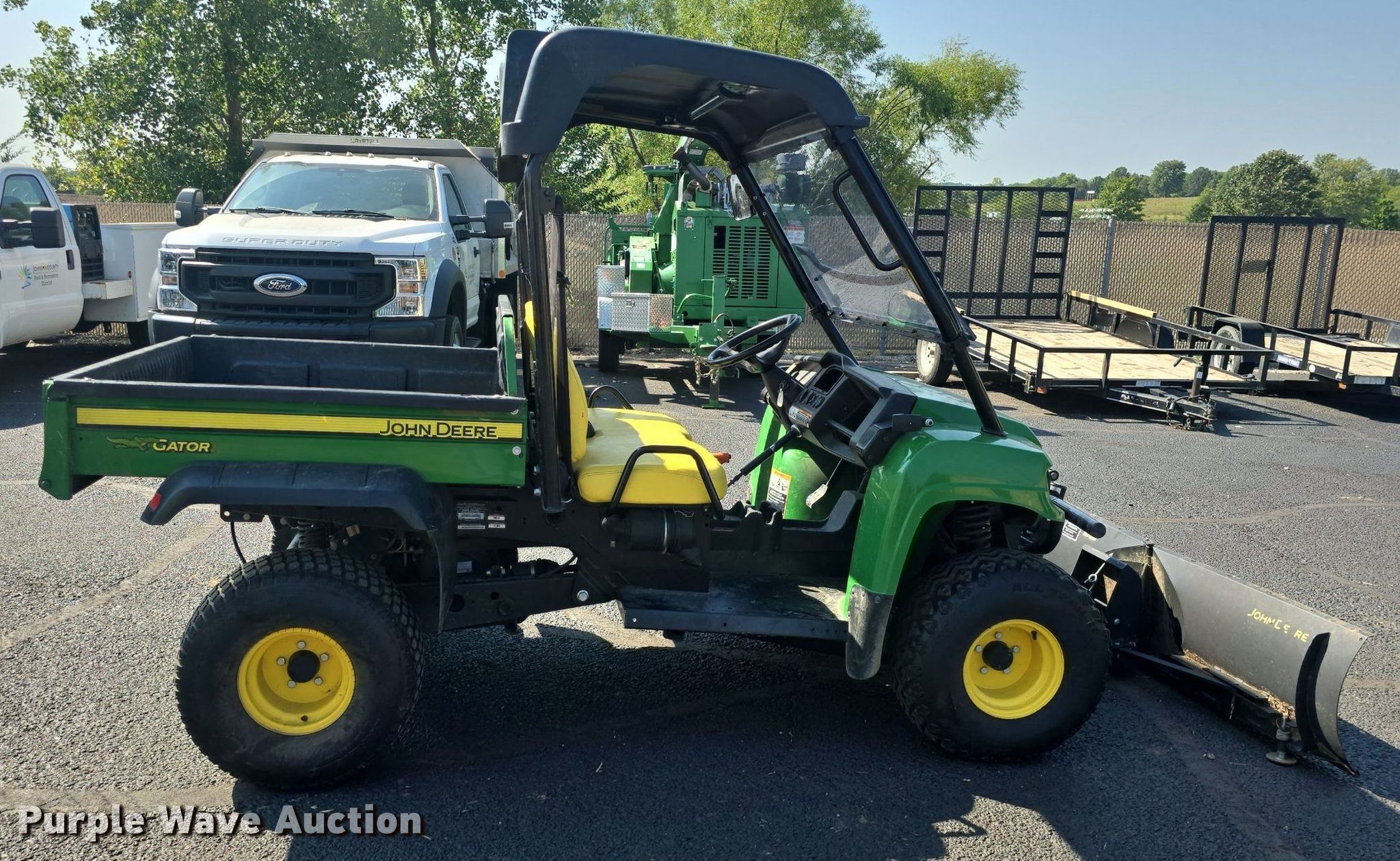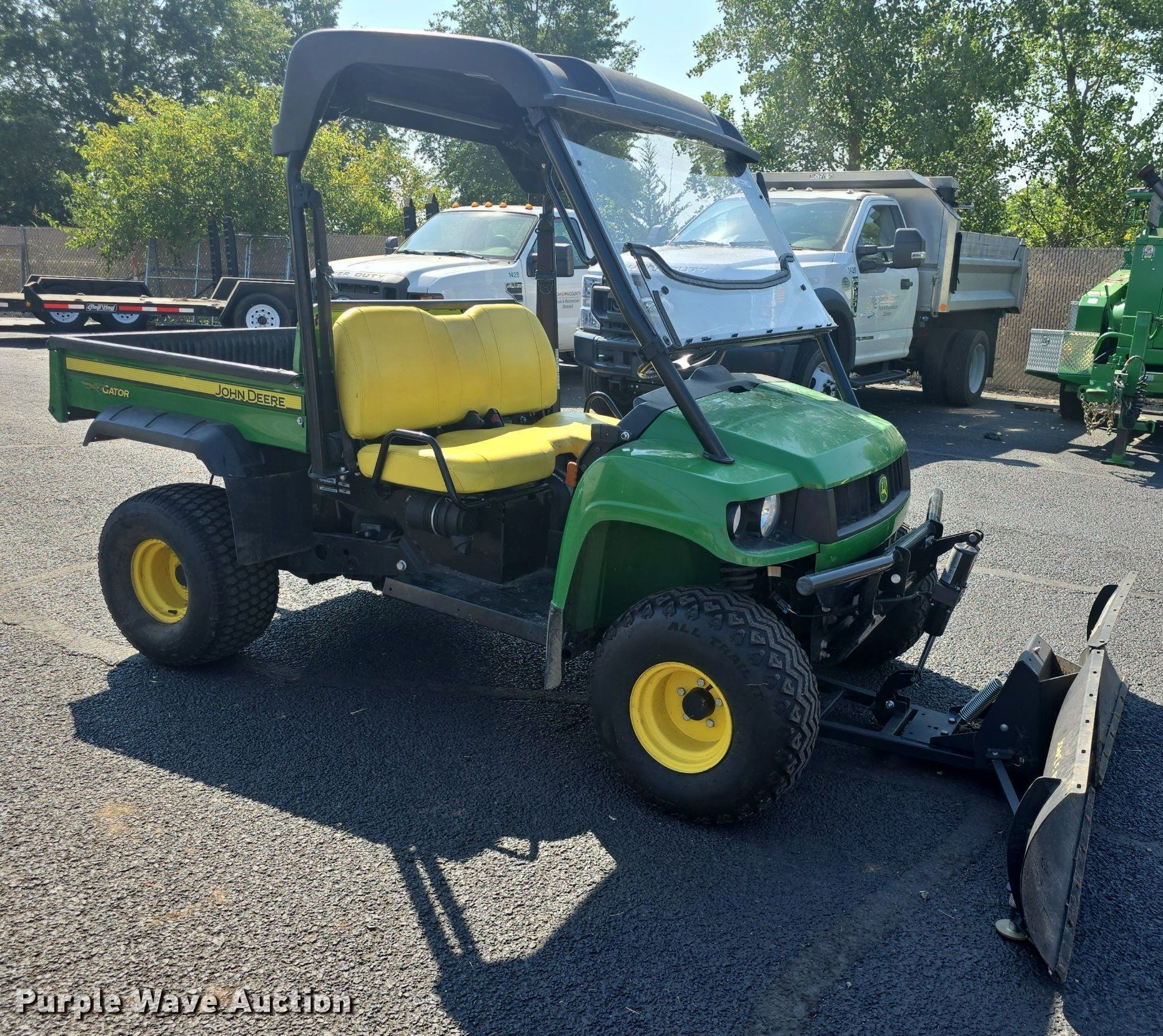2016 John Deere HPX Gator utility vehicle. Hours: 1,056 on meter, VIN: 1MOHPXGSVGM140637. Engine Serial: FD620DA21753, Fuel type: Gas. Transmission Automatic. Chassis Four wheel drive/ All wheel drive. Operators station Canopy. Features Grille guard, Receiver hitch, Dump bed 44" L x 52" W, Dump bed type: Electric/ Hydraulic, Attachment Make: John Deere, Plow: V blade, Width: 72. Tires Front: 24x9.50-10, Rear: 24x12.00-10, Brand: Carlisle. Kansas non- hwy not intnd for road use title. Title distribution may be delayed up to 14 days from verification of funds. Johnson County Park and Recreation District. Olathe, KS 66062