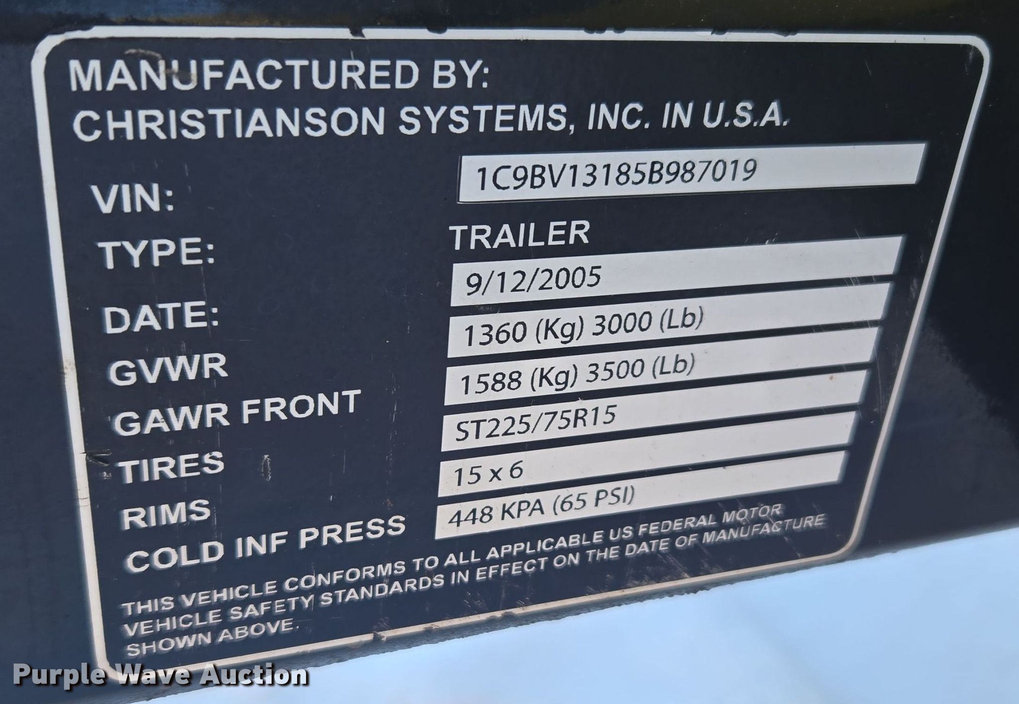 2006 Christianson Systems vacuum excavator. Hours: 320 on meter, VIN: 1C9BV13185B987019. Engine Kohler CH730, Serial: 3430828881, Displacement: 725 cc, Cylinders: 2, Fuel type: Gas. Features Spoils tank, Water tank, Water pump, Vacuum pump Inlet valve size: 3", Valve exerciser Hurco Technologies, Serial: 011806-196. Trailer 9' L x 88" W, Ball hitch size: 2", Axles: Single, Tire size: 225/75R15, GVWR: 3,000 lbs, GAWR: 3,500 lbs. South Dakota title. Seller is a government entity who will be assigning and distributing the title. Please contact the seller for distribution questions. City of Deadwood, SD. Deadwood, SD 57732