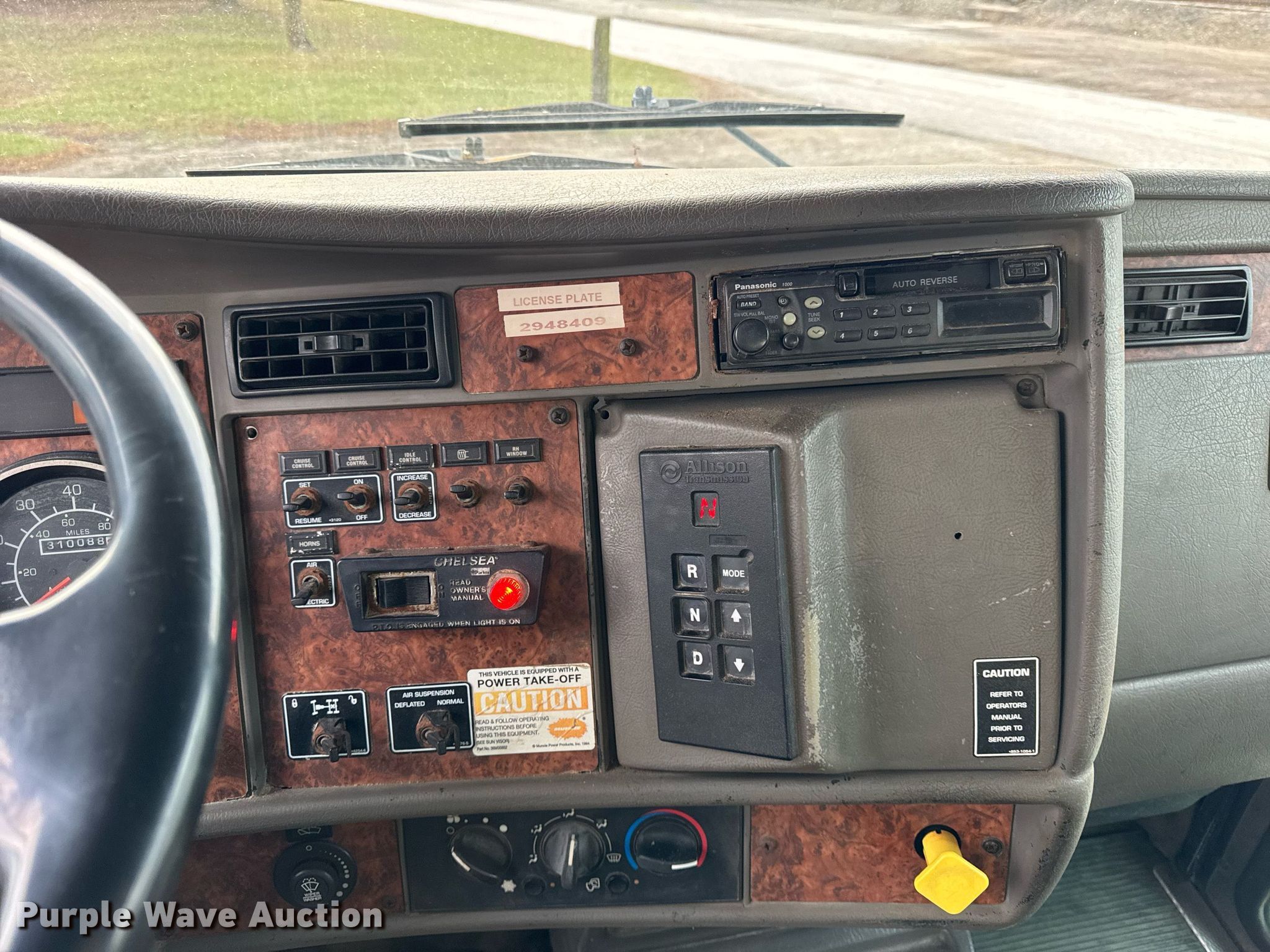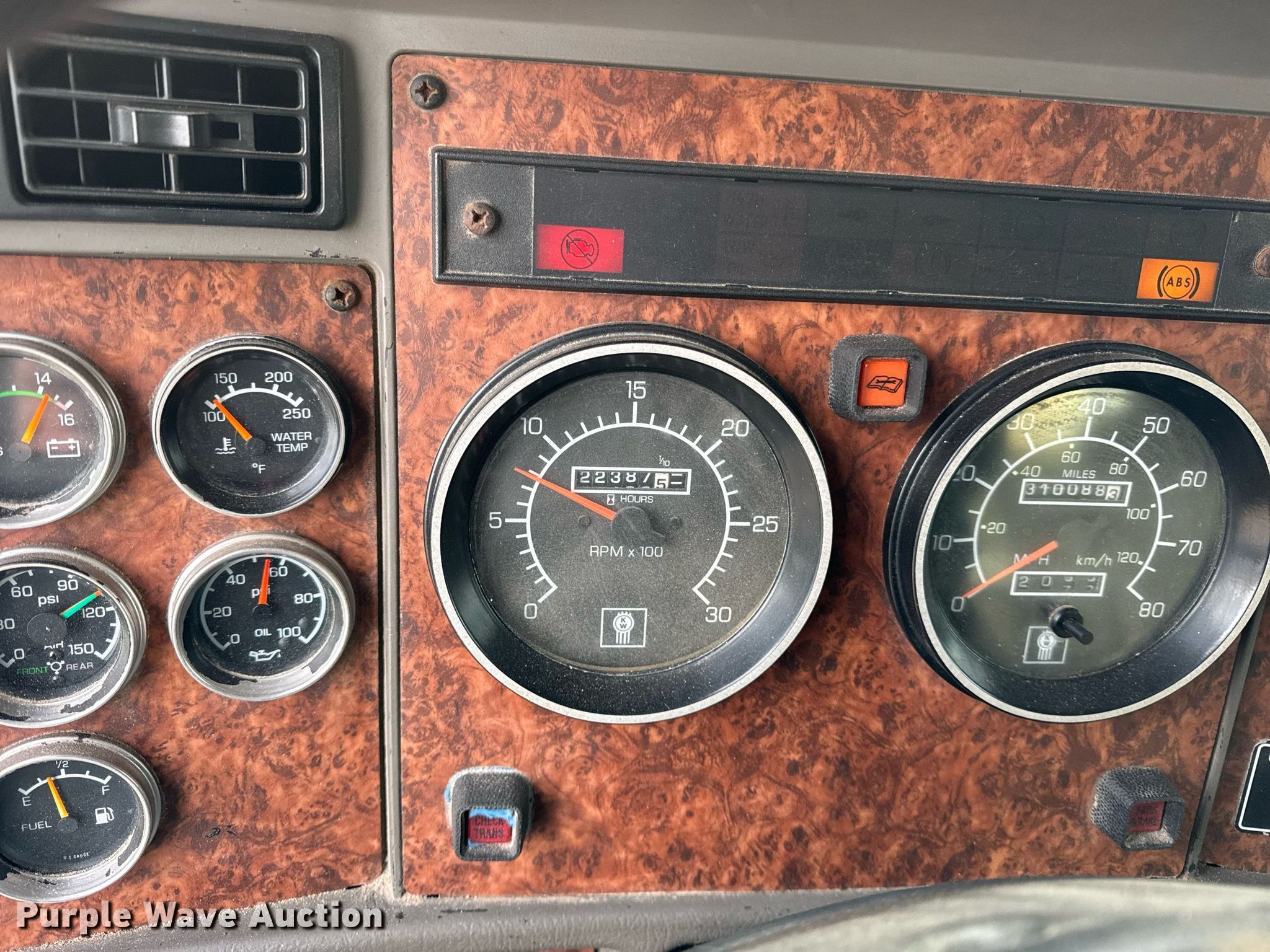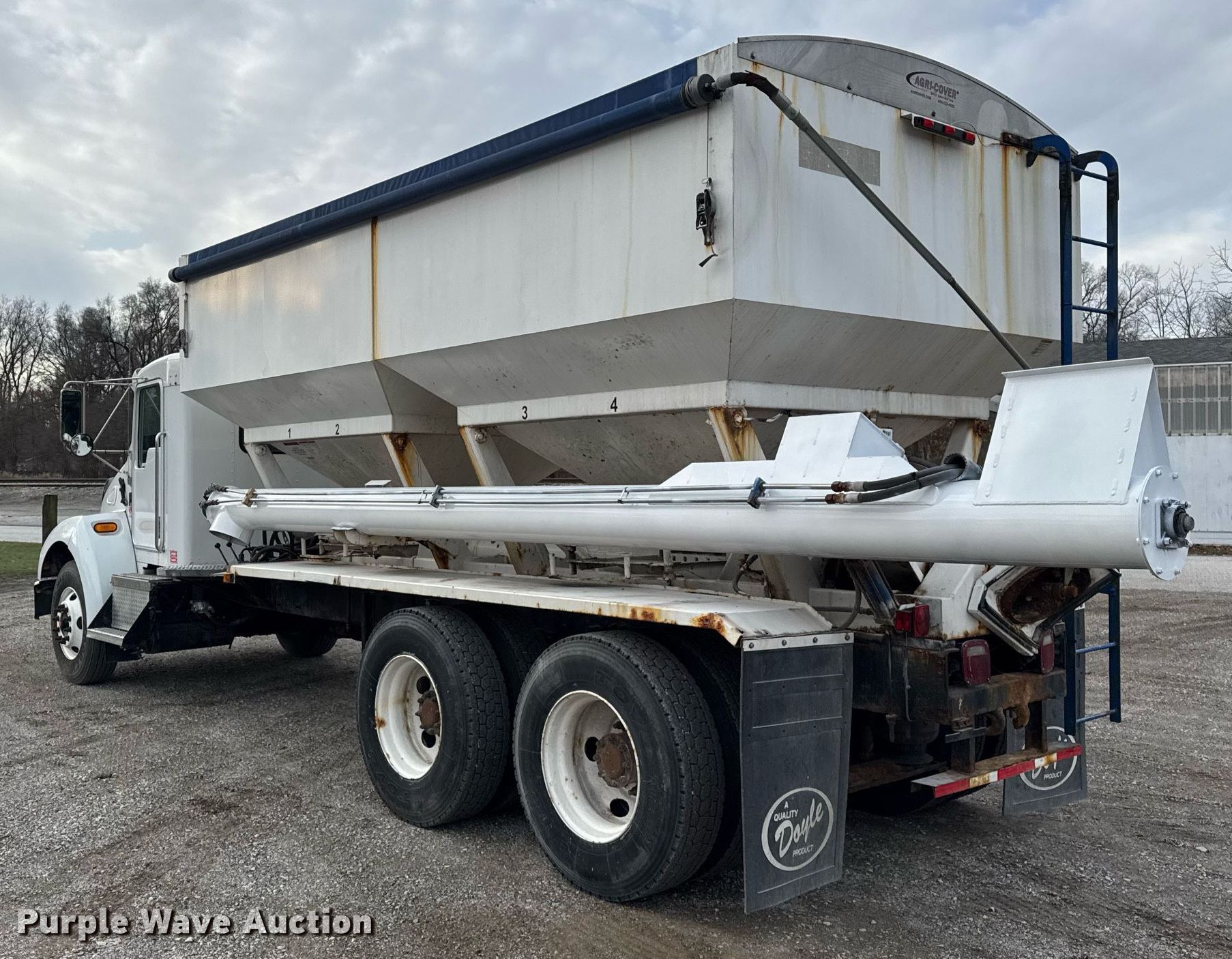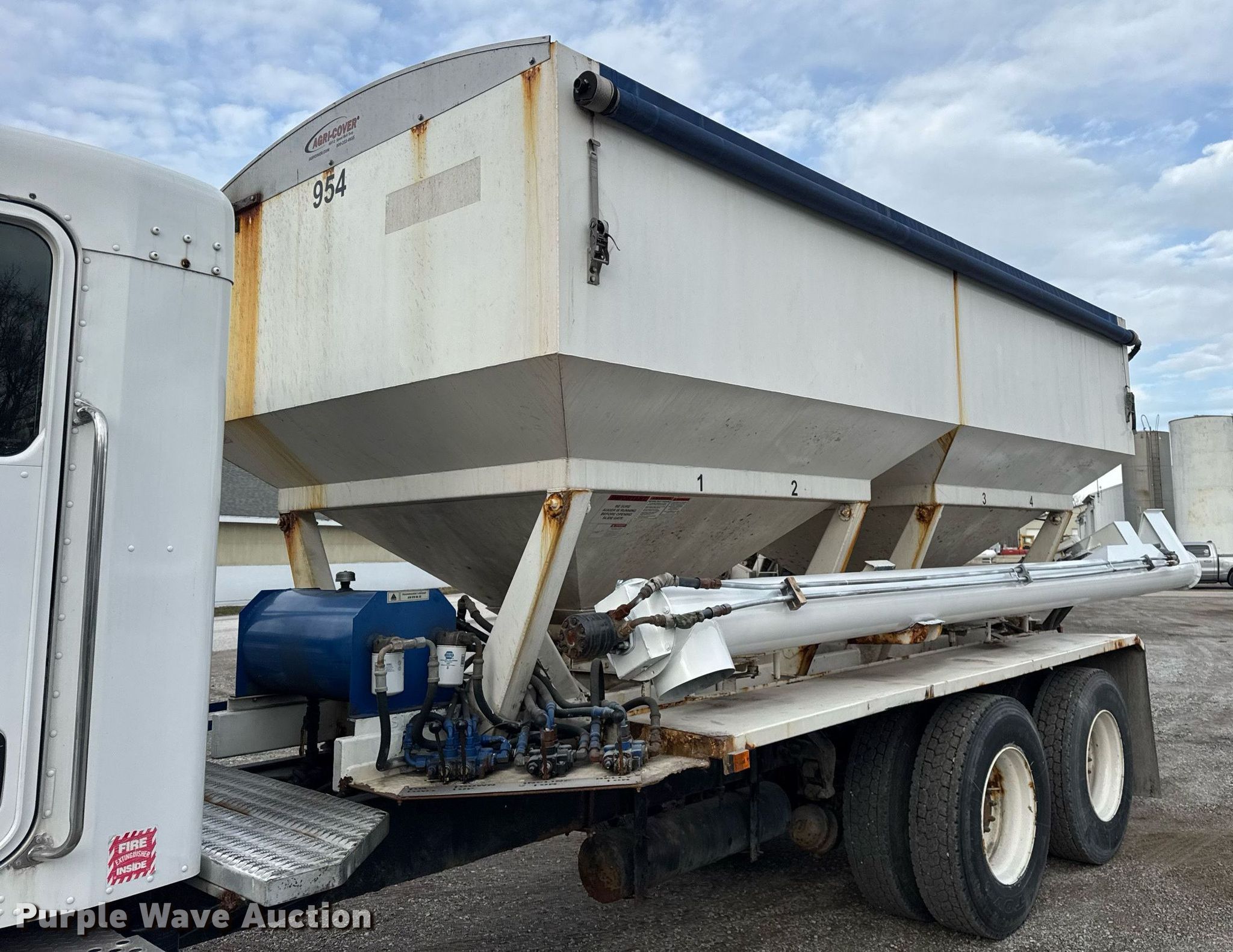 2003 Kenworth T300 fertilizer delivery truck. Miles: 310,088 on odometer, Hours: 22,388 on meter, VIN: 2NKMLZ9X53M397448. Engine Cummins, Displacement: 8.3L, Cylinders: 6, Fuel type: Diesel. Transmission Allison, Automatic. Chassis Axles: Tandem, Suspension: Air, Brakes: Air, PTO. Interior AC, Heat, Heated mirrors, Cruise control. Features Delivery bed Capacity: 16 tons, Discharge auger Diameter: 10", Length: 19', Side, Tarp, Ground controls. Tires Size: 11R22.5. Notes Dash warning indicator: ABS, Engine stop. Indiana title. Title distribution may be delayed up to 30 days from verification of funds. Keystone Cooperative. De Motte, IN 46310