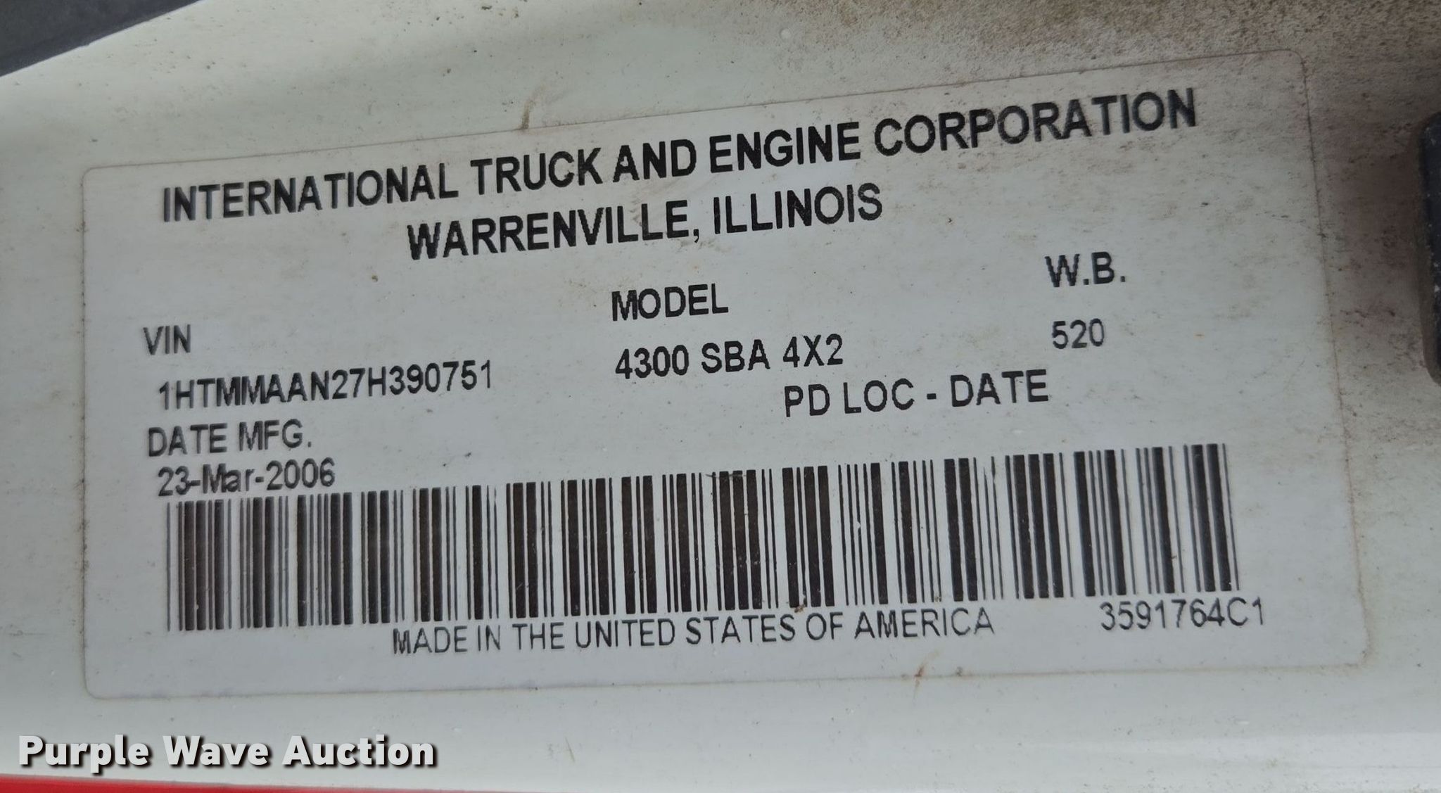 2007 International 4300 feed delivery truck. Miles: 307,137 on odometer, VIN: 1HTMMAAN27H390751. Engine International DT466, Displacement: 7.6L, Cylinders: 6, Fuel type: Diesel. Transmission Automatic. Chassis Axles: Single, Suspension: Spring, Brakes: Air. Interior AC, Heat. Tires Size: 11R22.5. Notes Possible computer issues , Non-operational unit Unit must be towed or hauled. Indiana title. Title distribution may be delayed up to 30 days from verification of funds. Keystone Cooperative. Bremen, IN 46506