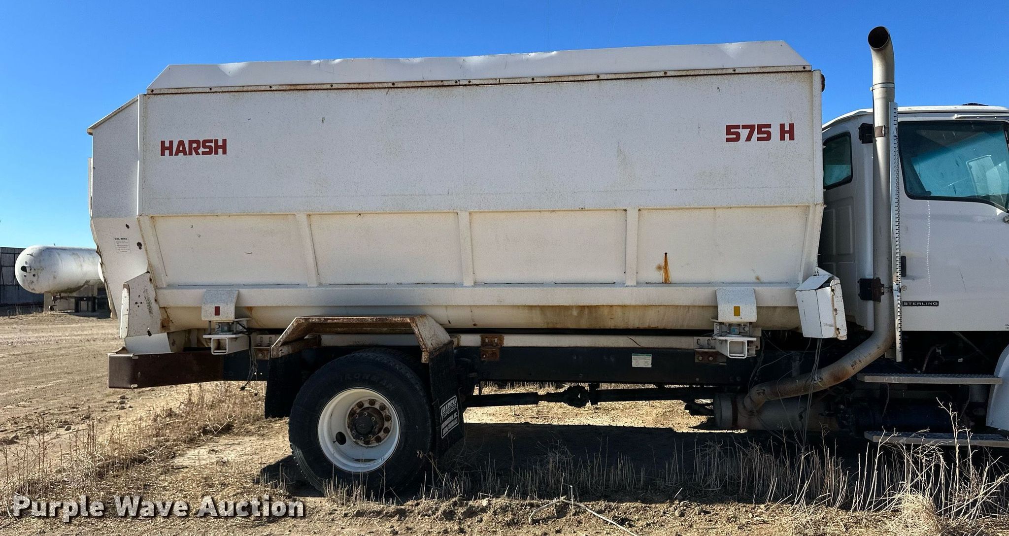 2006 Sterling L8500 feed mixer truck. Miles: 101,313 on odometer, VIN: 2FZAAVDC96AV76429. Engine Caterpillar C7, Serial: 11001627, Displacement: 7.2L, Cylinders: 6, Fuel type: Diesel. Transmission Automatic. Chassis Axles: Single, Suspension: Spring, Brakes: Air, PTO. Interior AC, Heat, Cruise control. Features Feed mixer bed Harsh 575, In-cab controls, Scales, Auger Quantity: 4, Discharge: Side Width: 40", Chute: Hydraulic, Door: Hydraulic. Tires Size: 11R22.5. Notes Dead battery, Mix auger missing , Unknown operating condition Unit must be towed or hauled. Kansas non-highway not intnd for road use title. Title distribution may be delayed up to 14 days from verification of funds. Winner Circle Feedyard. Syracuse, KS 67878