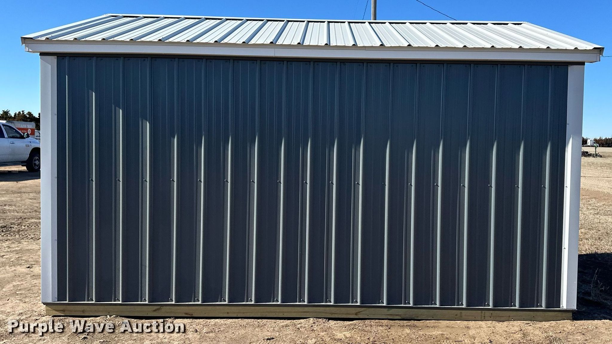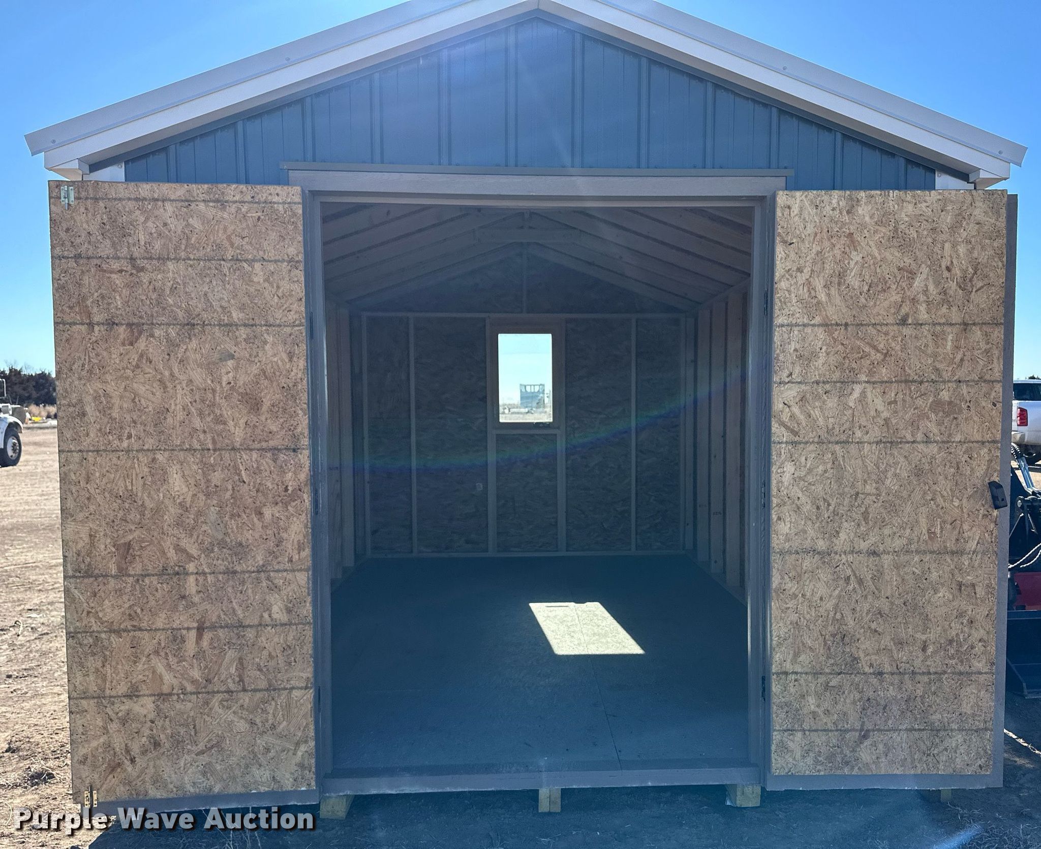 Purple Wave is selling a used Building Materials in Kansas. This item is a Storage shed with the following: Outside: 15' 2" L x 10' W x 9' 8" H, Inside: 14' 4" L x 9' 2" W x 7' H