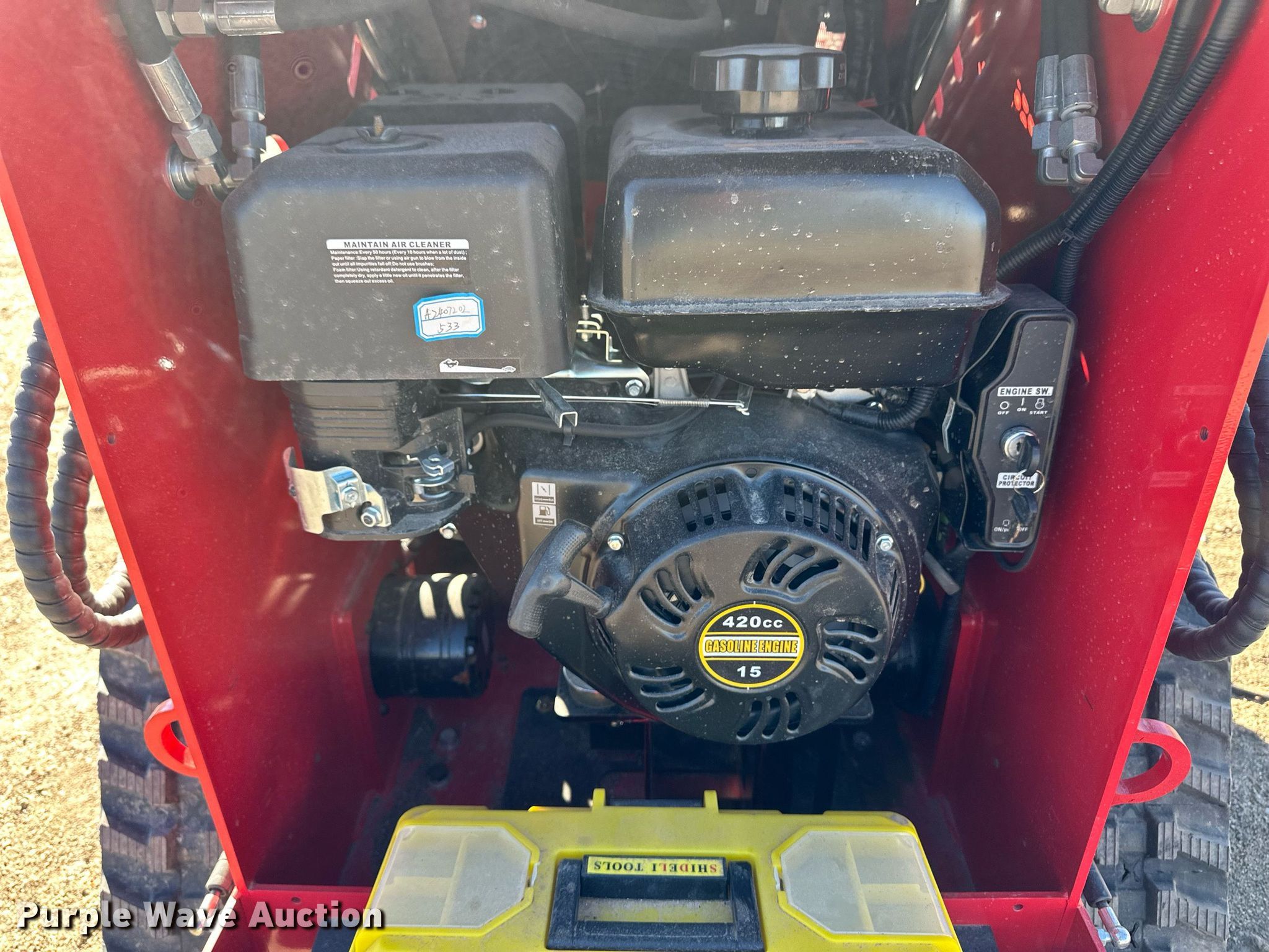 2024 EGN EG360T compact utility loader. Hours: 164 on meter, Serial: EG360T2409106. Engine Displacement: 420 cc, Cylinders: 1, Fuel type: Gas, HP: 13.5. Transmission Hydrostatic. Operators station Bucket control: Hand. Features Auxiliary hydraulics, Quick coupler: Manual, Bucket Width: 42", Cutting edge: Weld-on. Tracks Width: 7". Sublette, KS 67877
