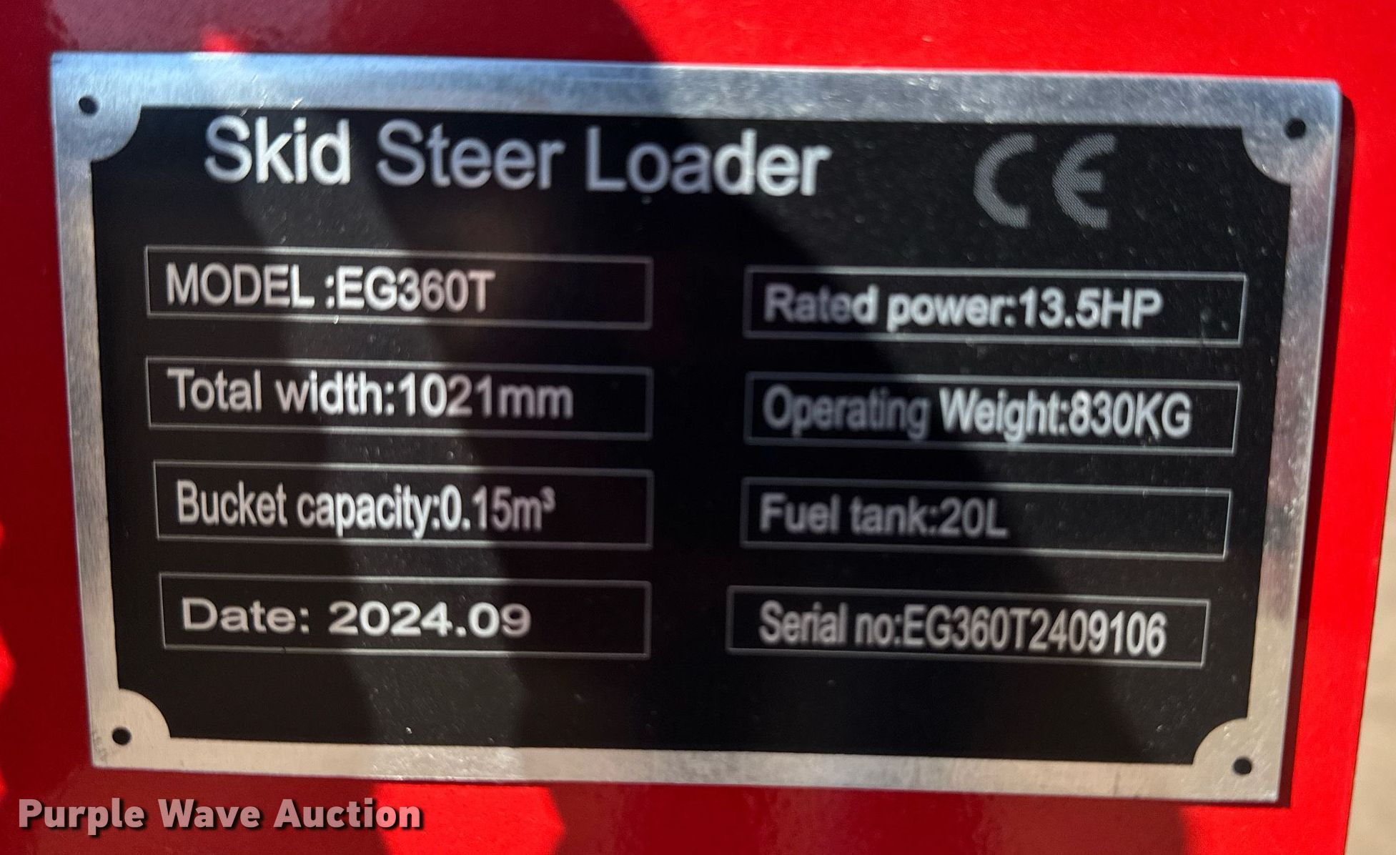 Purple Wave is selling a used Compact Utility Loader in Kansas. This item is a 2024 EGN EG360T compact utility loader with the following: Hours: 164 on meter, Serial: EG360T2409106