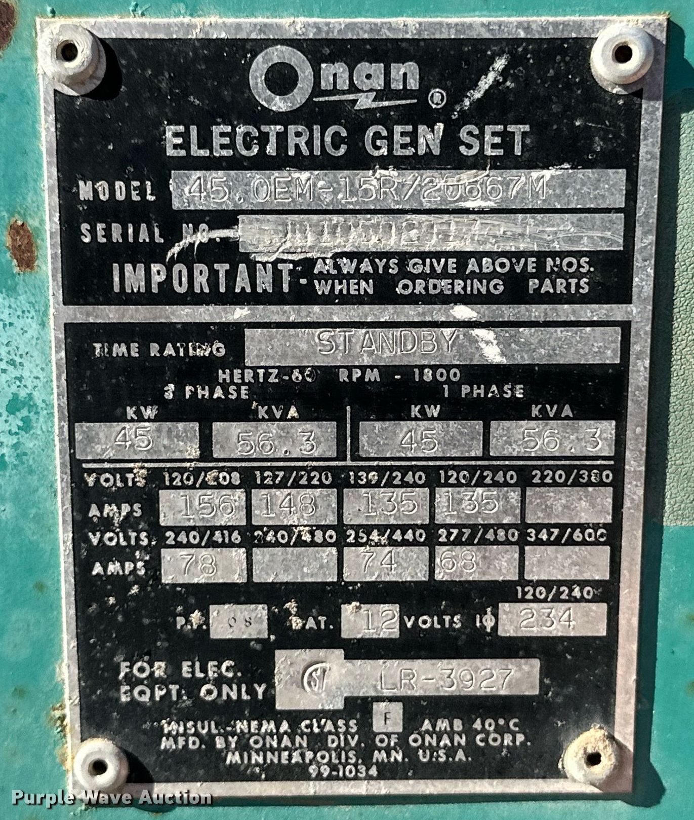 Onan 45.0EM-15R/20667M generator | SOLD! February 05 Ag Equipment Auction