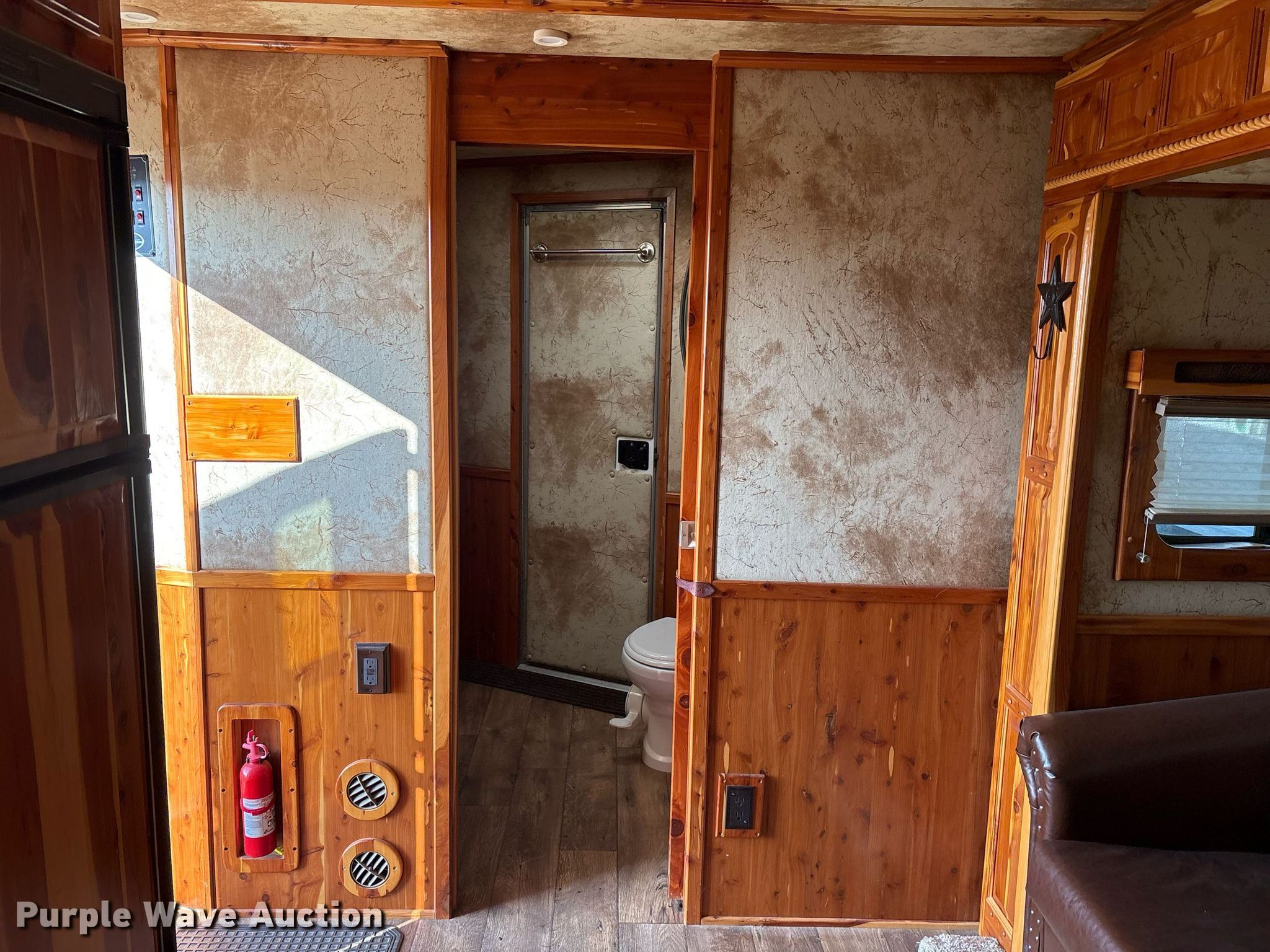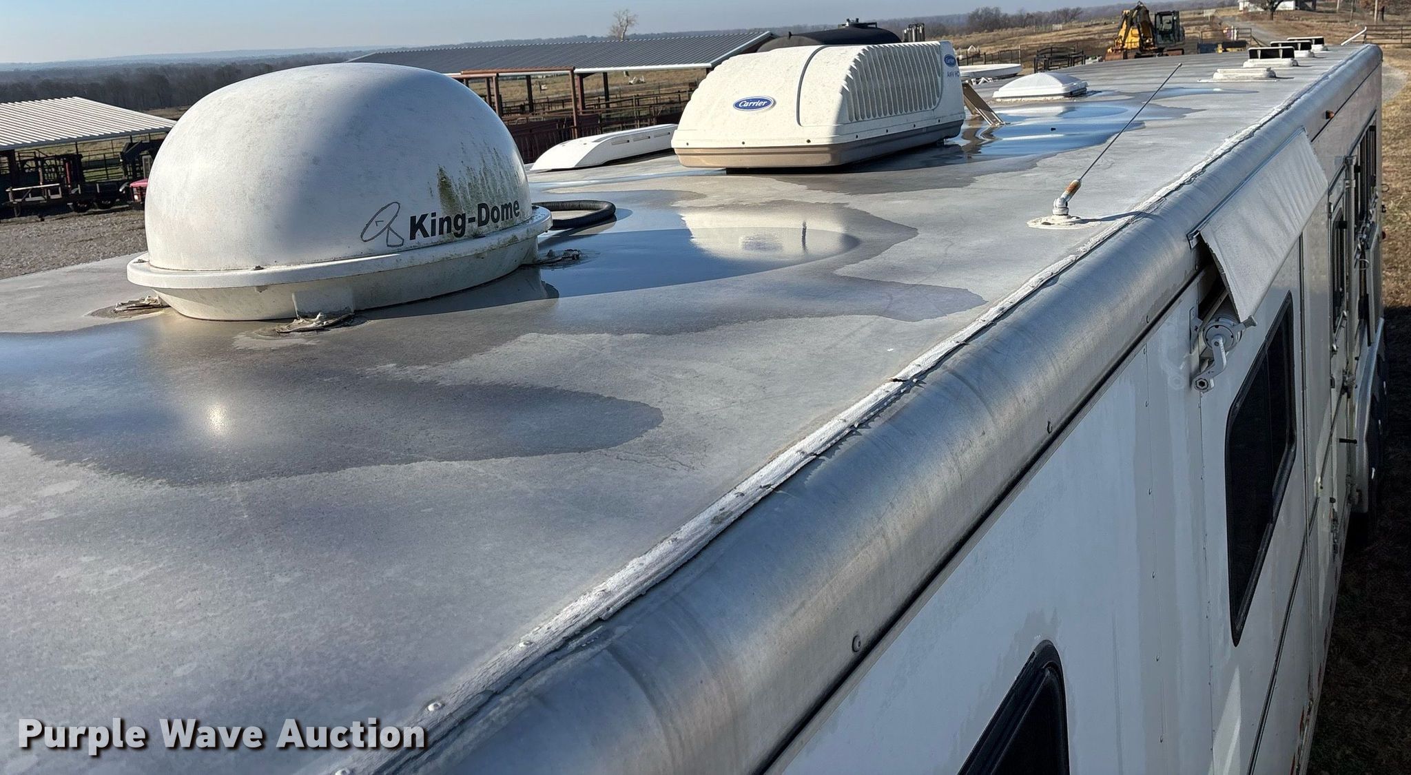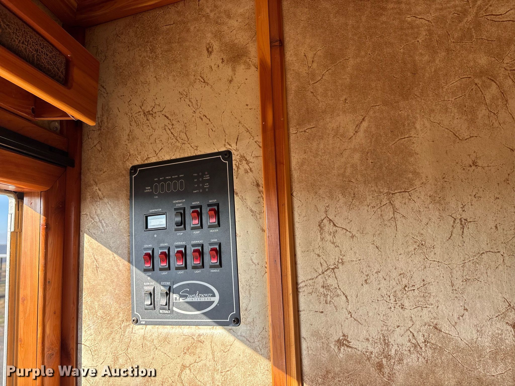 2007 Sundowner Sunlite 727 horse trailer. VIN: 13SZA383771ZA3100. Dimensions Overall: 38' L x 8' W, Side height: 7' 6". Features Horse capacity: 4, Center gates: 3, Rubber floor mat, AC unit, Heater, Freezer, Refrigerator, Shower, Toilet, Pullout couch, Queen bed. Chassis Hitch: Gooseneck, Landing gear: Single, Suspension: Spring, Brakes: Air, Axles: Triple, GVWR: 22,815 lbs, GAWR: 6,084 lbs. Tires Steel wheels, Size: LT235/85R16. Arkansas title. Title distribution may be delayed up to 14 days from verification of funds. Lavaca, AR 72941