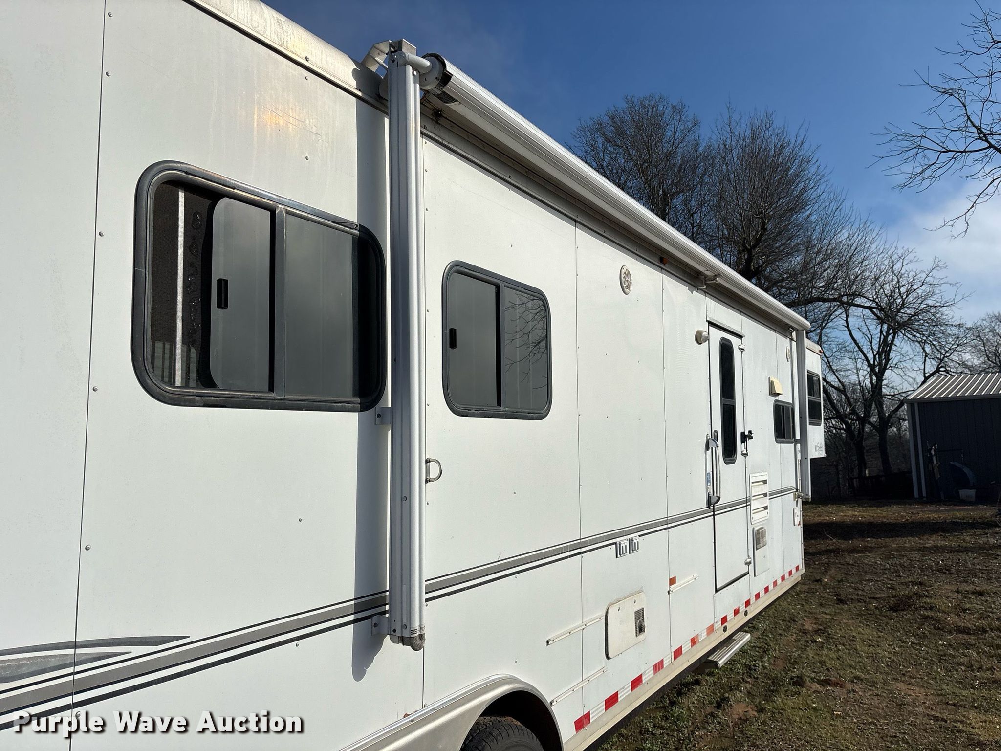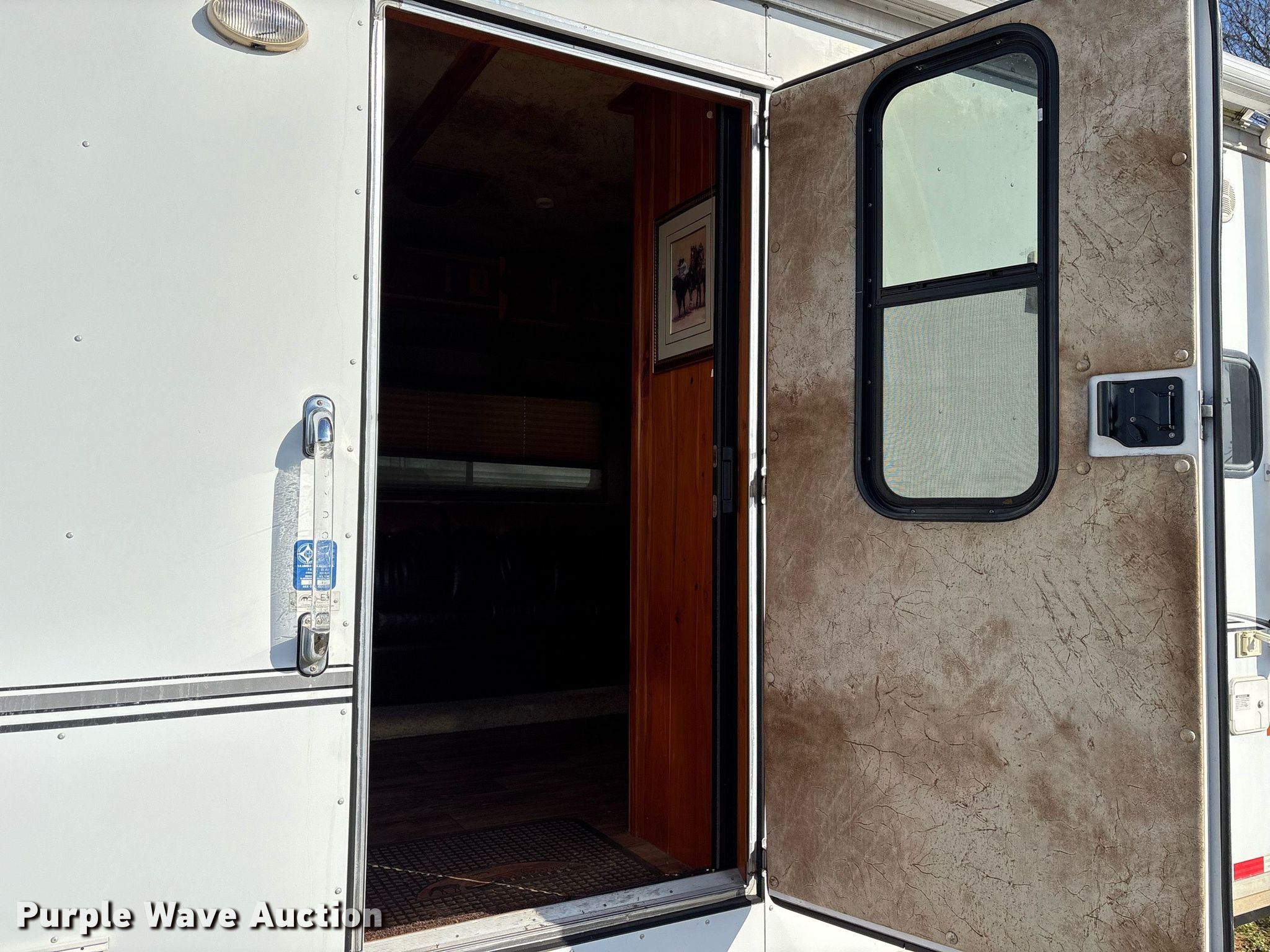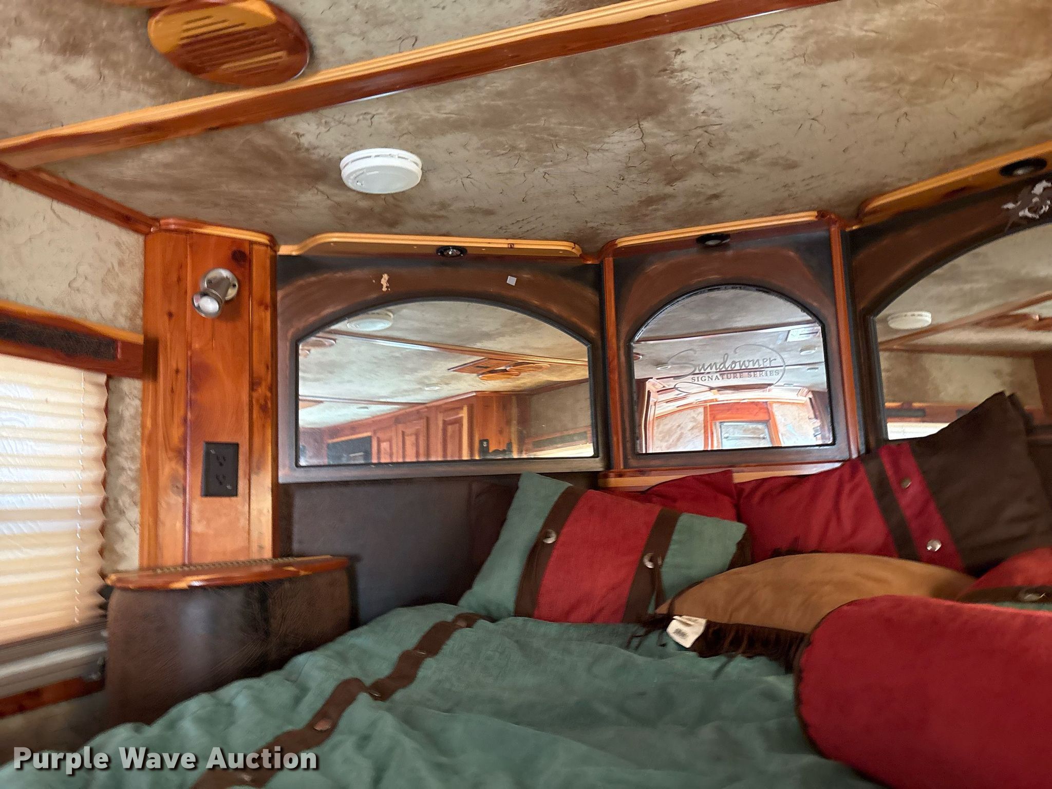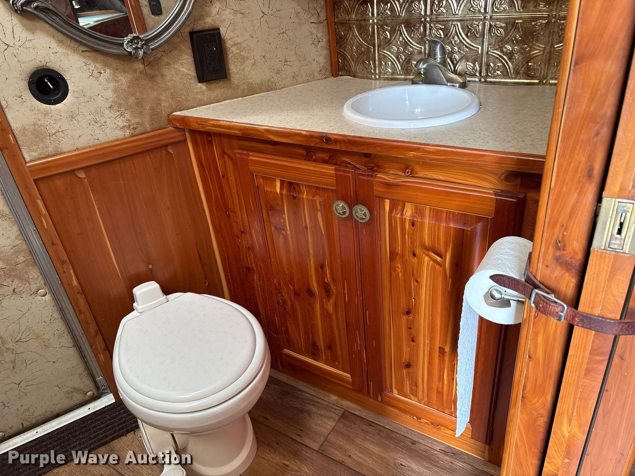 2007 Sundowner Sunlite 727 horse trailer. VIN: 13SZA383771ZA3100. Dimensions Overall: 38' L x 8' W, Side height: 7' 6". Features Horse capacity: 4, Center gates: 3, Rubber floor mat, AC unit, Heater, Freezer, Refrigerator, Shower, Toilet, Pullout couch, Queen bed. Chassis Hitch: Gooseneck, Landing gear: Single, Suspension: Spring, Brakes: Air, Axles: Triple, GVWR: 22,815 lbs, GAWR: 6,084 lbs. Tires Steel wheels, Size: LT235/85R16. Arkansas title. Title distribution may be delayed up to 14 days from verification of funds. Lavaca, AR 72941