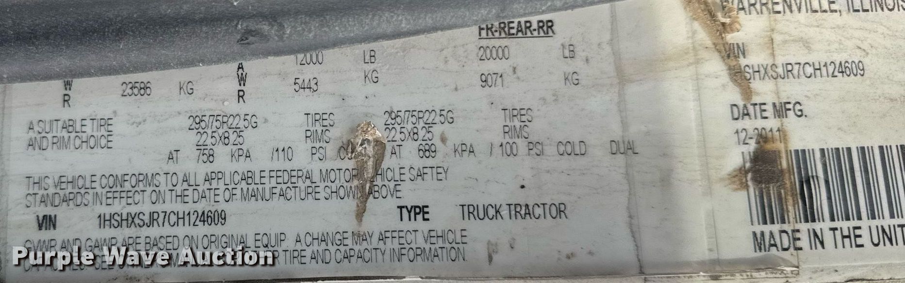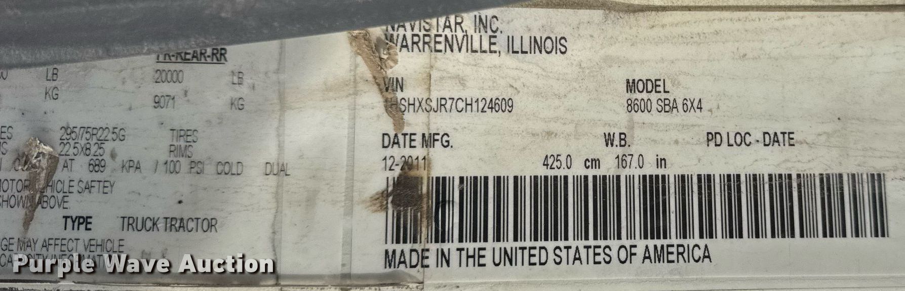 Purple Wave is selling a used Truck Tractor in Illinois. This item is a 2012 International TranStar 8600 semi truck with the following: Miles: 350,809 on odometer, Hours: 17,711 on meter, VIN: 1HSHXSJR7CH124609, Unit #: 47