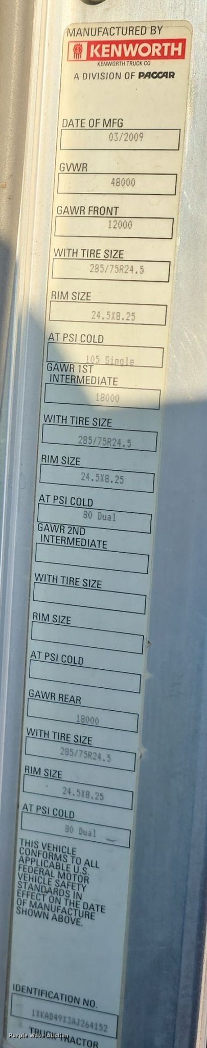 • VIN: 1XKAD49X3AJ264152