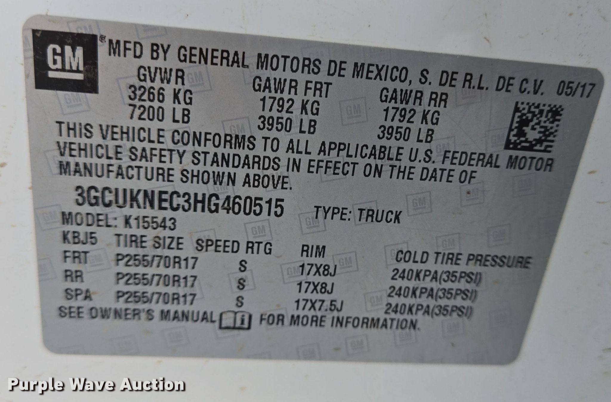 2017 Chevrolet Silverado 1500 Crew Cab pickup truck. Miles: 187,190 on odometer, VIN: 3GCUKNEC3HG460515. Engine Displacement: 5.3L V8 OHV, Cylinders: 8, Fuel type: Gas. Transmission Automatic, Four wheel drive. Interior AC, Heat, Heated mirrors, Power windows, Power locks, Cruise control, Backup camera. Tires Size: LT285/70R17. Notes Dash warning indicator: Check engine. Buyer responsible for all aspects of state emissions compliance. California title. Title distribution may be delayed up to 30 days from verification of funds. Sukut Construction, LLC. San Bernardino, CA 92410