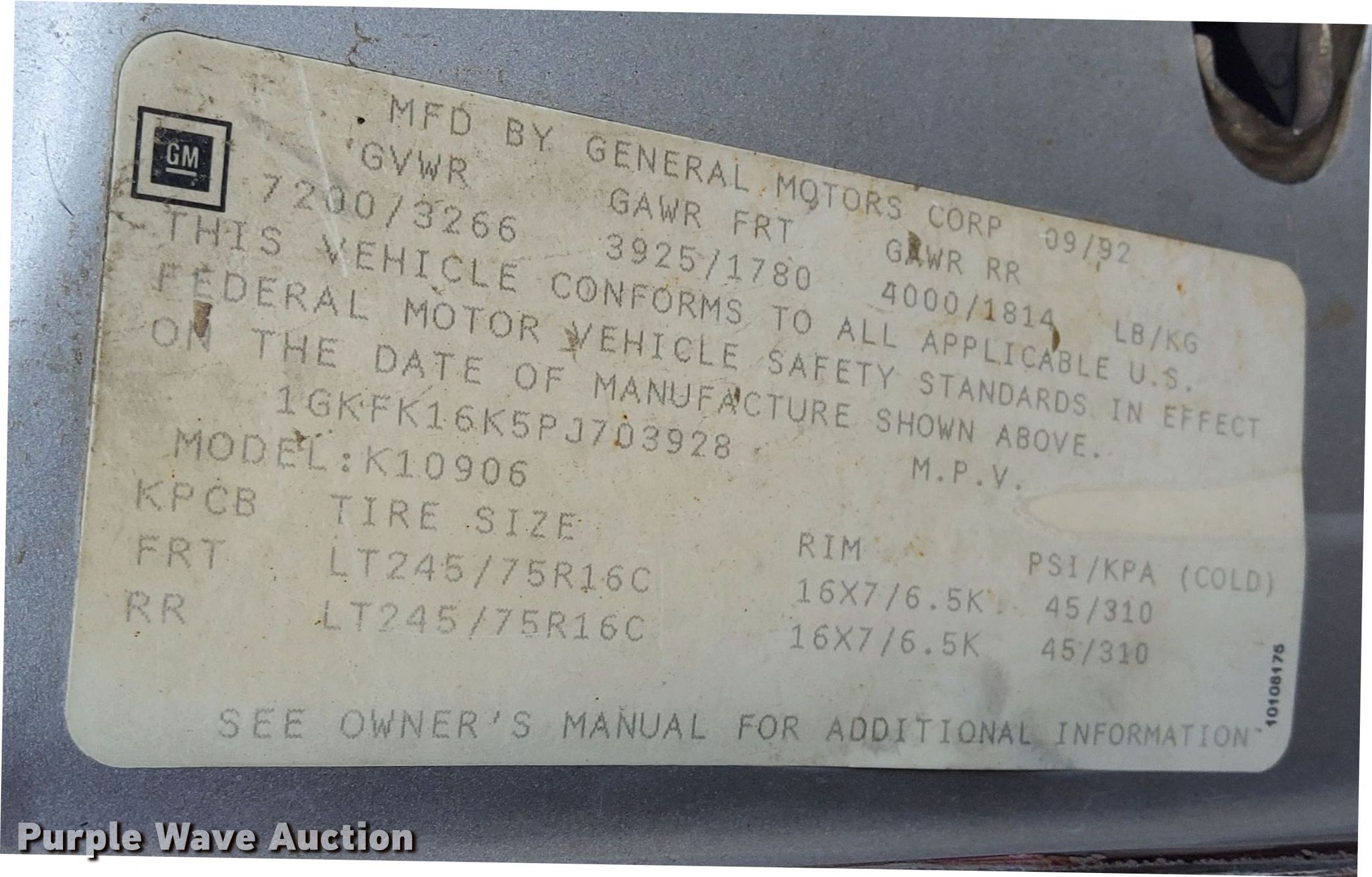 Purple Wave is selling a used Passenger Vehicle in Colorado. This item is a 1993 GMC Suburban 1500 SLE SUV with the following: Miles: 257,333 on odometer, VIN: 1GKFK16K5PJ703928