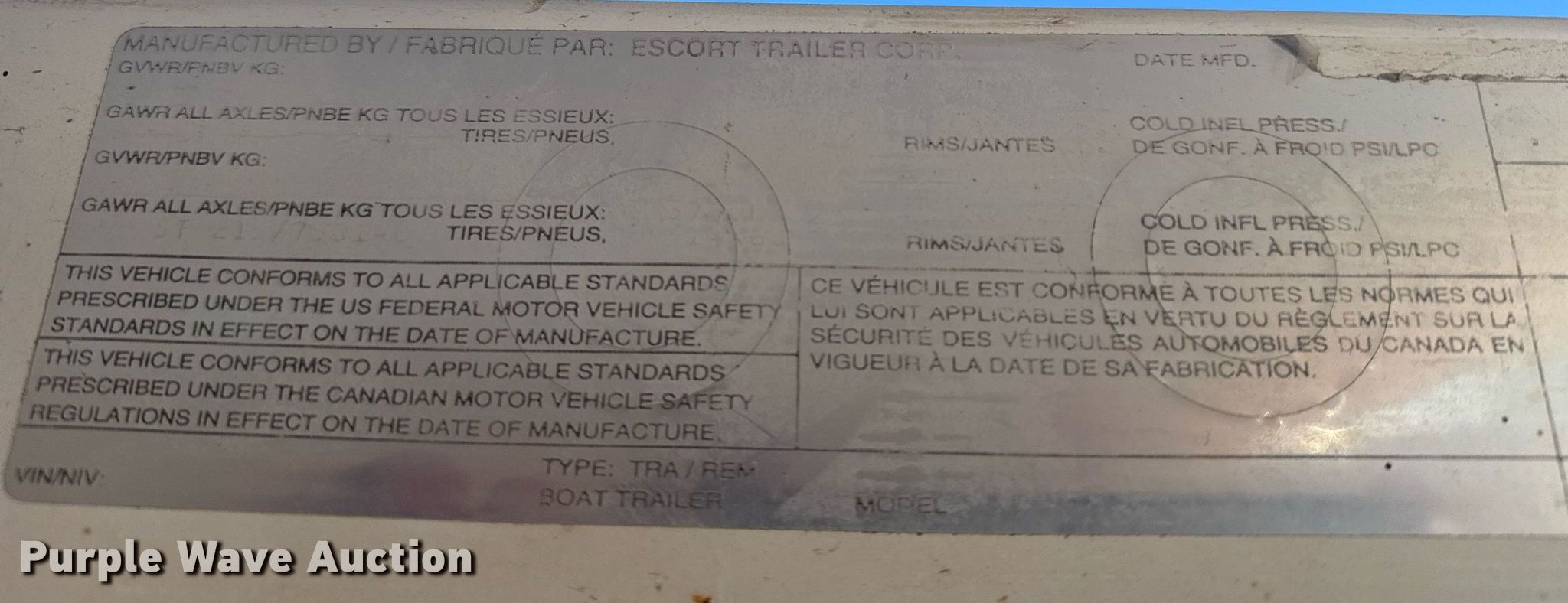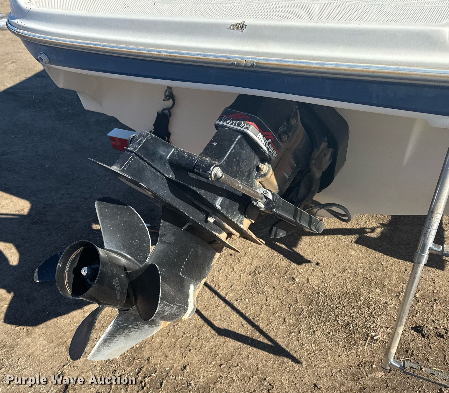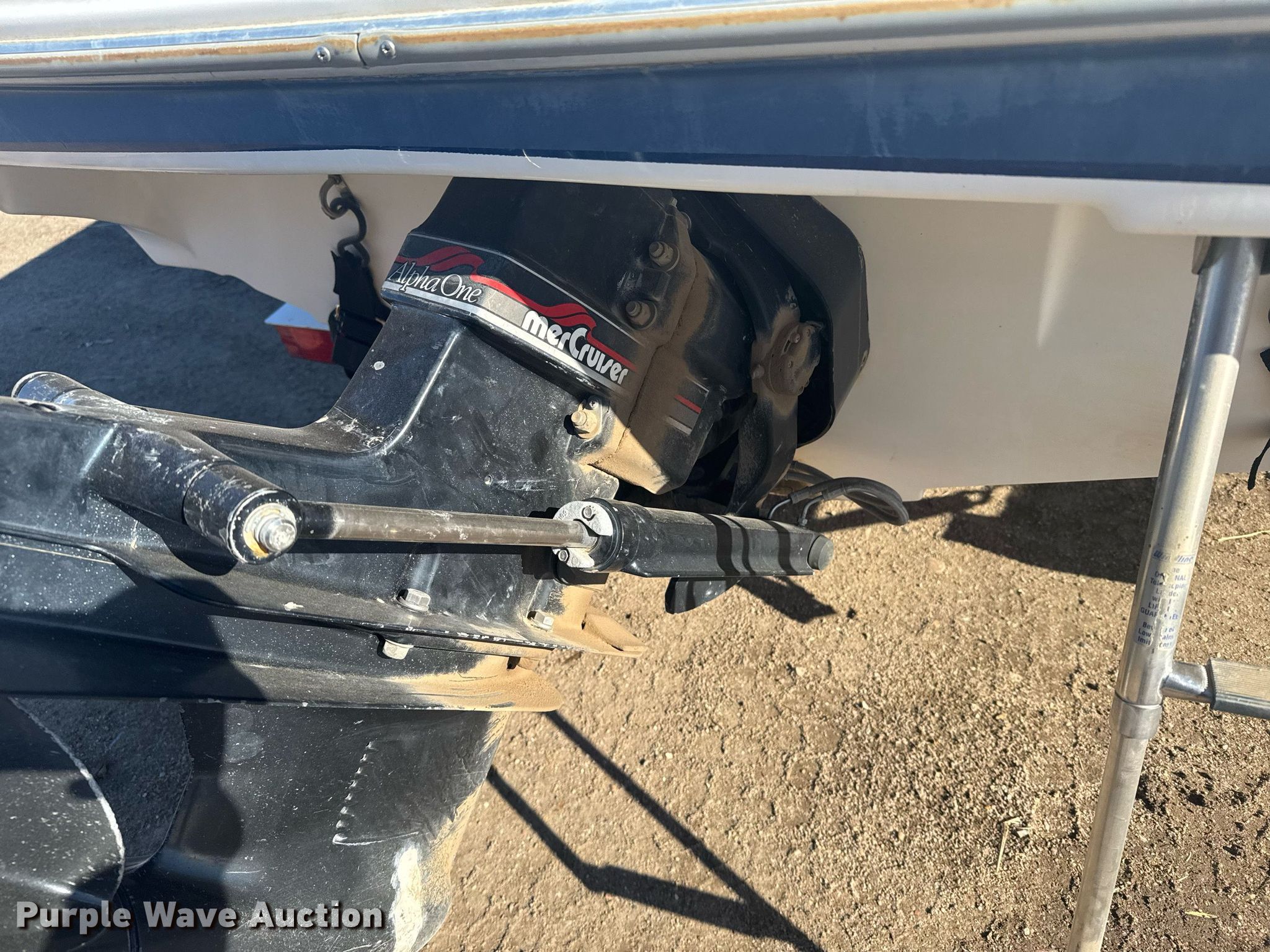 Bayliner Capri 2050 LS boat. Hours: Unknown, Length: 20', Hull ID: USHD24CXC898. Engine Engine type: Inboard, MerCruiser, Cylinders: 6, Fuel type: Gas, Outdrive Make: MerCruiser, Model: Alpha one, Propeller: Aluminum. Operators station Capacity Person: 8, 1,100 lbs. Trailer Escort Trailer, Overall length: 22', Overall width: 96", Ball hitch size: 2", Axles: Single, Tire size: 205/75R15. Notes Outdrive issues, oil leak. Boat: Transfer of ownership documentation will be a bill of sale. Trailer: Transfer of ownership documentation will be a bill of sale. Jay Bar R Ranch. Ransom, KS 67572