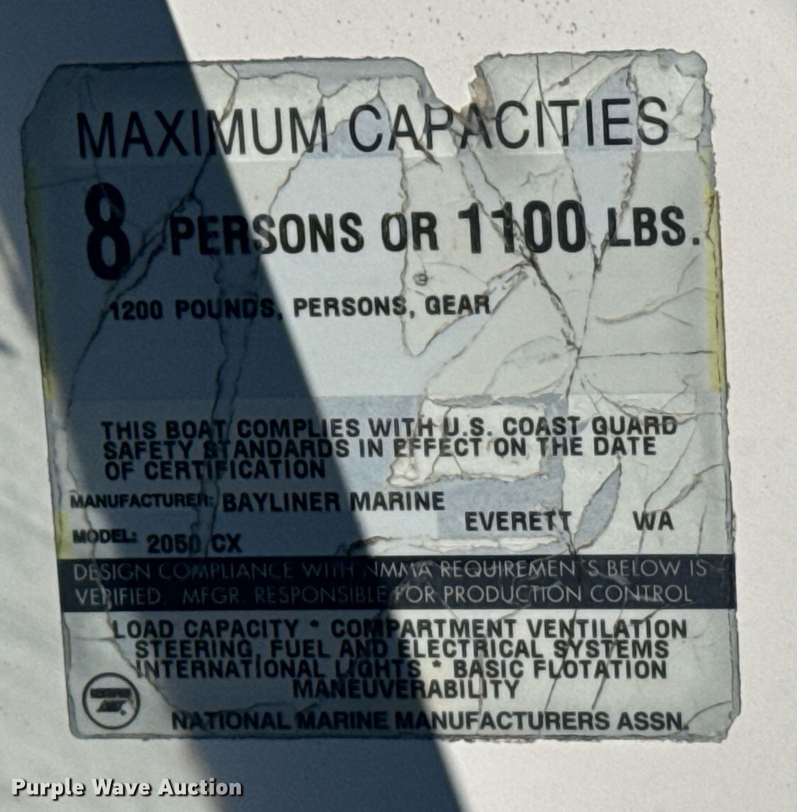Purple Wave is selling a used Boat in Kansas. This item is a Bayliner Capri 2050 LS boat with the following: Hours: Unknown, Length: 20', Hull ID: USHD24CXC898