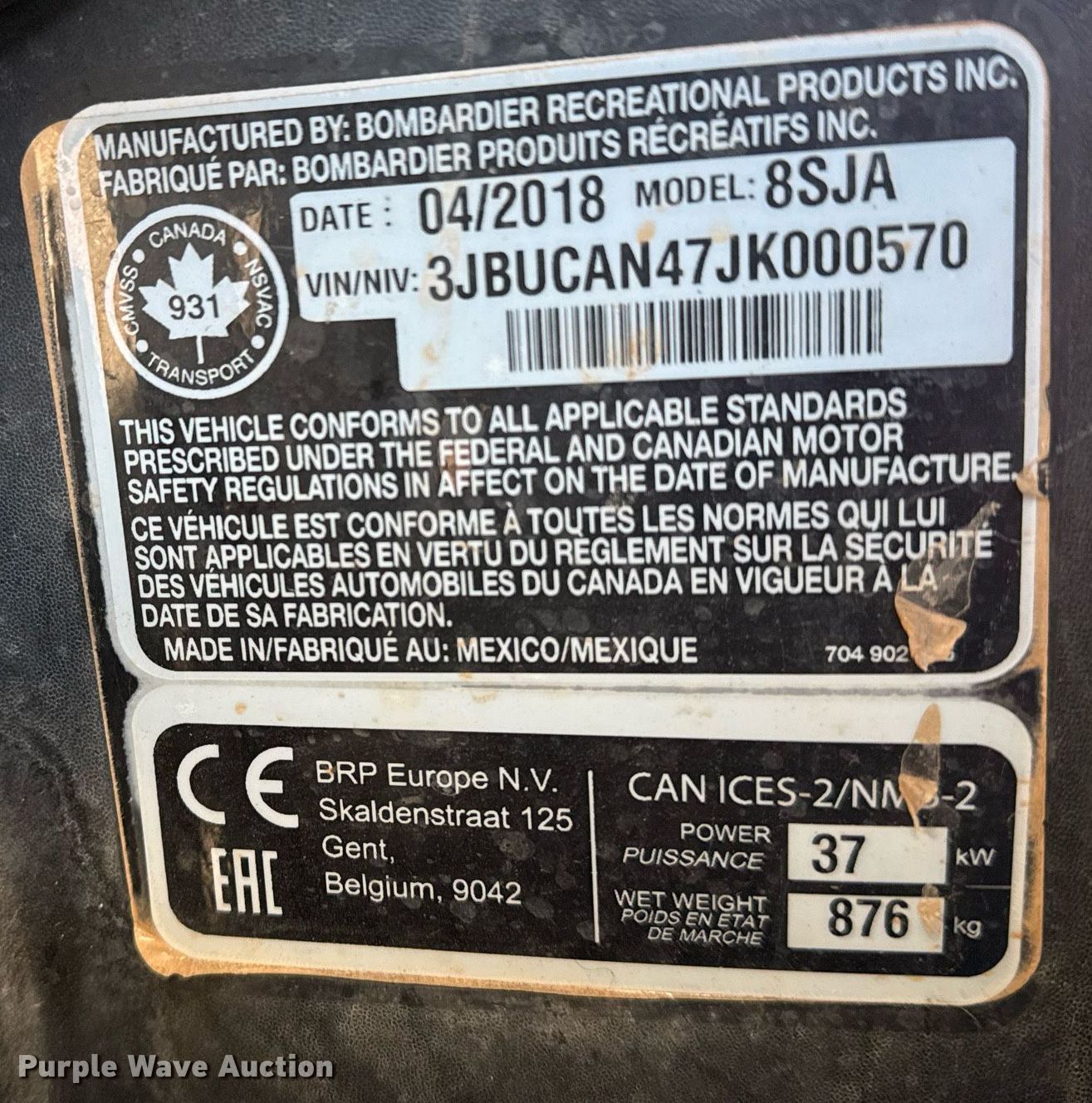 Purple Wave is selling a used Utility Vehicle in Oklahoma. This item is a 2018 Can-Am 8SJA utility vehicle with the following: Miles: 39,893 on odometer, VIN: 3JBUCAN47K000570